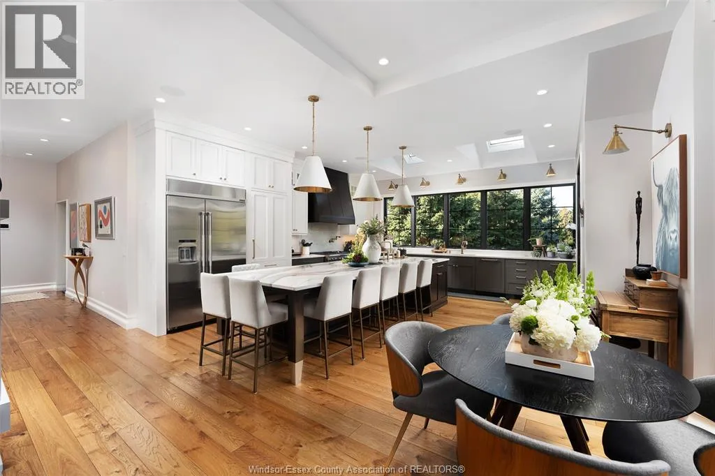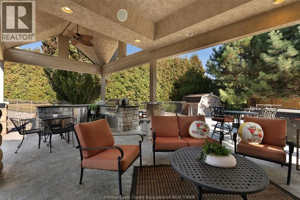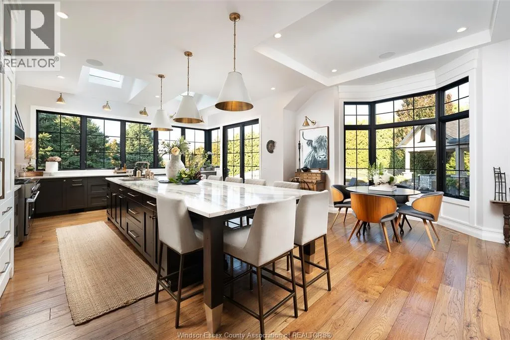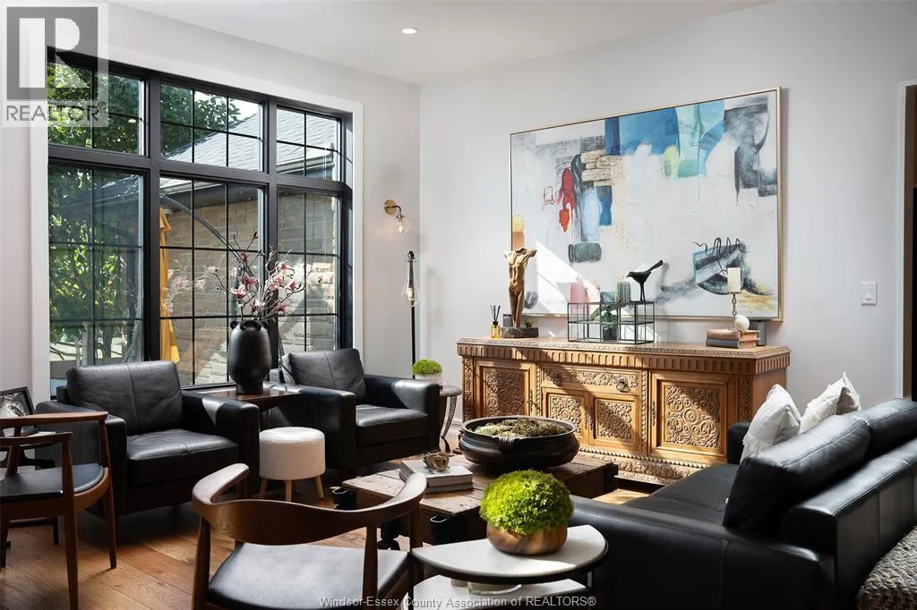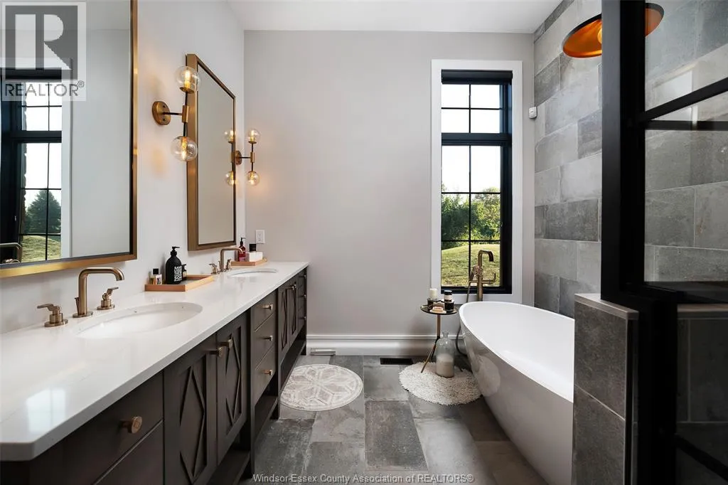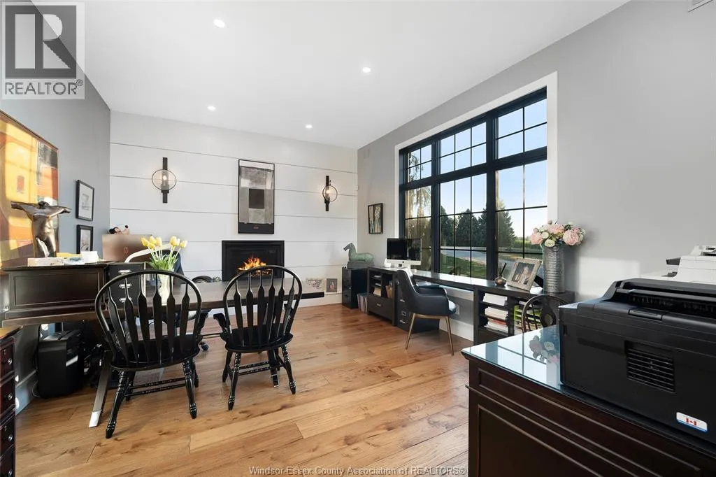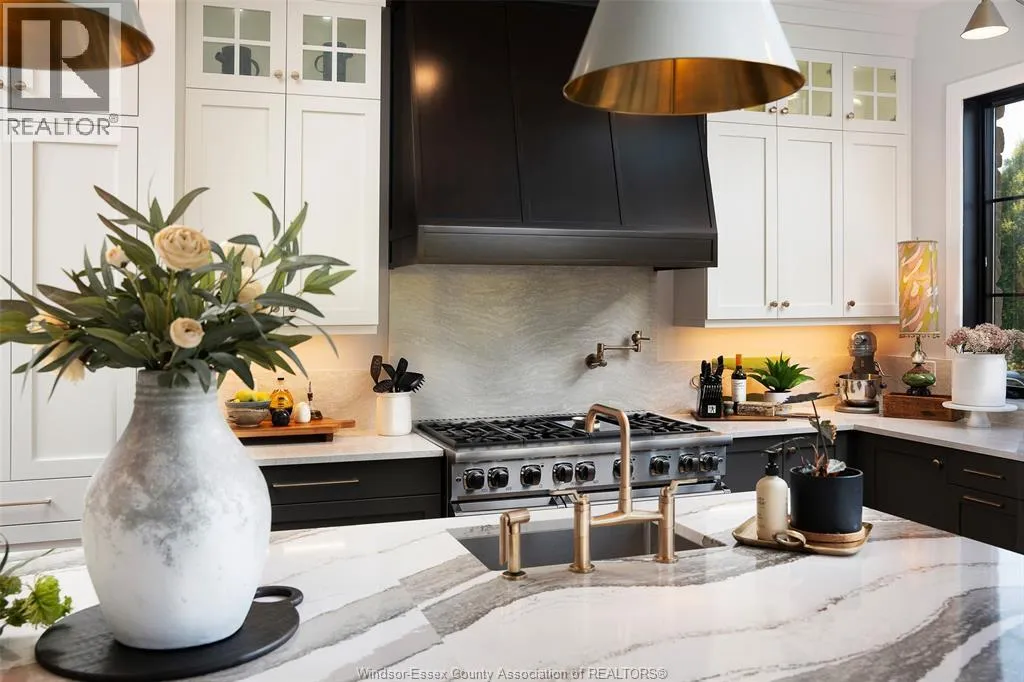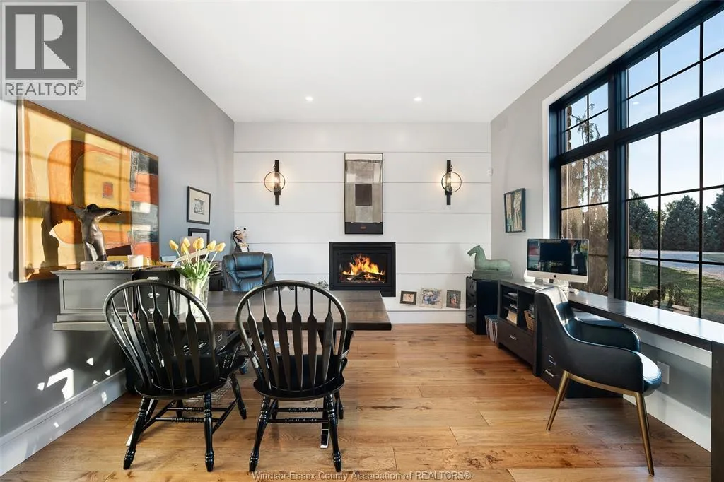 A rare offering â this exquisite custom-built estate with approx 7,500 sq ft is perfectly set on 3+acres of manicured grounds just minutes from charming downtown Kingsville. Every detail is designed for elevated living and effortless entertaining. It features 5 bedrooms, 4.5 baths, 7 fireplaces, soaring 10 ft ceilings, and a stunning full walkout lower level opening to an English sunken garden. This home is complemented with an in-law suite and premium finishes throughout. This smart home has an integrated sound system, automated blinds, and heated floors. Relax in your private retreat with the inground pool, hot tub, and covered lanai, cozy up by the natural fireplace. The tranquil pond and private island offers hammock time or camping for the kids. Chefâs dream kitchen with 14ft Cambria island, walk- in pantry, professional appliances and a dumb-waiter for serving in the lower level. It is flooded with natural light and anchors the home. Primary bedroom features a walk-in closet and a bank of custom cabinetry, en-suite bath and Juliette balcony overlooking mature trees. 3 bedrooms grace the upper floor and lead to the separate in-law suite with lounge and kitchenette area with dedicated entrance. The heated pole barn with separate drive completes this truly exceptional property â a rare fusion of luxury, lifestyle, and location. (id:27476)