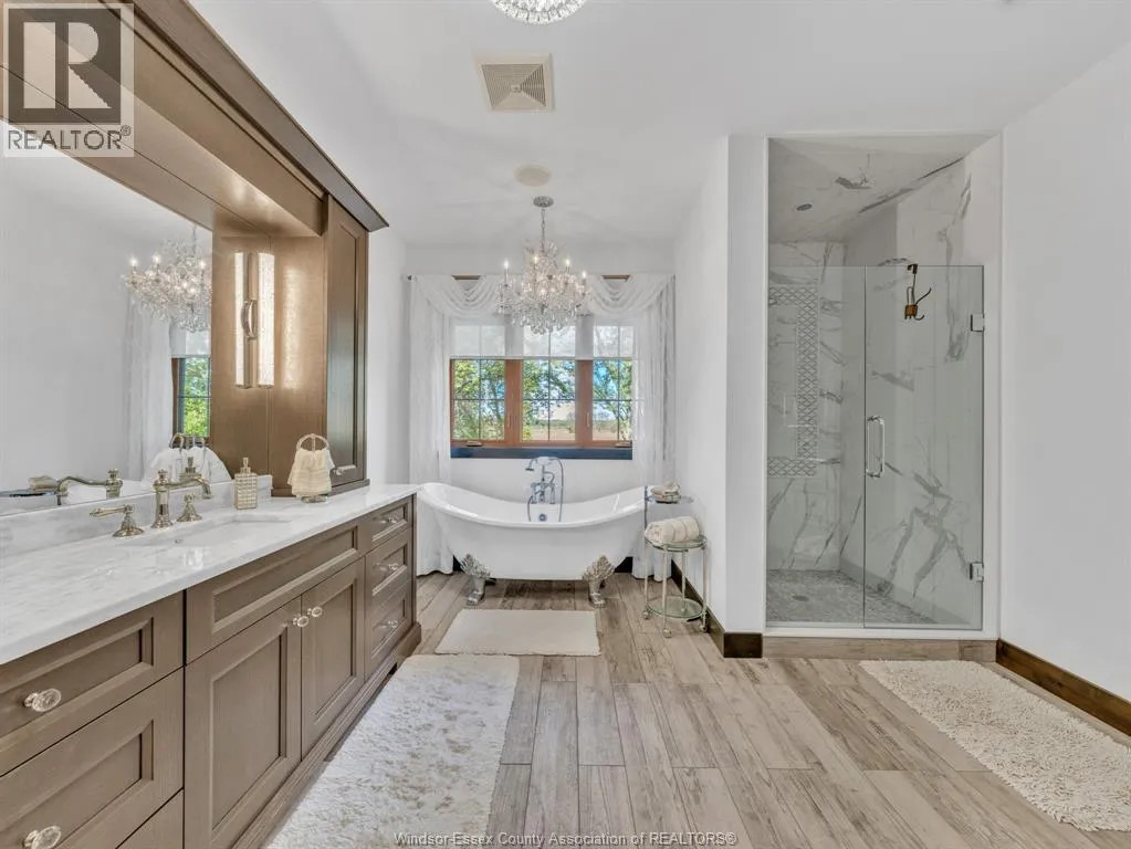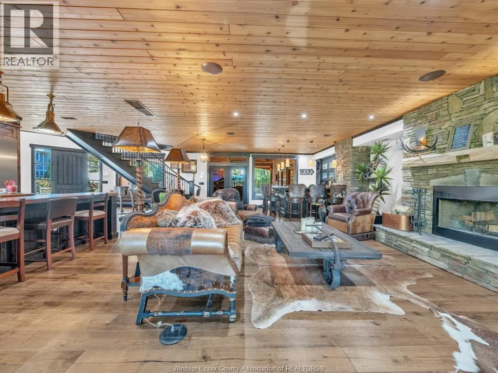 MCCAIN SIDEROAD TO HERITAGE ROAD WEST BY FORD ROAD A truly one-of-a-kind ""Garage-Lodge"" retreat on 0.9 acre perfect for car enthusiasts, entertainers, woodworkers or creatives. You name it, it can be done here. The fully cedar-lined, stamped concrete garage is heated, cooled and showcases 8+ vehicles in style. Step into the rustic-luxury mountain lodge, finished with rich natural materials, solid alder doors, trim and cabinetry. Highlights include cowboy-cut granite counters, a natural stone fireplace, black walnut bar tops, and a chef-worthy Thermador kitchen overlooking the cozy living space centered on a classic wood-burning fireplace. A 6-seat rustic luxe bar is Ideal for hosting. The layout is designed to comfortably entertain up to 40 guests, with seamless Indoor-outdoor flow to the covered patio, built-In Napoleon gas grill, and XL Big Green Egg. Upstairs, the spacious primary suite features a walk-In California Closet and spa-like ensuite with clawfoot tub, glass tile shower, and makeup vanity. Two more bedrooms, laundry, and a powder room complete the upper level. Across the home is the working 2-car garage ""the one that's okay to get dirty'' complete with built-in cabinets, granite counters, and floor drain for washing vehicles. Exterior features triple-dipped Haida Skirl cedar, stone accents, clear cedar sofits. alder-faced garage doors, full landscaping, and a 10-zone Irrigation system. Listing agent must be present for all showings. See documents tab for full details. (id:27476)