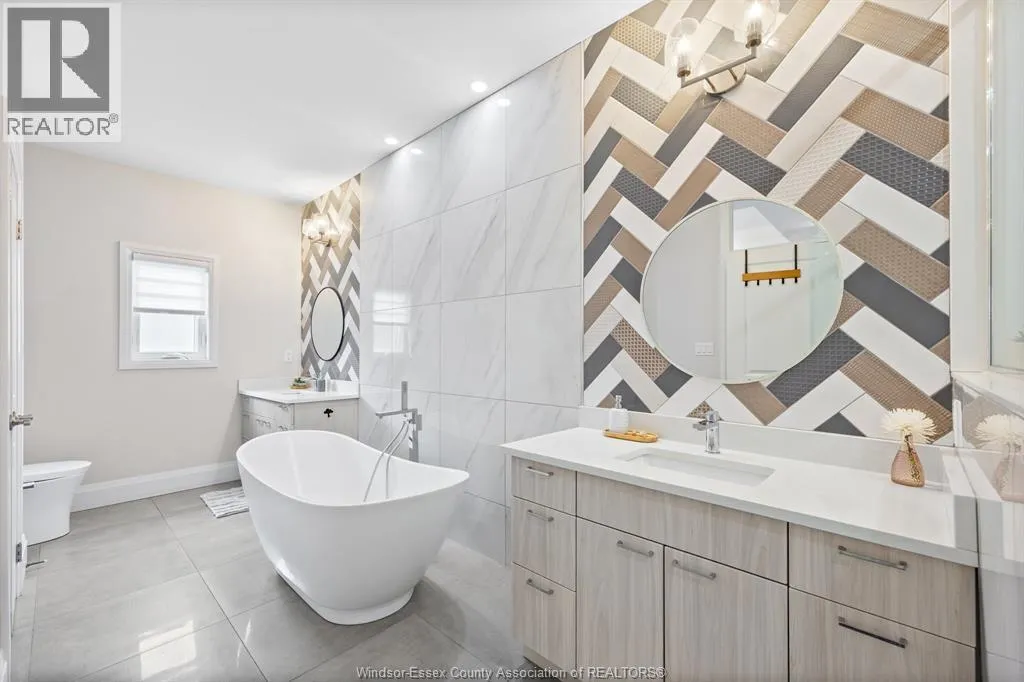 Welcome to 6 Woodland in Kingsville! This newer home offers 5 spacious bedrooms and 3 elegant bathrooms, all featuring high-end finishes. Solid engineered hardwood flooring runs throughout, paired perfectly with sleek quartz countertops. The main floor includes convenient laundry and a luxurious master suite complete with a walk-in closet and spa-like 5-piece bath, featuring a soaker tub, dual vanities, and a large walk-in shower. A fully finished basement boasts a second kitchen, ideal for entertaining or in-law potential. Absolutely turnkey, nothing left to do but move in and enjoy! (id:27476)