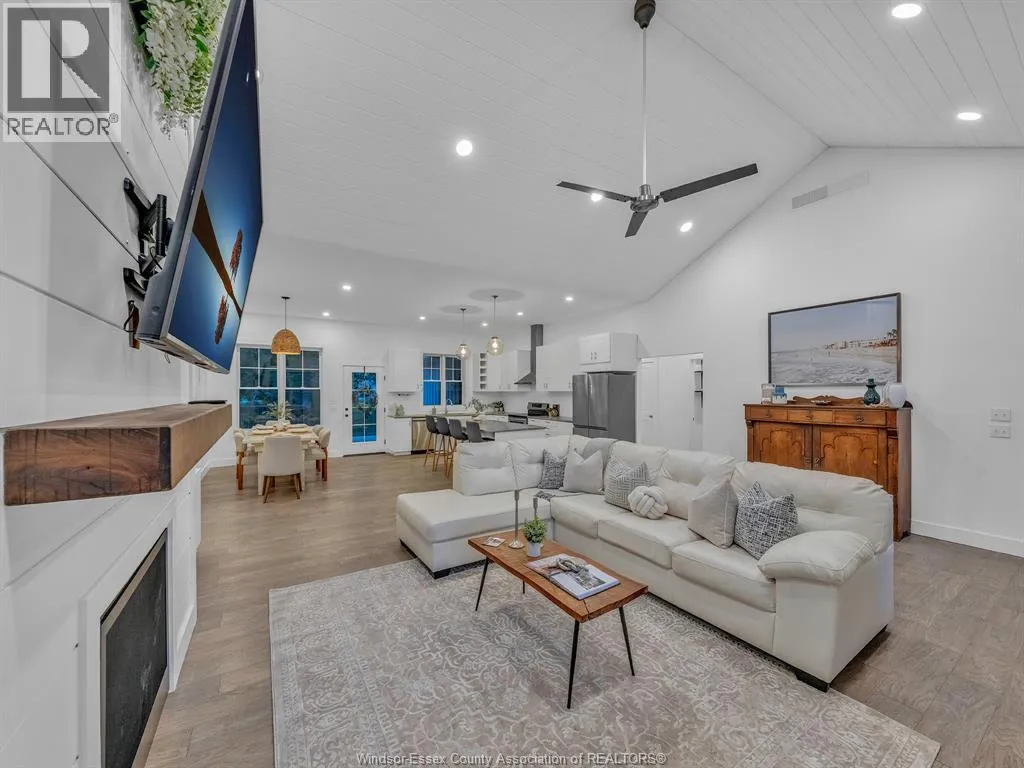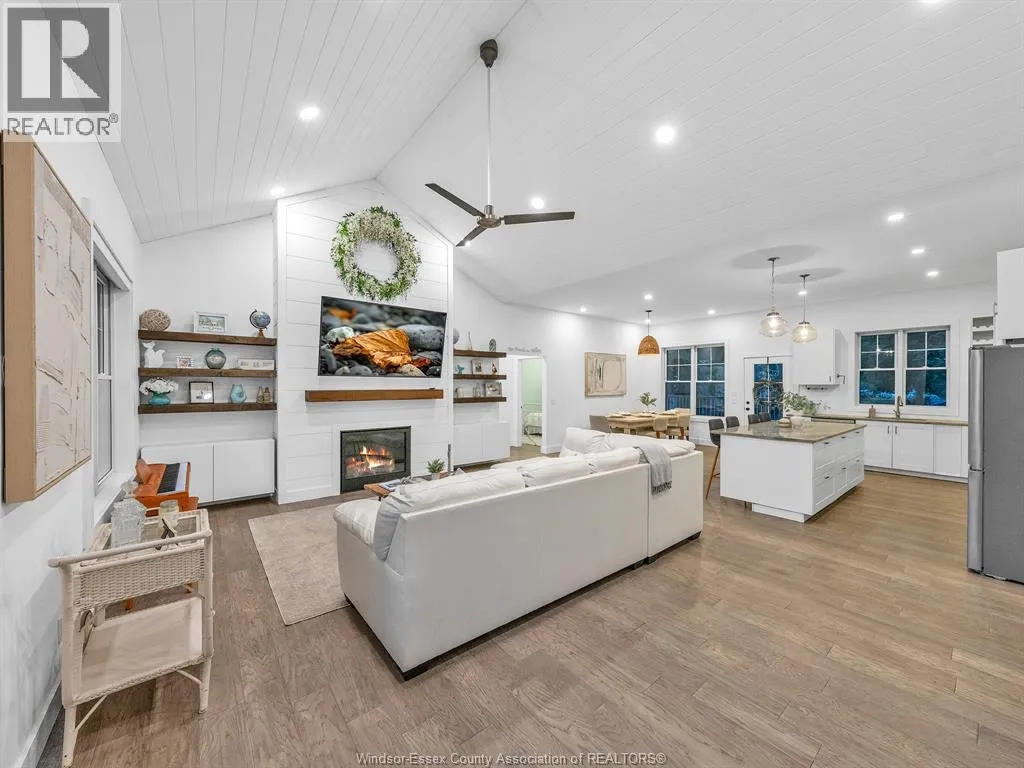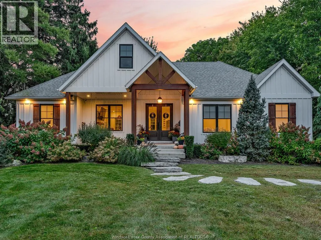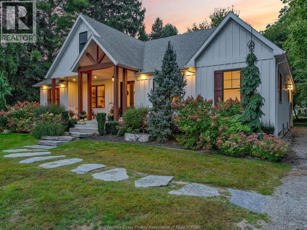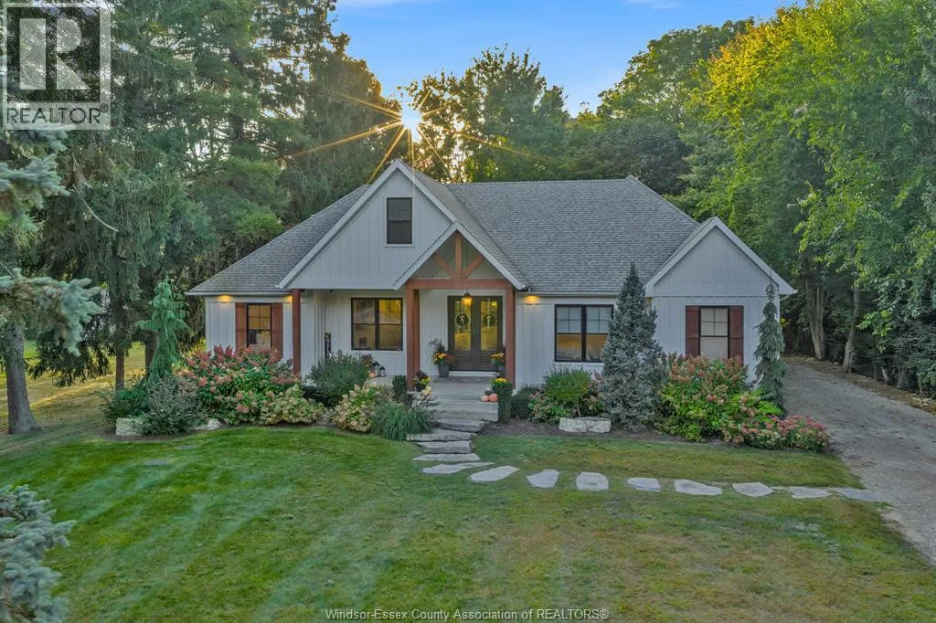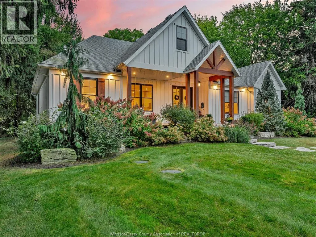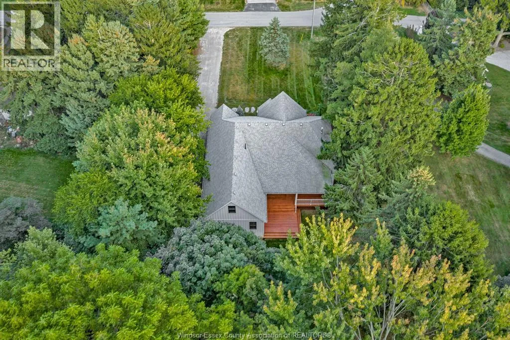 A rare find, luxury meets charm. A quiet, treed lane where neighbours have lived for years. Safe for evening walks, friendly for pets & families. Ideally nestled btwn Kingsville & Leamington. A rare mix of peace, community & accessibility. Set on a private ½-acre lot at the end of the street captures that feeling of retreat & connection. Framed by century-old trees, offering rare privacy on all sides. The property's low-maintenance landscaping with perennials blooming in every season. At Christmas, the setting is the perfect backdrop for magical lights & gatherings. Step inside to discover a home that feels both grand & effortlessly livable. The thoughtful one-floor layout is designed to suit a growing family or a mature buyer. With 3 large bdrms, 2.5 bths on the main lwel, heated bthrm floors, an o/sized primary suite w/ walk-in closet & spa-inspired ensulte, whispers comfort & quality. Natural light floods the interiors. Finished basement w/ full bthrm & room for two more bdrms, offices, or hobby spaces, along with generous storage. Outdoors, enjoy a 2-tiered deck & perfectly sized yard that feels private, wooded and easy to maintain. Room for a pool, play space, or evenings spent under the canopy of trees. A 2 car garage w/ ramp access adds practicality. The location is unmatched: 2-min walk to sushi, and convenience store, Quick 5-min drive to schools, groceries, arenas, and restaurants. It's a home where life feels easy, joyful, and a little bit magical. (id:27476)