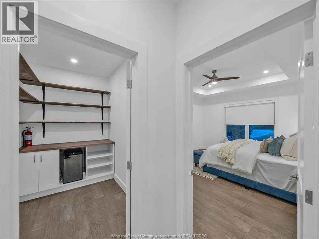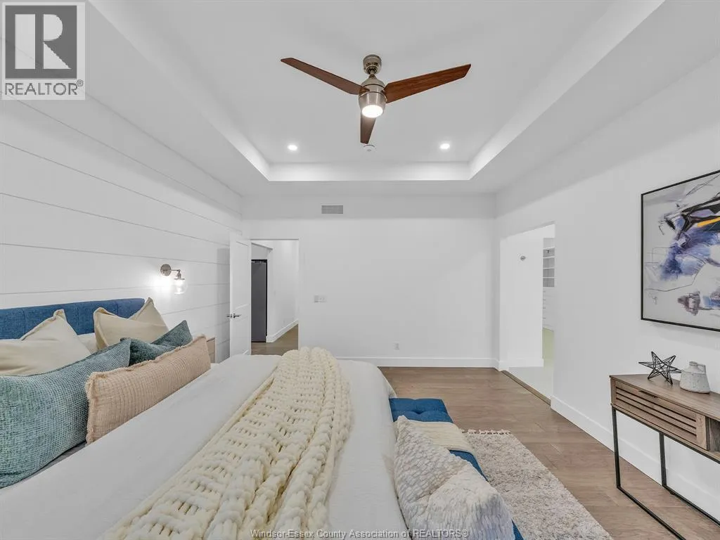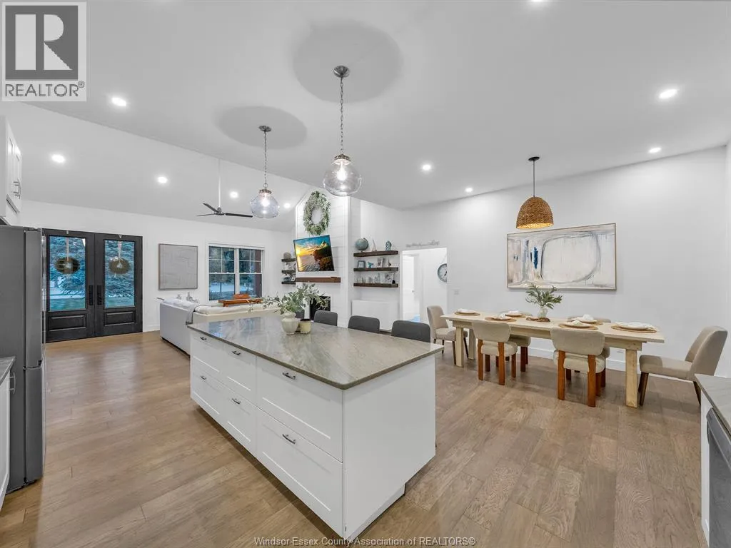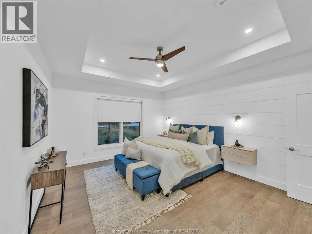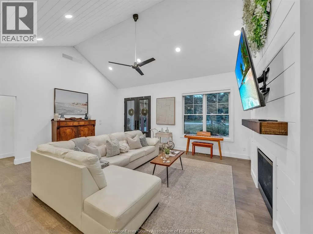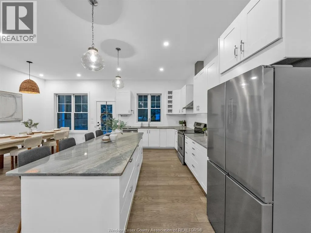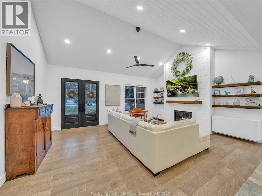 A rare find, luxury meets charm. A quiet, treed lane where neighbours have lived for years. Safe for evening walks, friendly for pets & families. Ideally nestled btwn Kingsville & Leamington. A rare mix of peace, community & accessibility. Set on a private ½-acre lot at the end of the street captures that feeling of retreat & connection. Framed by century-old trees, offering rare privacy on all sides. The property's low-maintenance landscaping with perennials blooming in every season. At Christmas, the setting is the perfect backdrop for magical lights & gatherings. Step inside to discover a home that feels both grand & effortlessly livable. The thoughtful one-floor layout is designed to suit a growing family or a mature buyer. With 3 large bdrms, 2.5 bths on the main lwel, heated bthrm floors, an o/sized primary suite w/ walk-in closet & spa-inspired ensulte, whispers comfort & quality. Natural light floods the interiors. Finished basement w/ full bthrm & room for two more bdrms, offices, or hobby spaces, along with generous storage. Outdoors, enjoy a 2-tiered deck & perfectly sized yard that feels private, wooded and easy to maintain. Room for a pool, play space, or evenings spent under the canopy of trees. A 2 car garage w/ ramp access adds practicality. The location is unmatched: 2-min walk to sushi, and convenience store, Quick 5-min drive to schools, groceries, arenas, and restaurants. It's a home where life feels easy, joyful, and a little bit magical. (id:27476)