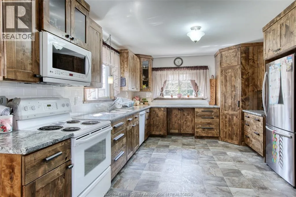 Discover the perfect blend of comfort and spaciousness in this 5-bedroom, 3-bathroom home, ideal for families looking for both style and functionality. Nestled in the charming town of Kingsville, this property offers the serene beauty of country living with modern amenities.The heart of the home is a large country kitchen, perfect for preparing gourmet meals and hosting dinner parties. Equipped with ample counter space and storage, this kitchen invites you to unleash your culinary prowess. The home features a geo-thermal heating and cooling system, ensuring year-round comfort while being eco-friendly. Step outside to explore the expansive outdoor space, which is a paradise for those who appreciate privacy and natural beauty. The lot size is generous enough to host family gatherings, grow a lush garden, or simply enjoy the great outdoors.For the auto enthusiast or (hobbyist, the property includes a massive four-car garage alongside a fully insulated 32' x 54' workshop. (id:27476)