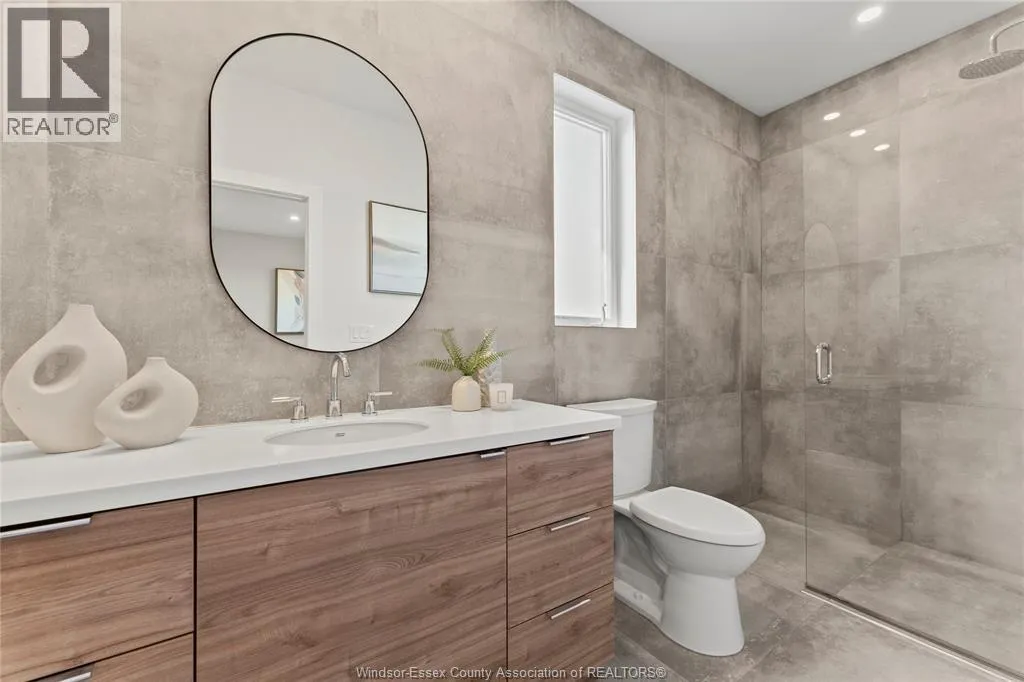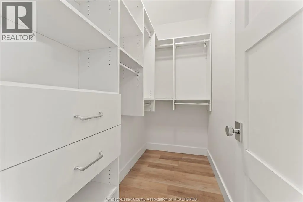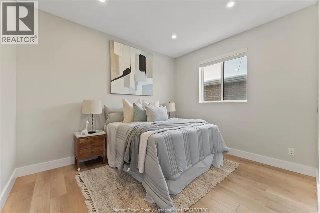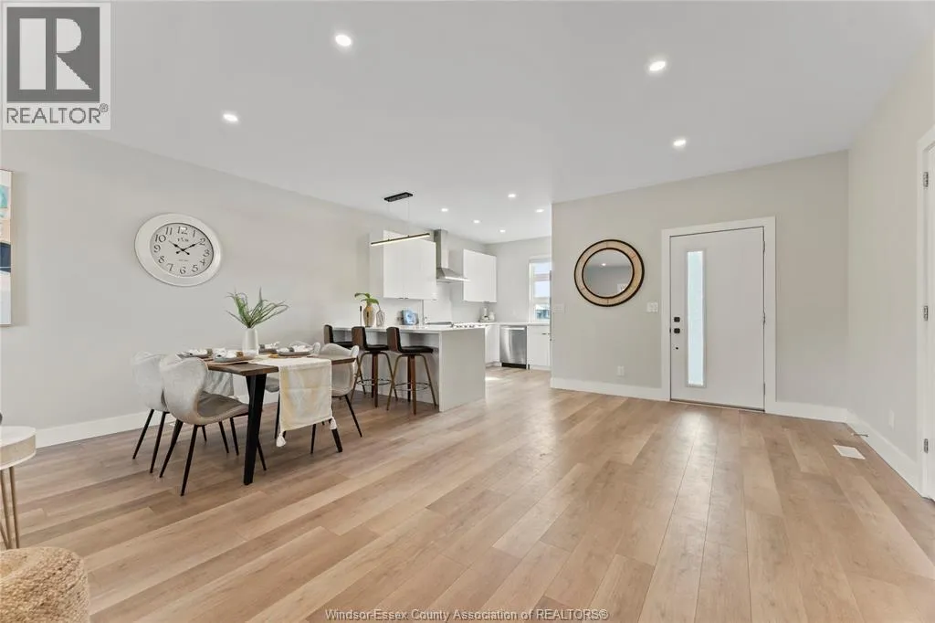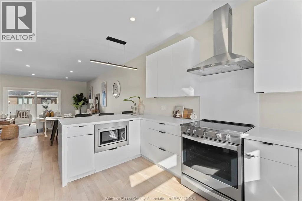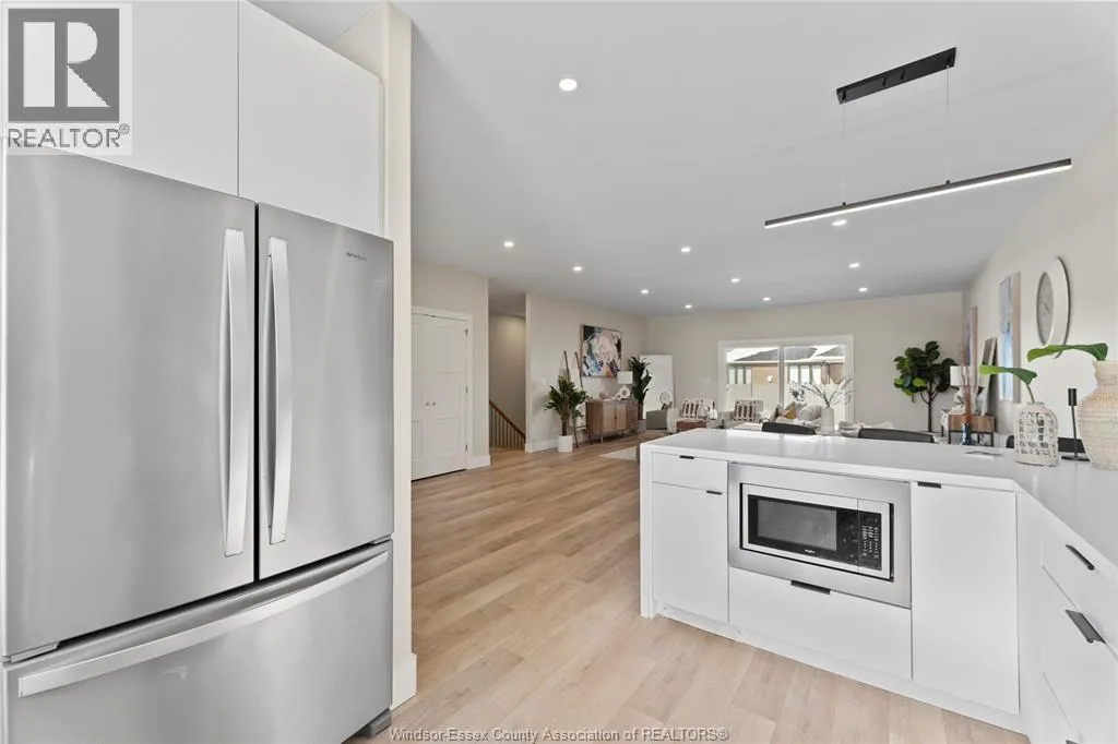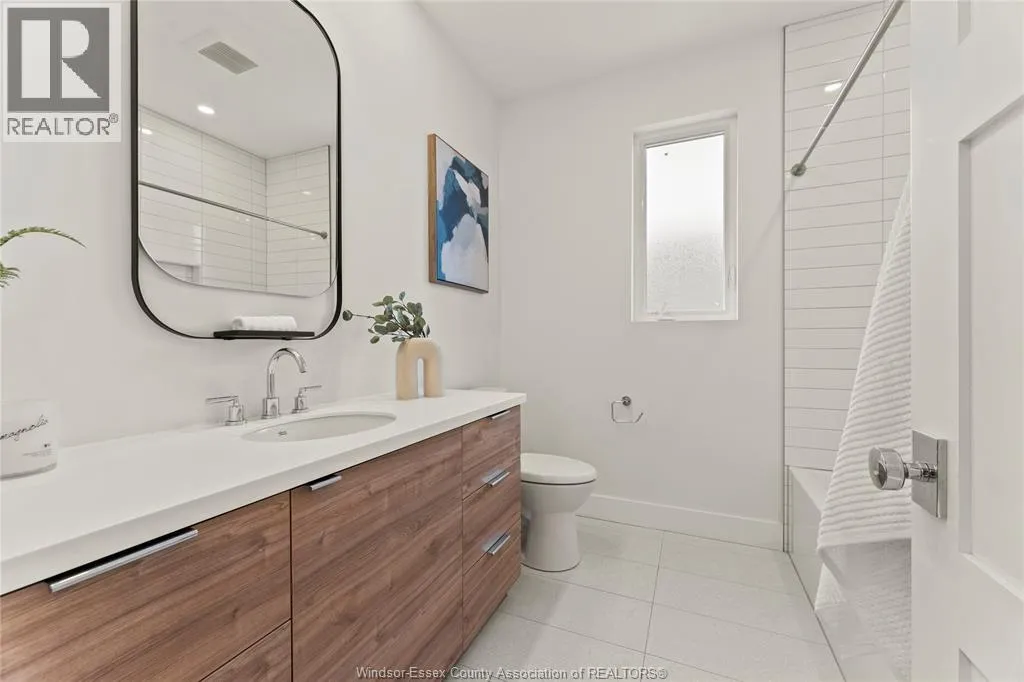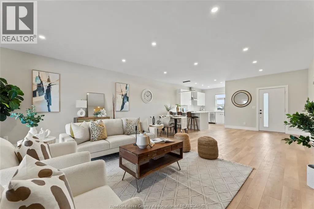 This oversized ranch style semi townhome rests in a prime Kingsville location with upgraded finishes throughout! This 2+1 bedroom, 3 bath contemporary styled design spans approx. 1,550 sqft and is streamlined in a clean and functional retro look. Main floor finishes include porcelain tiles, upgraded wood flooring, curb less walk-in shower, Riobel faucets, clerestory windows, and custom California closets throughout. Open concept kitchen, dining, and family room with warm neutral, nude coloured wood flooring. Fully finished basement with large family & recreation room, spacious bedroom with walk-in California closet, separate 3pc bath and utility. Double car garage leads to organized laundry/mud room. Expansive and fully covered rear patio with outdoor fan, clean modern looking front landscaping, and cement drive. (id:27476)