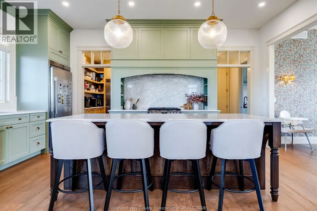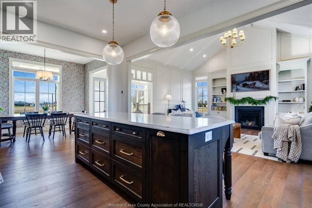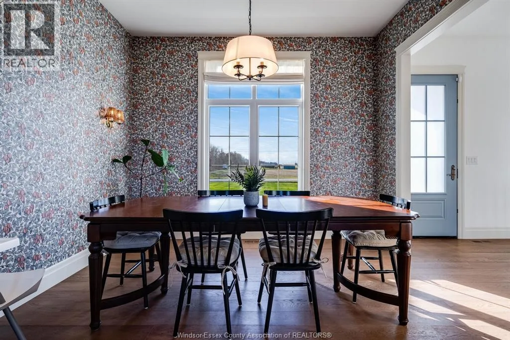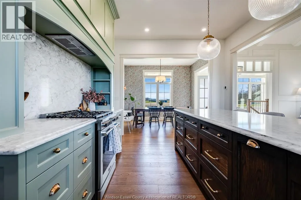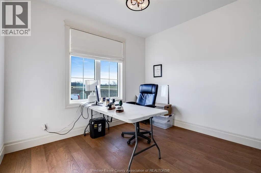 Step into this stunning custom-built colonial that showcases exceptional craftsmanship and move-in ready elegance. This impressive 1,940 square foot home showcases thoughtful design with six bedrooms and three full bathrooms including a large ensuite. The heart of the home features custom cabinetry that would make any chef smile, complete with a walk-in pantry. Hardwood floors span the main level, which also includes a main floor laundry. The living room boasts cathedral ceilings and the basement features bright 9-ft ceilings. Outside, enjoy an oversized heated/cooled garage, covered porch, and spacious county lot with irrigation. Added perks include Generac rough-in, 220V plug, hot/cold garage sink, hot tub rough-in, Security One system & a BBQ gas line. Located in peaceful Kingsville near the Jack Minor Bird Sanctuary and scenic walking trails. (id:27476)