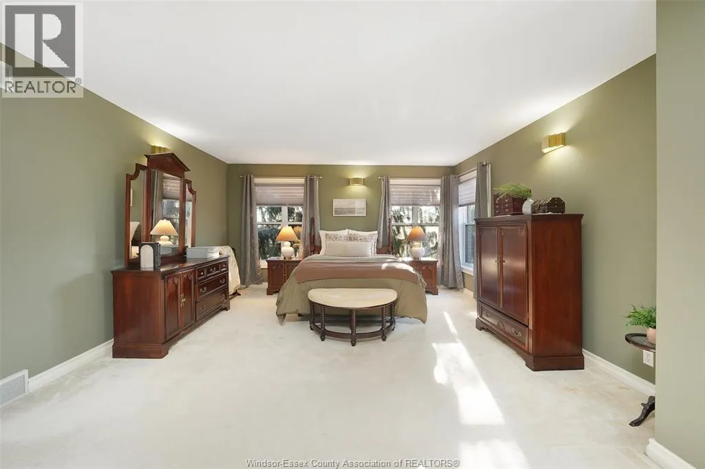 Storybook living awaits on Rowley Park Drive in one of Kingsville's most prestigious executive neighbourhoods, just moments from Lake Erie. This custom-built, 3+1 bed, 2.5 bath 2 stry home with finished basement is offered for sale for the first time in over 40 years. Set on an oversized corner lot with lake views and a park-like, prof landscaped setting, the home has been meticulously maint by its original owners. A light-filled foyer with soaring ceilings and skylights leads to a sunken living room with cathedral ceiling and an expansive dining area ideal for entertaining. The French-style kit feat quality appliances and open to a breakfast nook and fam room with natural fireplace. Upstairs offers a generous primary retreat with ensuite and private balcony, plus additional spacious bedrooms. The fin L/L provides flex living space, include a bdrm, study, and ample storage. Double car garage. A rare opportunity combining charm, space, thoughtful design, and a welcoming community. (id:27476)