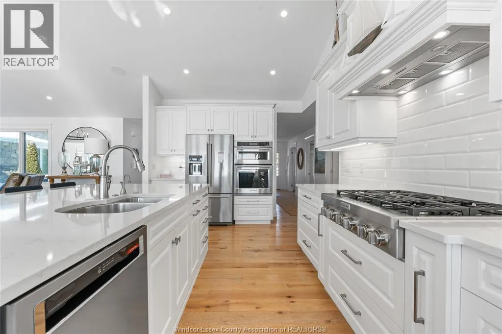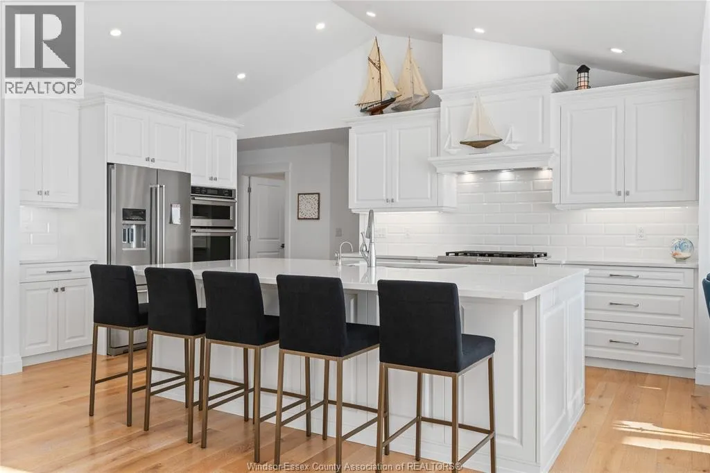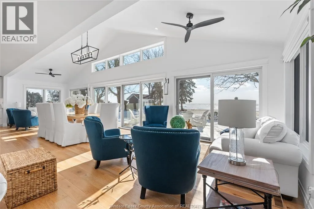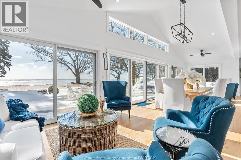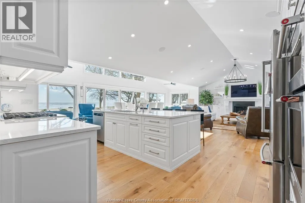Extraordinary waterfront home, offering 100 feet of frontage and over 500 feet of depth, completely reconstructed in 2020 with only one original wall remaining. This stunning home spans approximately 2,900 sqft and delivers panoramic water views, breathtaking sunrises and sunsets, and direct access to a sandy beach with a new steel breakwall and wide stepsâperfect for enjoying life on the water. Designed for both comfort and entertaining, the home features a bright open-concept layout with cathedral ceilings and multiple inviting conversation areas, all framed by expansive waterfront views. The custom kitchen is a true centerpiece, complemented by a walk-in pantry, while the welcoming front entrance includes a walk-in coat closet for everyday convenience. The spacious layout offers 3+1 bedrooms, office and 3 full bathrooms, including a serene primary suite and a second bedroom with waterfront views. Listing agent must be at all viewings. (id:27476)