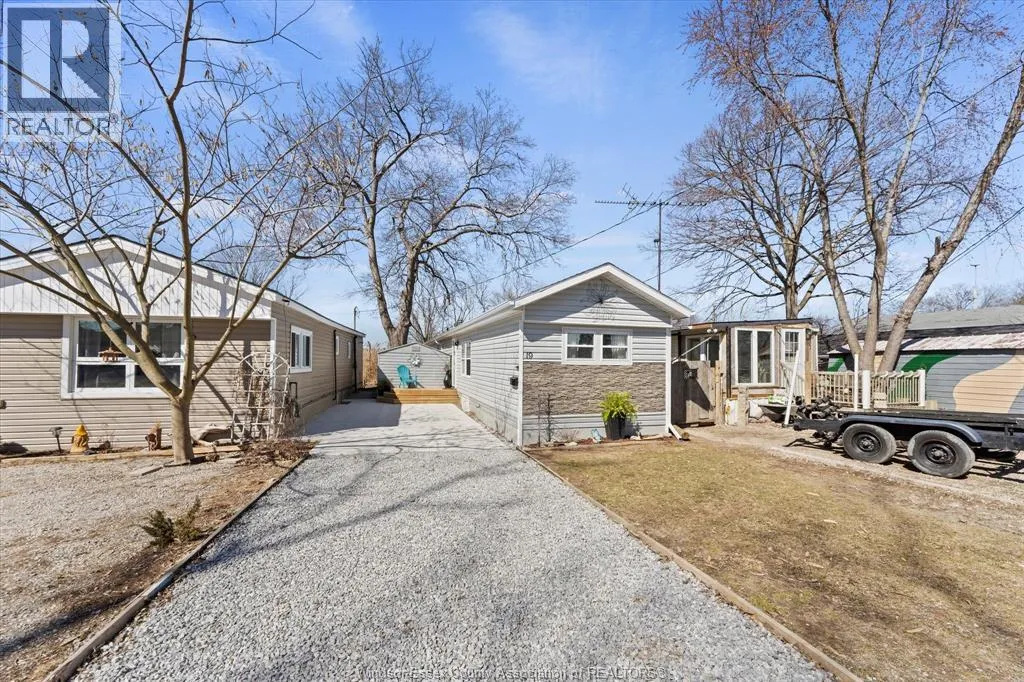 Live by the water in this updated 2 bedroom, 2 bathroom home located in Heritage Mobile Home Park at Linden Beach in Kingsville. Just a short walk to the sand, this home has been fully renovated and offers easy, year round living in a quiet lakeside community. The primary bedroom includes an ensuite and beach views, while the kitchen has been redone with newer cabinetry, granite countertops, and stainless steel appliances. Many updates have already been taken care of, including flooring, drywall, paint, lighting, doors, trim, washer/dryer combo, furnace, central air, driveway, and the deck has also been repaired. The home features a wraparound porch, storage shed, newer windows, and solid roof and siding. Thereâs space to park your boat behind the home with quick access to Lake Erie. Monthly park fees are $450 and include taxes, water, garbage, and recycling. Park approval required. A nice option for anyone looking for a move in ready place near the beach without the high cost of a traditional waterfront home. (id:27476)
