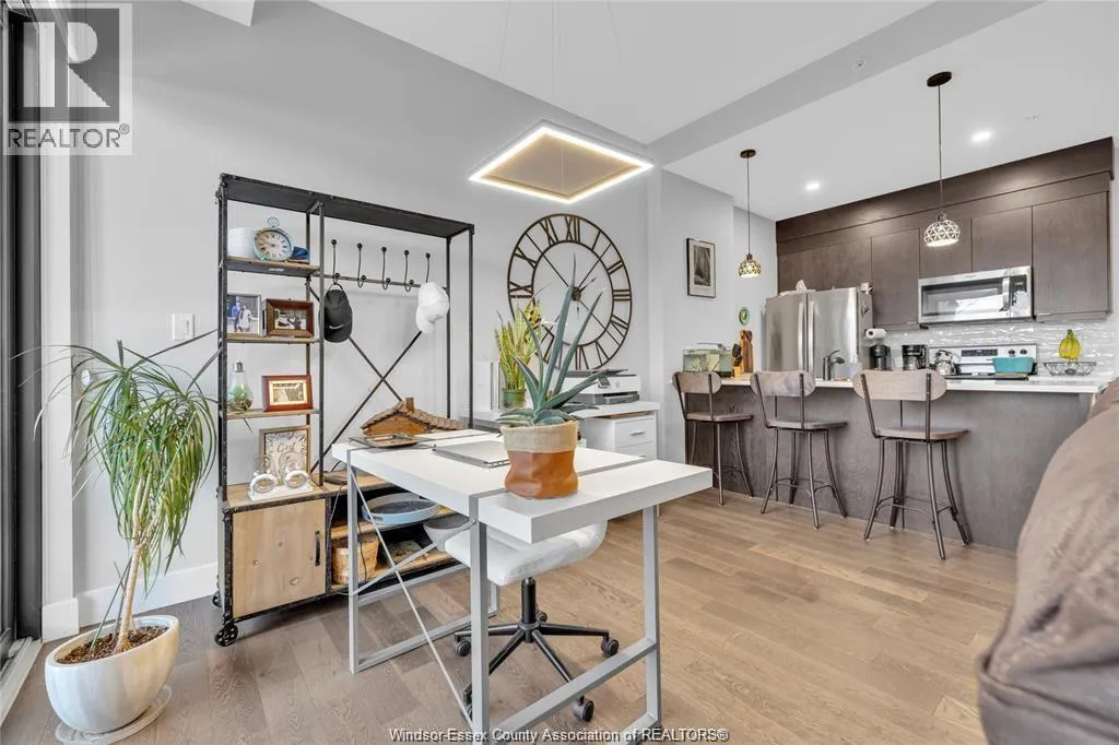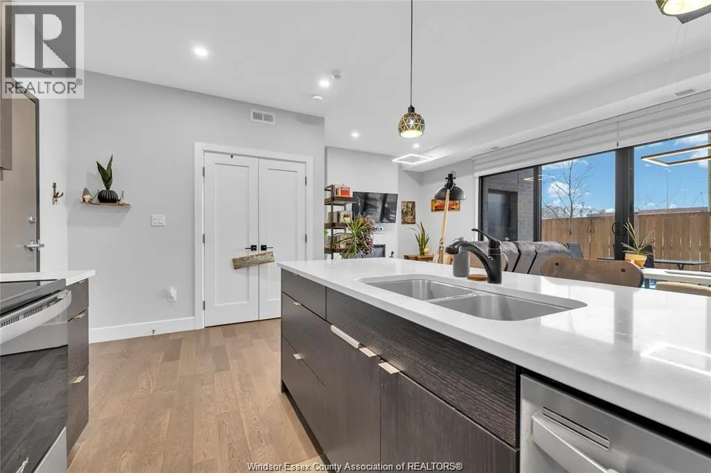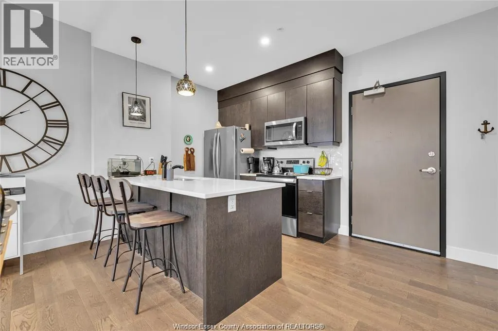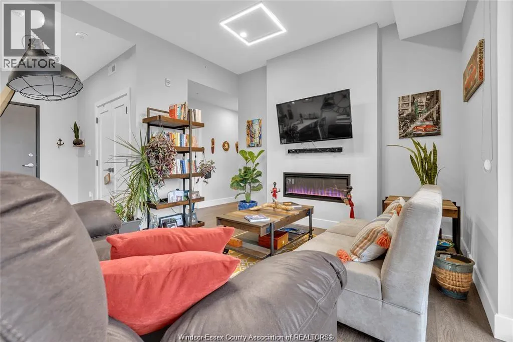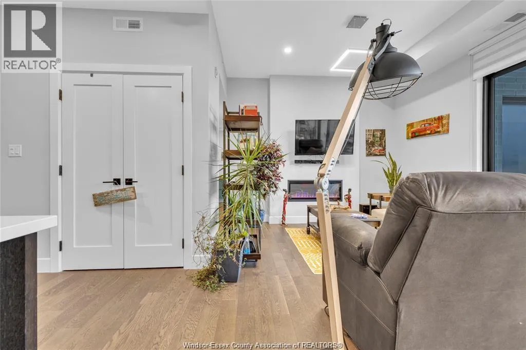 Stunning main level condo in beautiful Kingsville featuring oversized patio doors that fill the space with natural light and open to a private patio/balcony! The open-concept kitchen with island overlooks the dining area and living room with a cozy fireplace, creating a perfect space for both everyday living and entertaining. Beautiful hardwood flooring flows throughout, adding warmth and elegance. This well designed 1-bedroom, 1-bath home also offers the rare convenience of in-suite laundry. An ideal opportunity for first-time buyers, down-sizers, or investors. (id:27476)