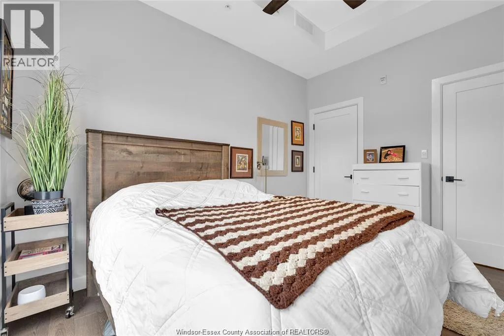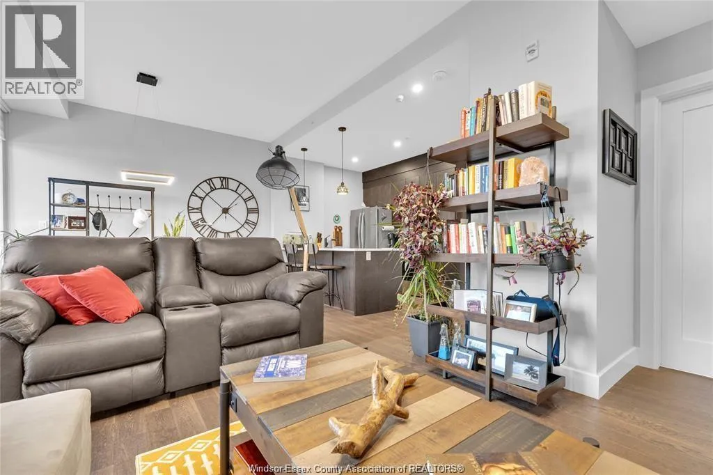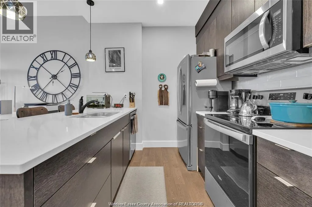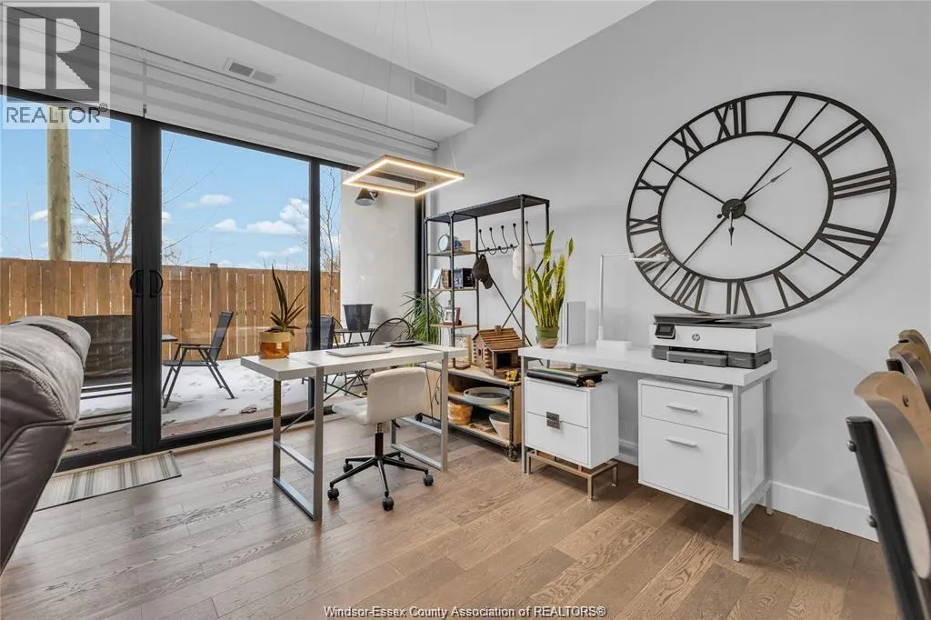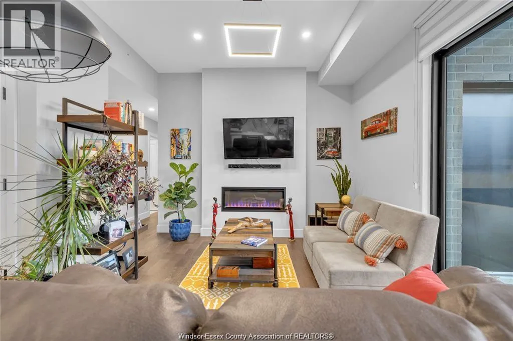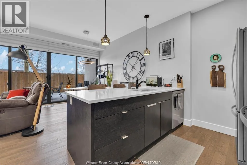 Stunning main level condo in beautiful Kingsville featuring oversized patio doors that fill the space with natural light and open to a private patio/balcony! The open-concept kitchen with island overlooks the dining area and living room with a cozy fireplace, creating a perfect space for both everyday living and entertaining. Beautiful hardwood flooring flows throughout, adding warmth and elegance. This well designed 1-bedroom, 1-bath home also offers the rare convenience of in-suite laundry. An ideal opportunity for first-time buyers, down-sizers, or investors. (id:27476)
