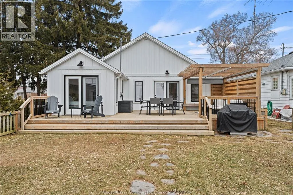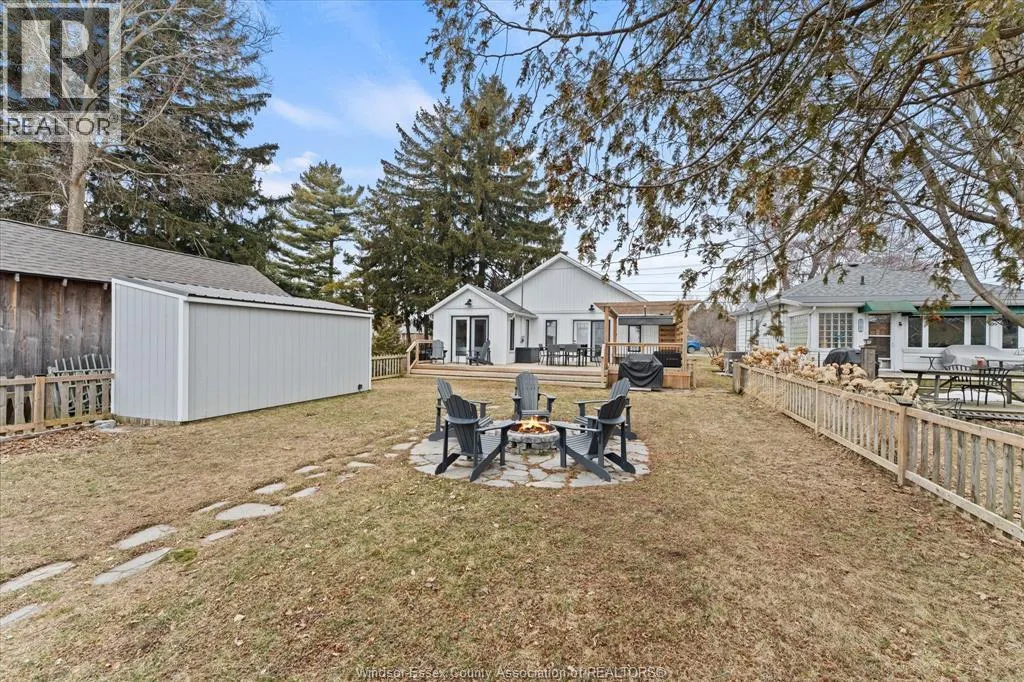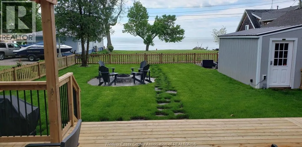 Head south down Arner town line, east on #20, south on McCain Side Road past Kingscoast Estate Winery, east on Heritage Rd. Located in Kingsville, Ontario, this beautiful 3 bedroom 2 bath home has an unobstructed view of Lake Erie and comes with a membership to a private park with sandy beach. Enjoy the lake life for yourself and/or earn approx. $60K+ income as a host by making use of the short term rental license, which is registered with the town (details available upon request). Check out the 5-star Airbnb listing: https://airbnb.ca/h/theweekendhouse . Backyard features open-air dining on a large deck, covered pergola w/ retractable shade, fire pit, and oversized shed. All fenced-in, protecting the kiddos and pets. Renovated down to the studs in 2021 and newer updates include furnace in 2024, crawlspace upgraded in 2025, and landscaping w/ sprinkler system. Call Beth for immediate details at 519-257-3260. (id:27476)