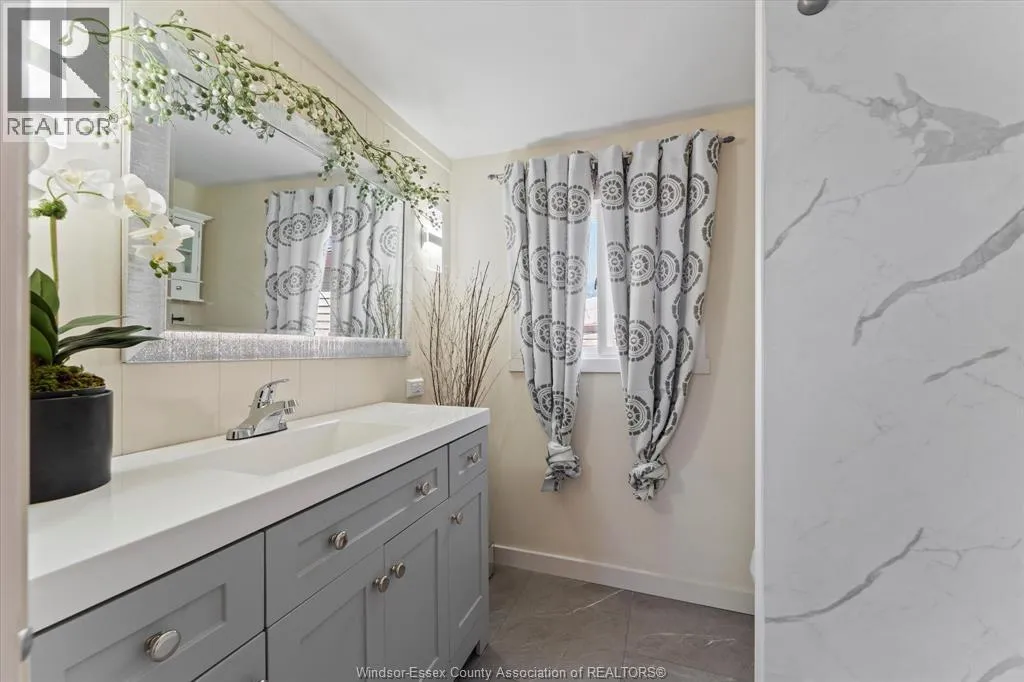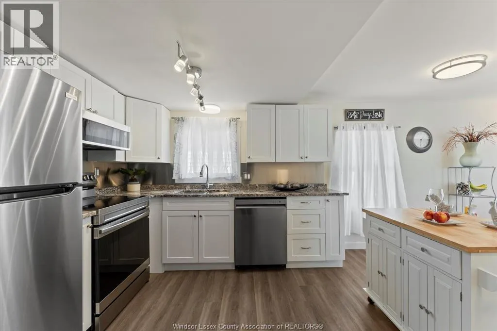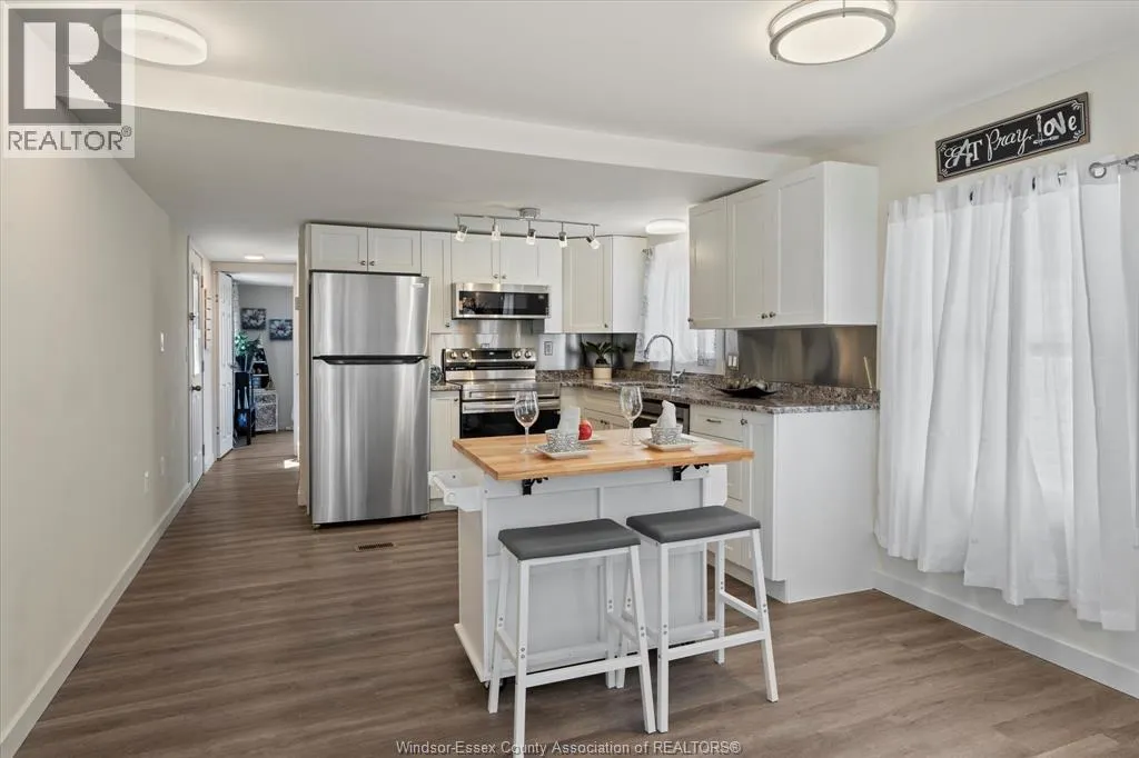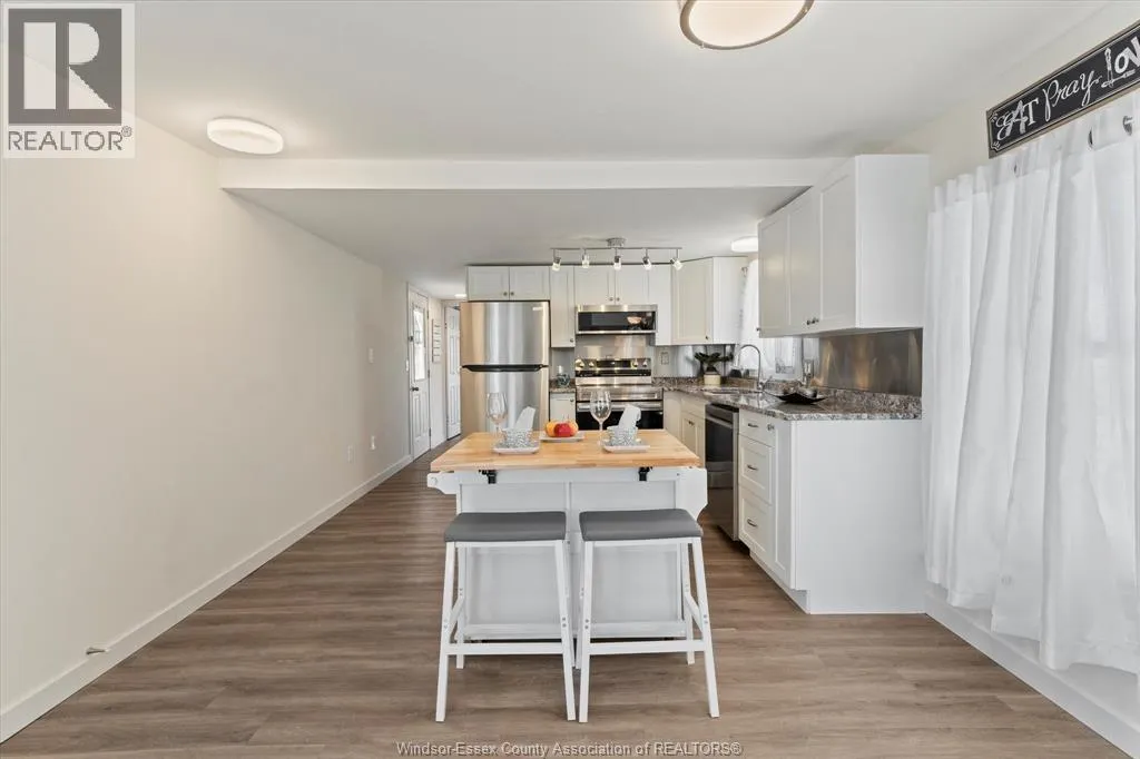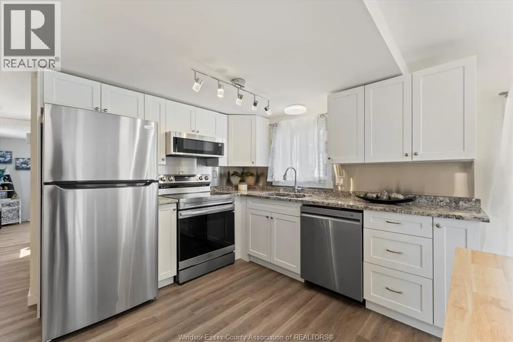 Live by the water in this updated 2 bedroom, 2 bathroom home located in Heritage Mobile Home Park at Linden Beach in Kingsville. Just a short walk to the sand, this home has been fully renovated and offers easy, year round living in a quiet lakeside community. The primary bedroom includes an ensuite and beach views, while the kitchen has been redone with newer cabinetry, granite countertops, and stainless steel appliances. Many updates have already been taken care of, including flooring, drywall, paint, lighting, doors, trim, washer/dryer combo, furnace, central air, driveway, and the deck has also been repaired. The home features a wraparound porch, storage shed, newer windows, and solid roof and siding. Thereâs space to park your boat behind the home with quick access to Lake Erie. Monthly park fees are $450 and include taxes, water, garbage, and recycling. Park approval required. A nice option for anyone looking for a move in ready place near the beach without the high cost of a traditional waterfront home. (id:27476)