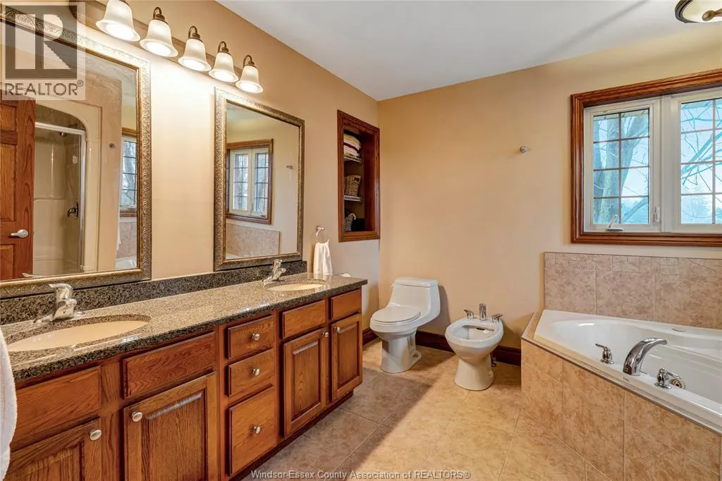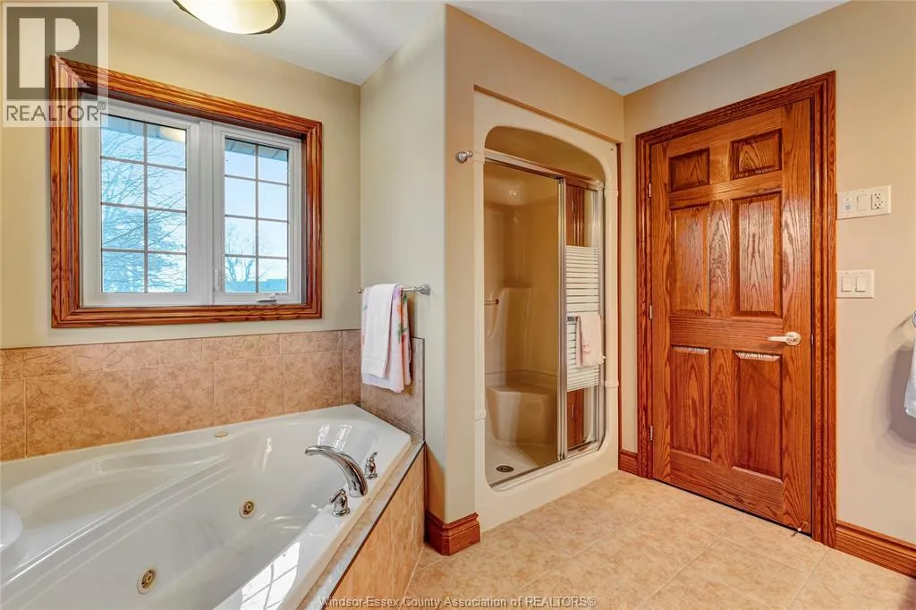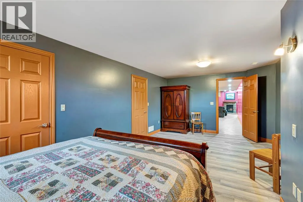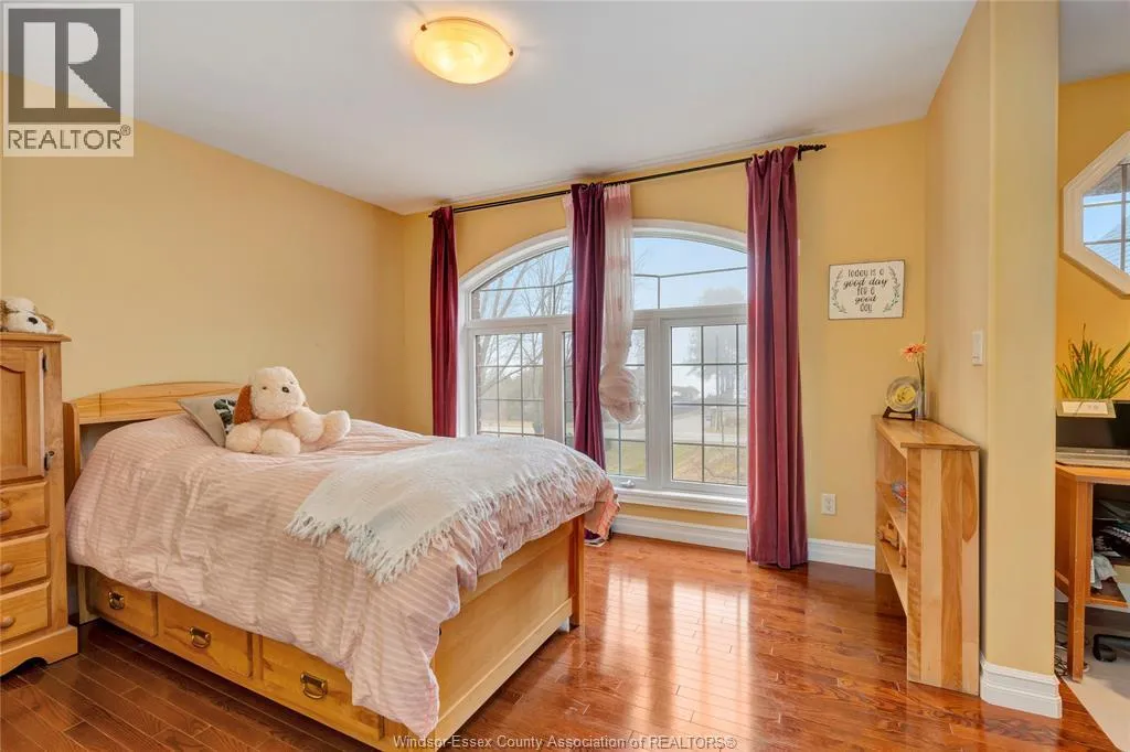 Located on a dead end street across from Lake Erie, this beautifully maintained custom-built brick 1 1/2 storey home is situated on a large peaceful lot with few neighbor on a peaceful street. This home features hardwood and ceramic flooring throughout, 4-5 spacious bedrooms and 4.5 bathrooms. The main floor features an open concept design with vaulted ceilings in a great room with fireplace also a cozy den with fireplace and a massive master bedroom with 5 pce ensuite and a handy laundry room and 2 pce quest bath. Upstairs features 3 bedrooms with two full baths 1 a jack and jill. The 2nd level also features a peaceful area leading to the balcony over looking Lake Erie. This home also features a fully finished lower level with kitchen, family room , 4 pce bath, bedroom and office. It also features 3 car garage outdoor hot tube room and a massive lot with many possible uses, You will love the quiet location and summer breezes, do not miss out. Added bonus Solar System paid for. (id:27476)