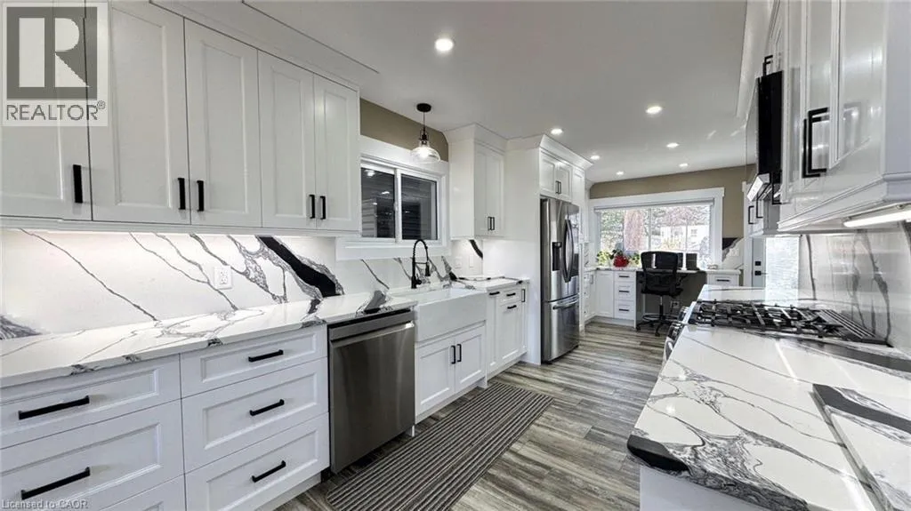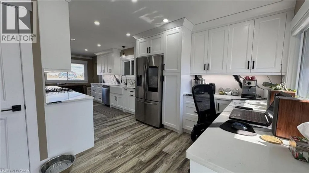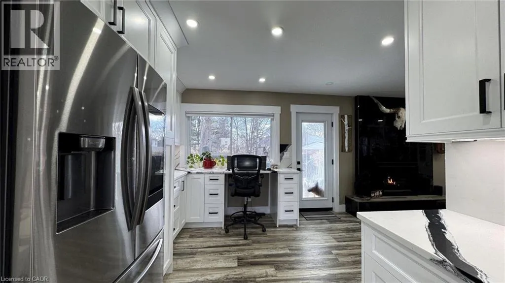 New 40 year roof, completely updated septic system, new inground sprinkler system, new siding, soffit, fascia and eavestroughs, new inground drainage, new furnace, upgraded hydro to 200 amp and new panel with surge protection, main floor completely redone with all new electrical wiring and outlets, in floor outlets for electric furniture, all new plumbing, mold proof, water proof and fire proof insulation and attic completely reinsulated, all new drywall, all interior walls sound proofed as well, new porcelain flooring throughout, new gas fireplace, custom chef''s kitchen with all new stainless appliances with quartz counter tops and back splashes, All appliances are wifi enabled, high quality kitchen cabinets made from 3/4 plywood, all four entry/exit doors custom made, all interior doors are solid wood and new bay window, Two laundry rooms. One on the main floor with high end stackable washer and dryer and the other is in the basement with industrial heavy duty washer and dryer. completely fenced in backyard, added a small fruit tree orchard in the back yard with 10 fruit trees. 14x14 deck, detached 36'x24' fully cemented four door garage/workshop with hydro and gas, Security cameras installed throughout the property, Over 130 new pot lights installed inside and out, two minutes to schools, shopping and lake. Situated on .87 acres. Property must be seen to be appreciated. (id:27476)