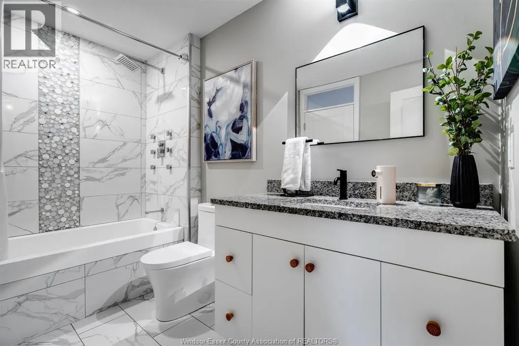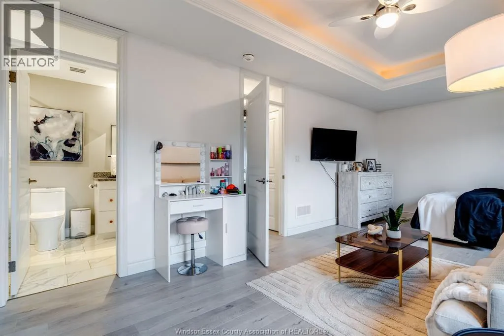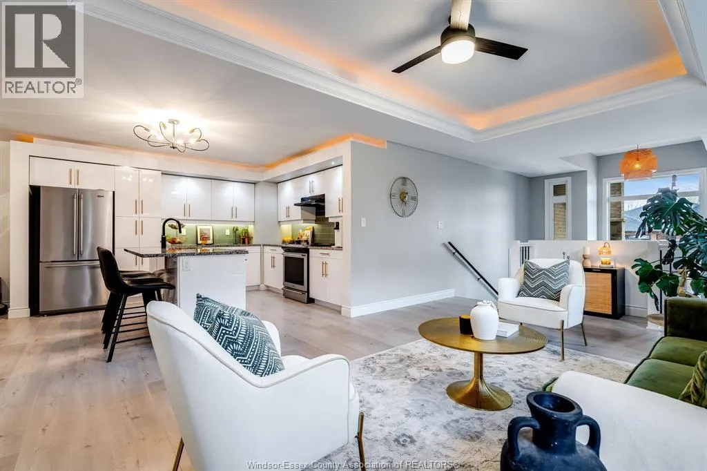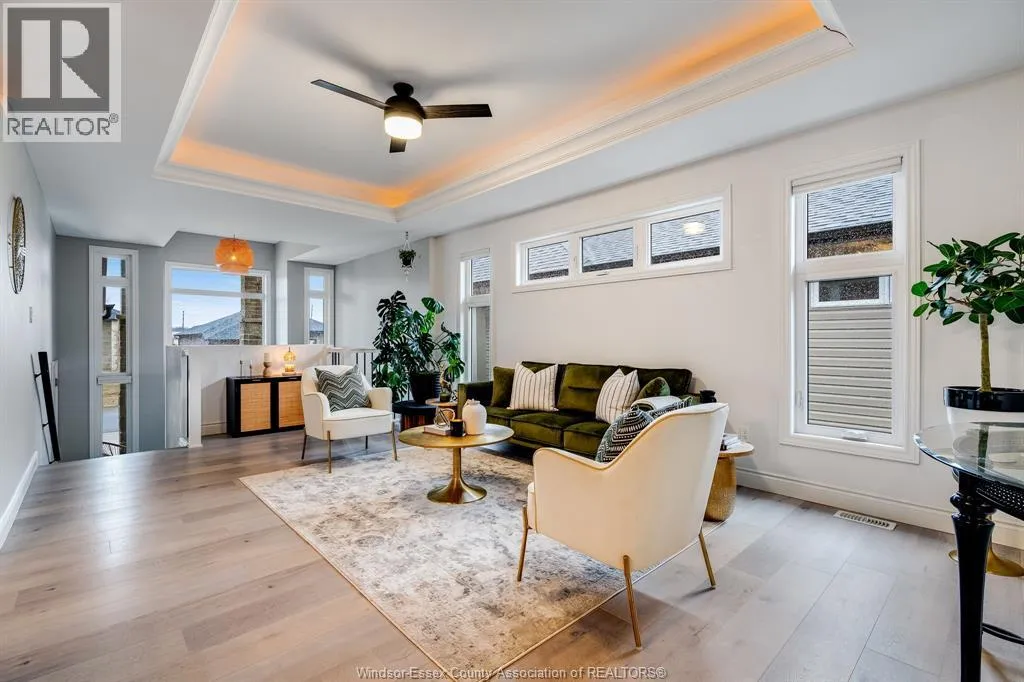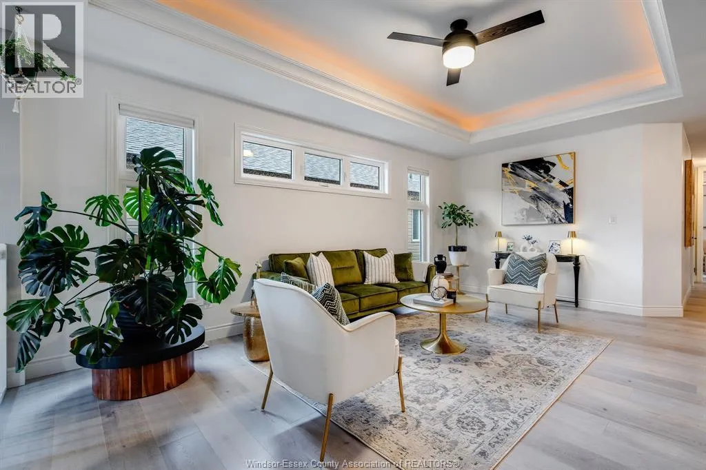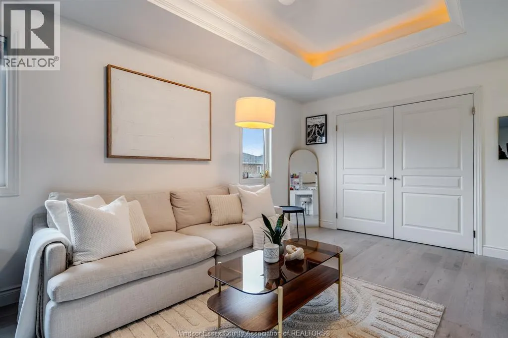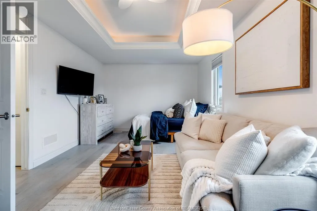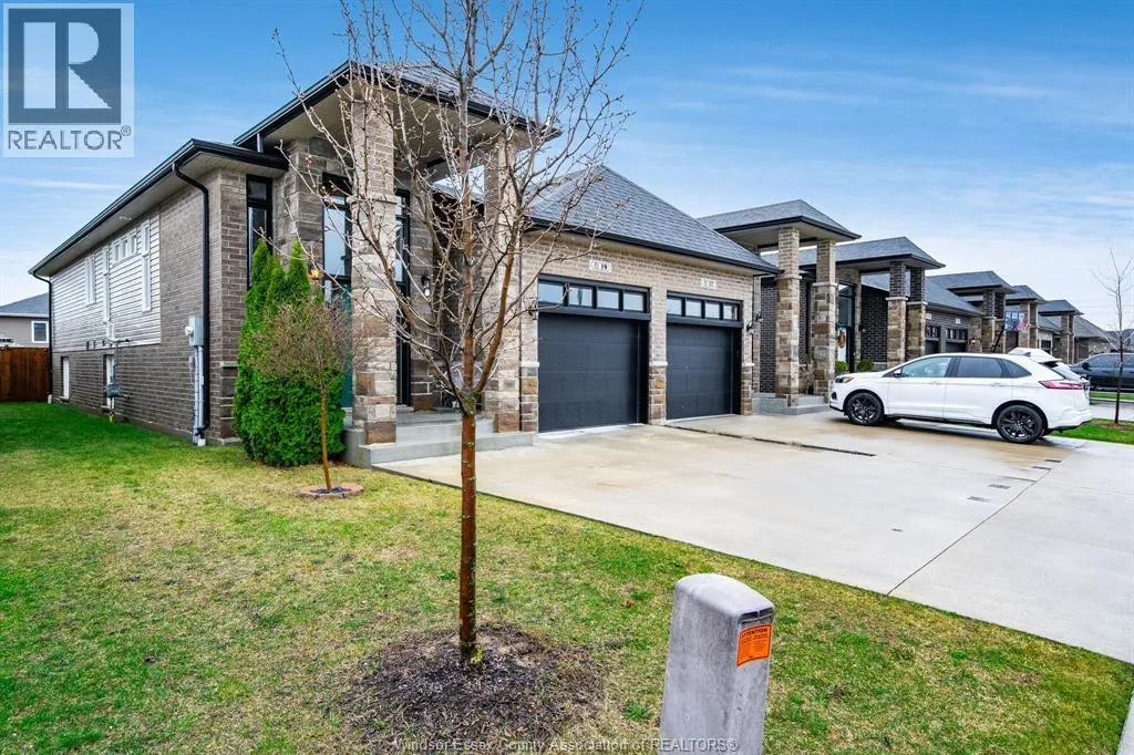 Beautiful 8-year-young twin villa in a fantastic Kingsville location! Exceptionally well maintained, this home showcases high-end finishes throughout, including tray ceilings with crown molding and recessed lighting. The oversized primary bedroom offers convenient access to a spacious 4-piece bath, while main floor bedrooms feature transom windows that fill the space with natural light. The partially finished lower level includes a grade entrance with large, bright patio doors, an additional finished bedroom, and a generous bathroom complete with a modern glass and porcelain shower. A deep, extra-tall single-car garage provides excellent potential for overhead storage. Ideally located in one of Kingsvilleâs most sought-after neighborhoods, just steps from Erie Migration District School, shopping, the arena, and a dog park. This home is priced to sell! (id:27476)