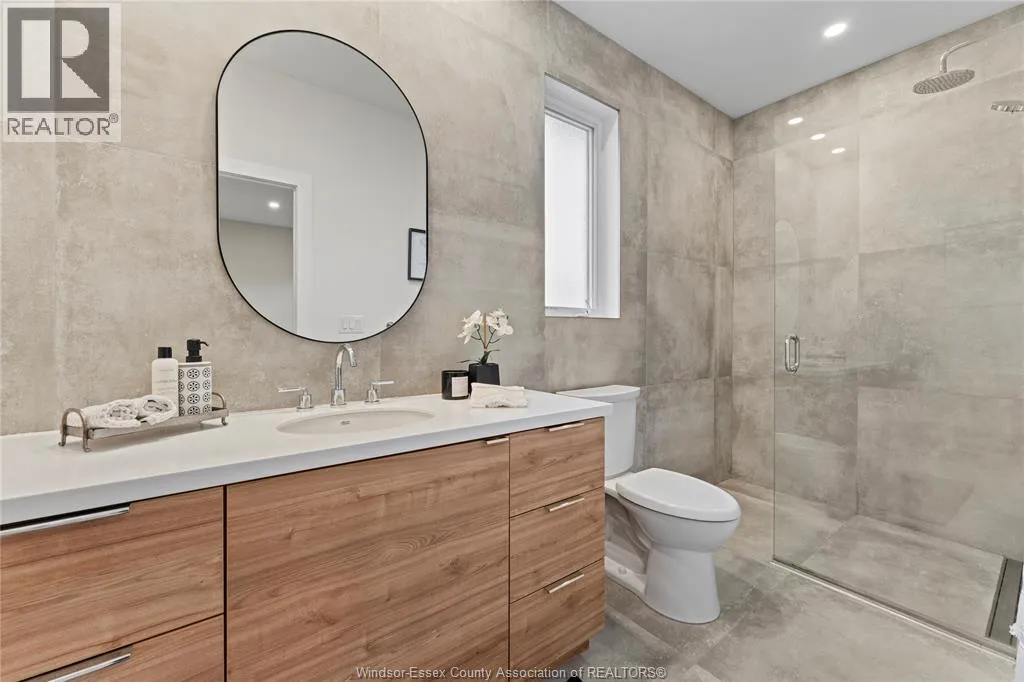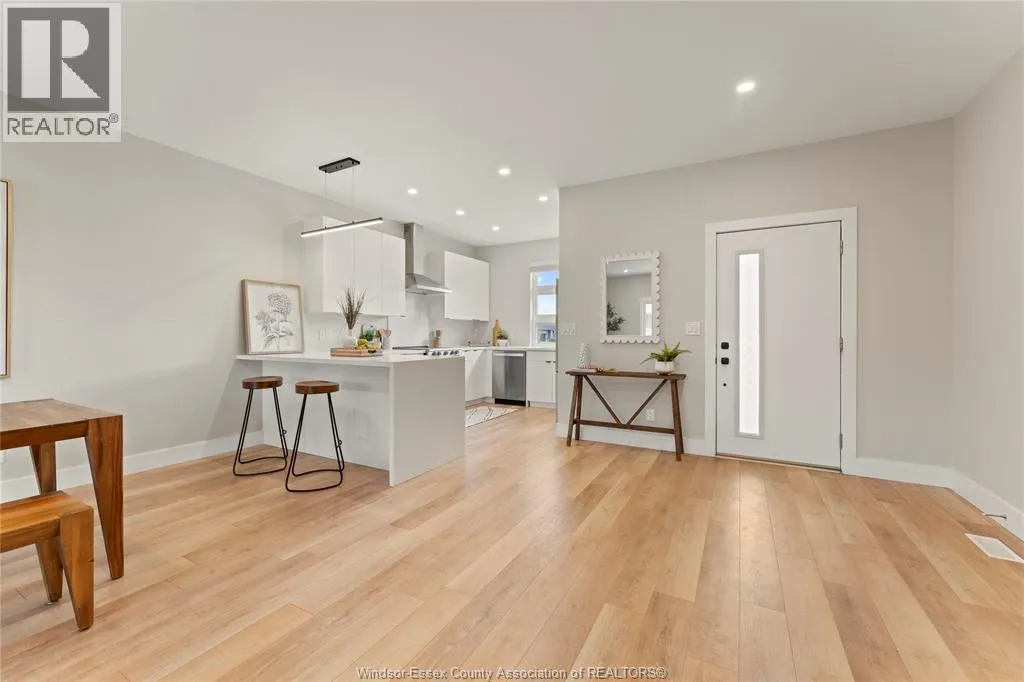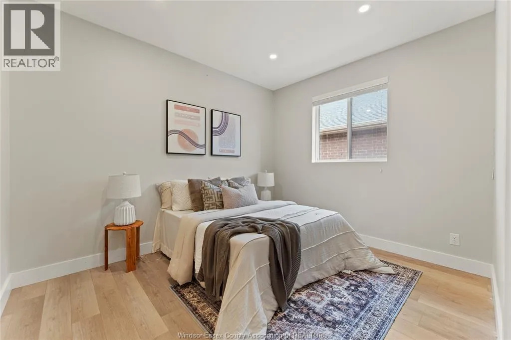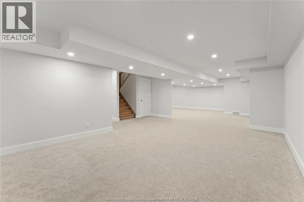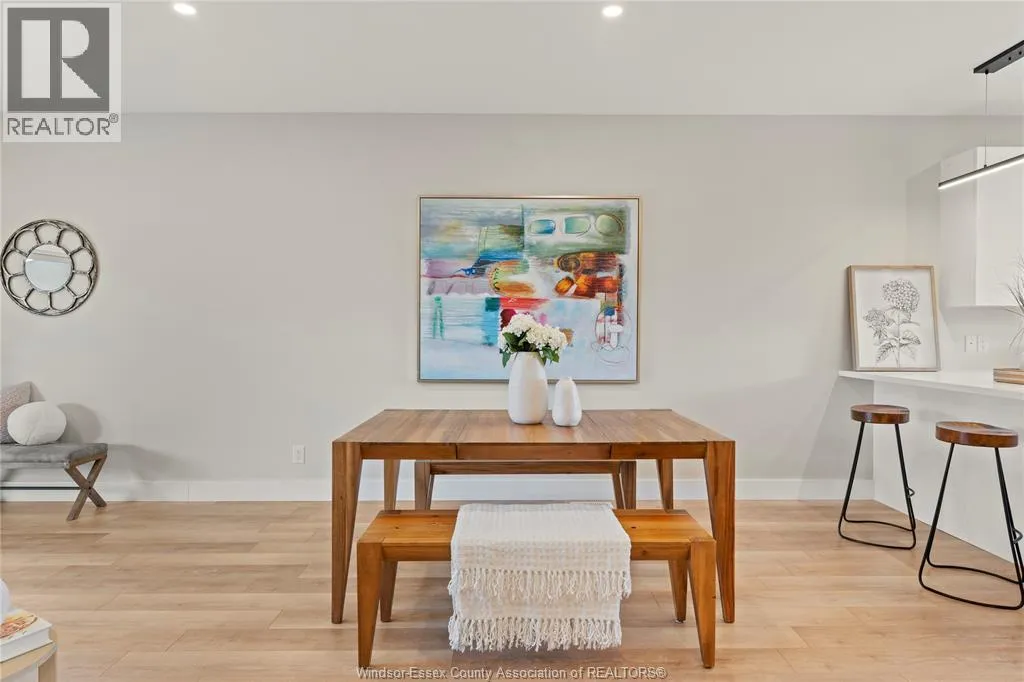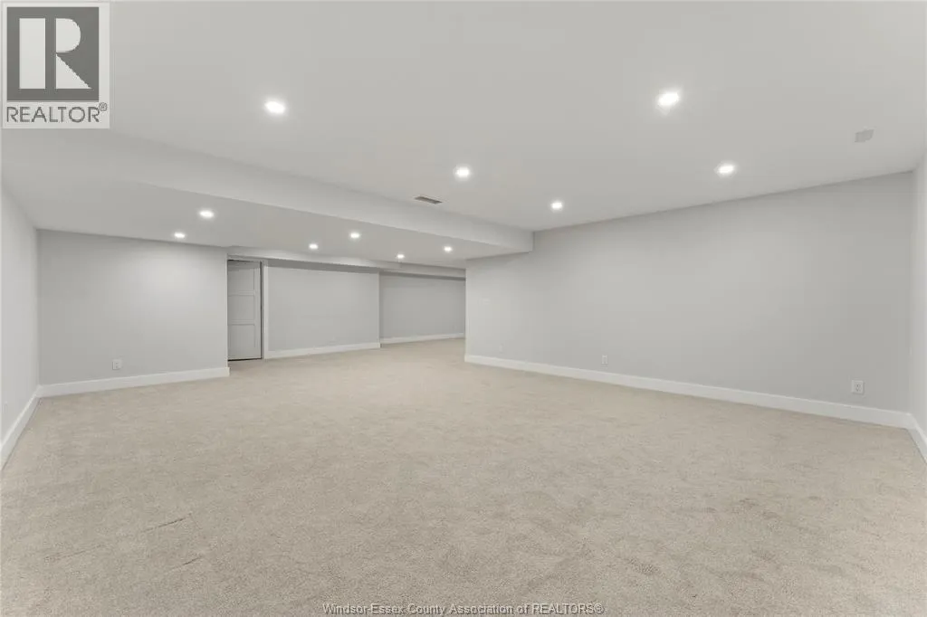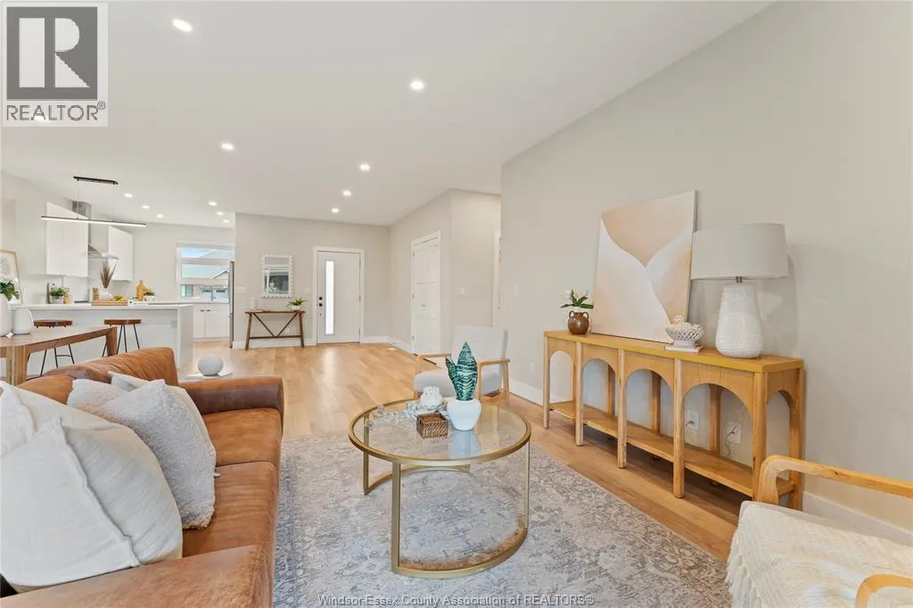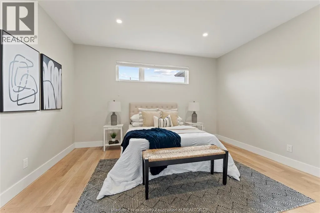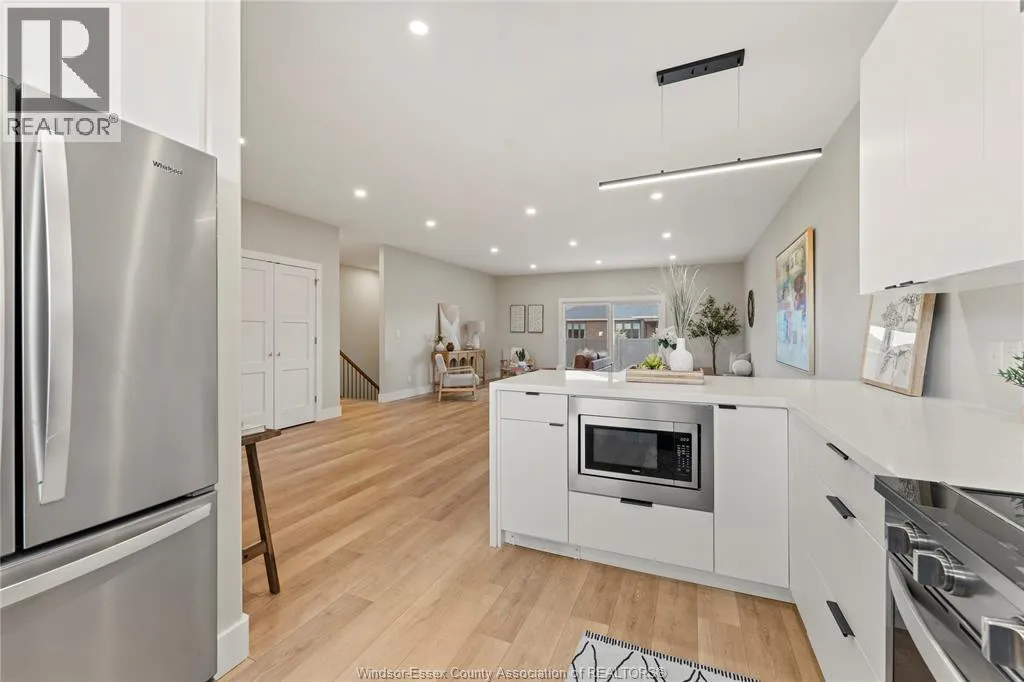 This oversized ranch style semi townhome rests in a prime Kingsville location with upgraded finishes throughout! This 2+1 bedroom, 3 bath contemporary styled design spans approx. 1,550 sqft and is streamlined in a clean and functional retro look. Main floor finishes include porcelain tiles, upgraded wood flooring, curb less walk-in shower, Riobel faucets, clerestory windows, and custom California closets throughout. Open concept kitchen, dining, and family room with warm neutral, nude coloured wood flooring. Fully finished basement with large family & recreation room, spacious bedroom with walk-in California closet, separate 3pc bath and utility. Double car garage leads to organized laundry/mud room. Expansive and fully covered rear patio with outdoor fan, clean modern looking front landscaping, and cement drive. (id:27476)