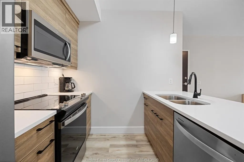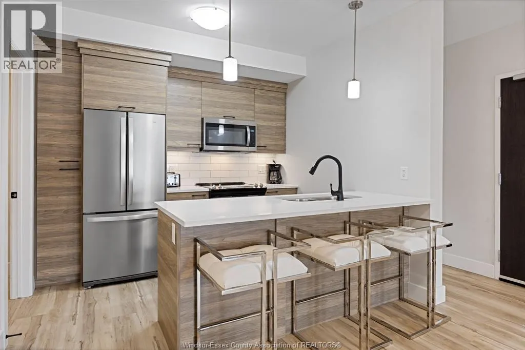 Welcome to KingsTown Commons, with 1 and 2 bedroom units, this development is just steps from Main Street with convenient access to medical buildings, shops, restaurants, grocery stores, gyms, parks, and schools. Take a quick drive to Lakeside Park, beaches, marina and wineries or take a walk around this beautiful little town that has so much to offer. 15 minute drive to Essex or Leamington and a 25 minute drive to Windsor. The only 6 storey building with luxury living in the heart of Kingsville. This suite features in-suite laundry, stunning Whirlpool appliance package, bright Quartz countertops in kitchen and bathrooms, Euro glass/tile showers in ensuite, Under cabinet lighting in kitchen and so much more! Private glass railing balcony. Secure entrance, dual elevator, common room, and the privilege of an on-site property manager. Tenants responsible for own utilities. Application and credit check required. (id:27476)