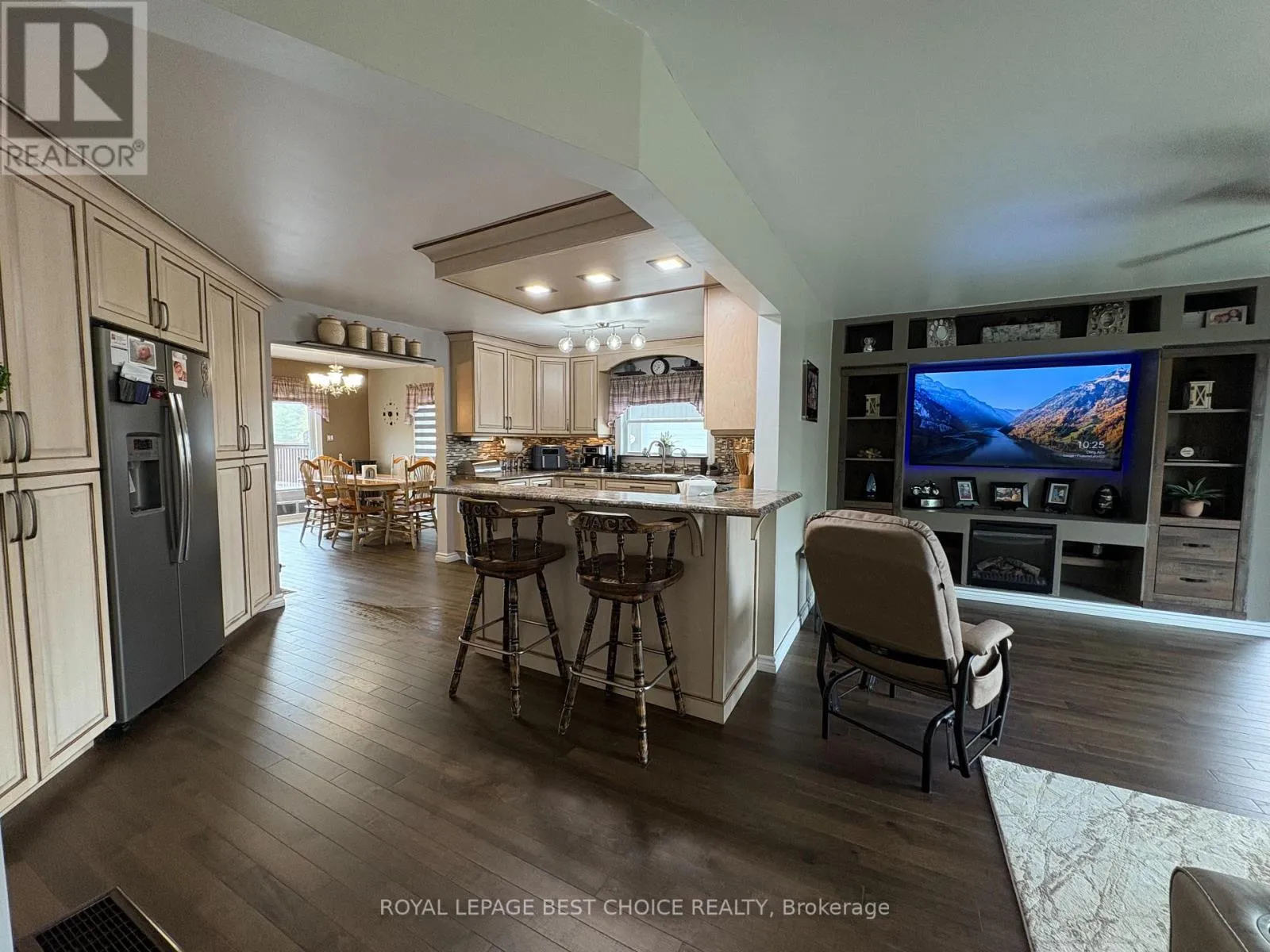 Cross Streets: Matheson St/Helen Ave. ** Directions: Coming into Matachewan on Hwy 66, take a right on Matheson Street North. Property corner of Matheson St and Helen Ave. Welcome to this meticulously maintained and fully upgraded home and garage offering over 1,360 sq ft of spacious living, plus a fantastic, finished basement! Situated on a large corner lot with a paved driveway, this property has been extensively updated, featuring new siding and a metal roof on both the house and the garage this year. The interior highlights the heart of the home in the new kitchen boasting an incredible amount of cupboard space and custom built-ins perfect for the avid cook and entertainer. Unwind in the cozy living room, which features a built-in media centre, bookcase, and a warm electric fireplace. The dining room offers a seamless flow with a walk-out to the deck, leading to a large, fully fenced 36' x 26' patio complete with a fire pit ideal for hosting summer barbecues and gatherings.The fully finished basement adds significant functional space and features a convenient outside entrance for easy access. The large rec room is a great space for games, movies, or hobbies. Work from home comfortably in the office space and enjoy two bonus rooms for guests, a home gym, or extra storage. Enjoy peace of mind with a water softener and water treatment system connected to municipal water. Then step outside to The Ultimate Garage! Prepare to be amazed by the massive 33' x 51' heated garage for car enthusiasts, hobbyists, or anyone needing serious workspace and storage! This incredible space features a hoist, custom bar area for entertaining and an additional storage area to keep your toys out of the elements. (id:27476)