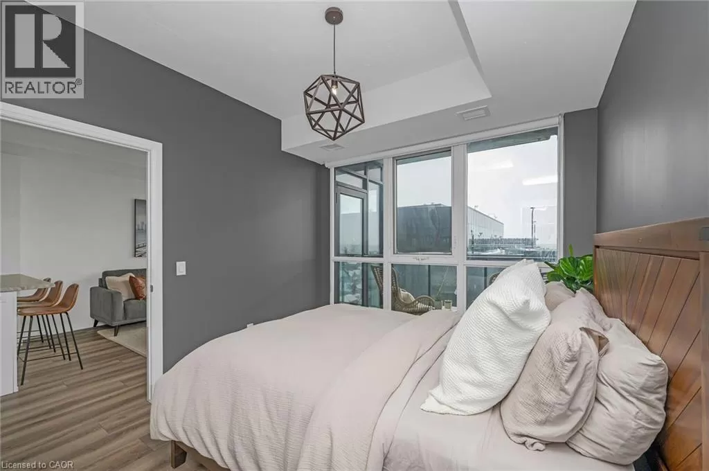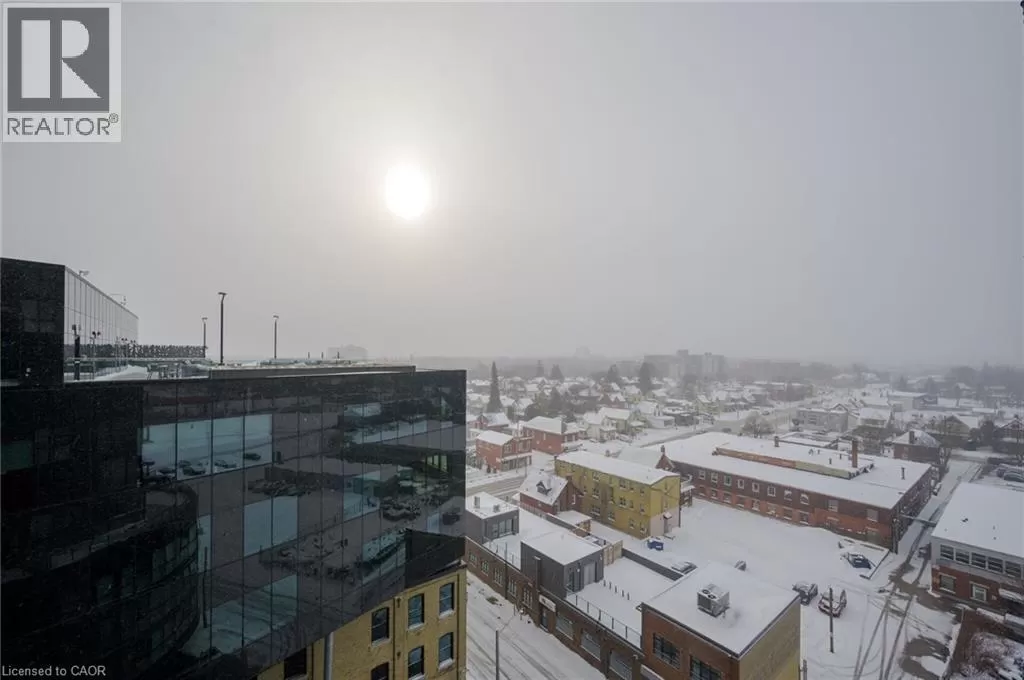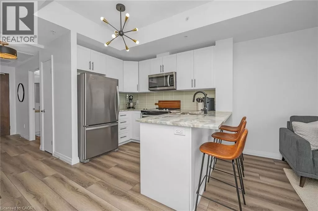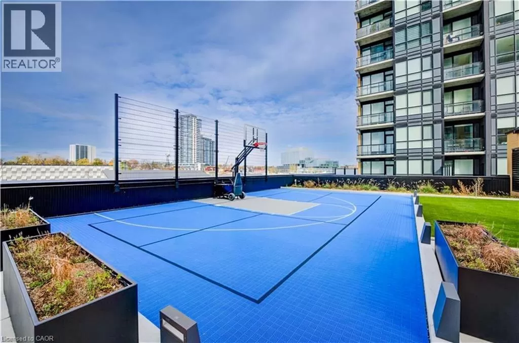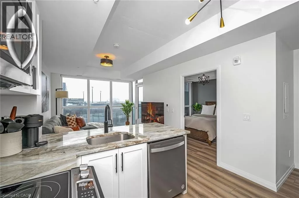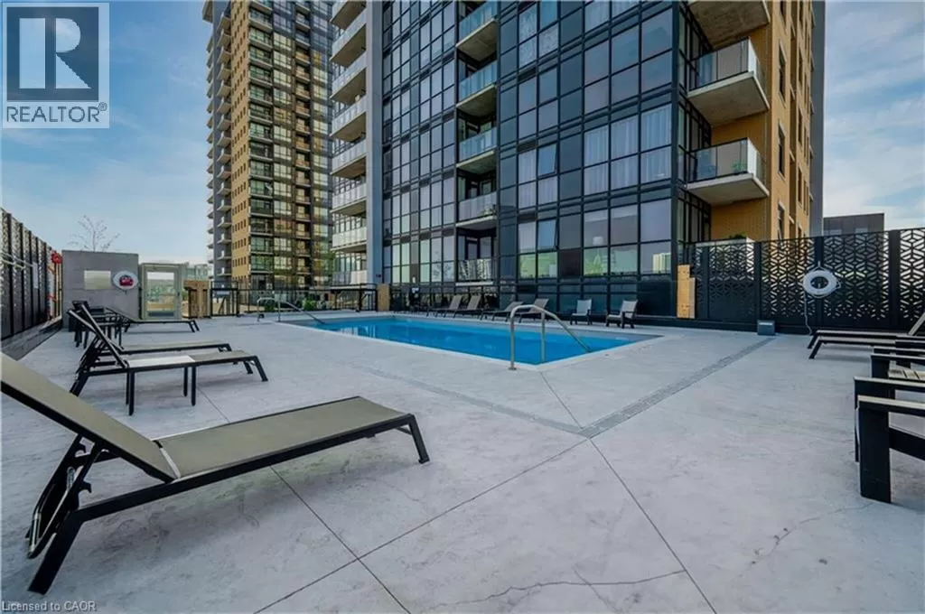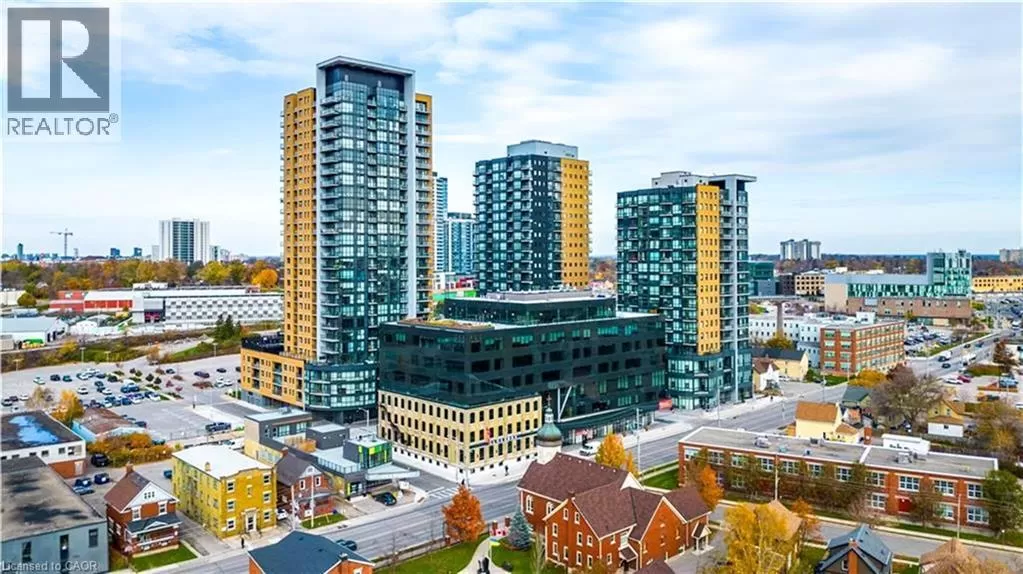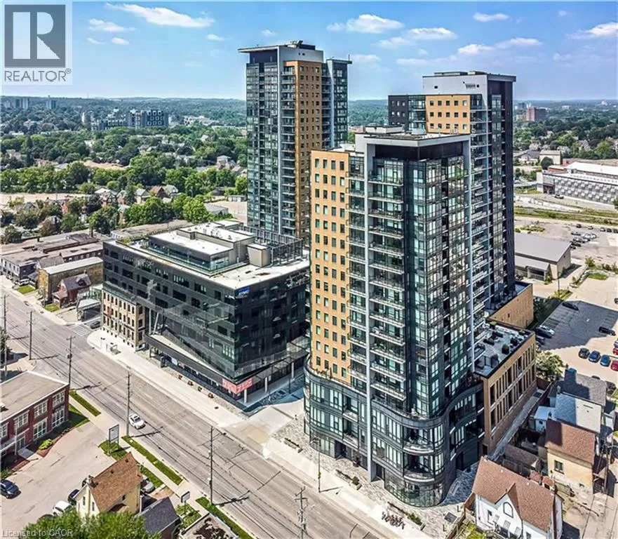 Victoria St S to Garment St Upgraded 1 Bed+ Den, 1 Bath condo with 48 sqâ balcony. This modern open concept unit features a spacious living room with motorized privacy blinds and a bedroom with blackout blinds for extra comfort. The kitchen has 36â upgraded cabinets, premium vinyl flooring, sleek granite countertops, and a stylish glass backsplash. Whirlpool stainless steel appliances, including a mounted freezer, complete the space. The extra large bathroom has a high-pressure chrome shower head for a spa-like experience. Amenities include a pet run, landscaped BBQ terrace, outdoor pool with accessible elevator and shower, fitness room, yoga area, sports court with basketball net, and an entertainment room with a catering kitchen. The condo is within walking distance to Google, Deloitte, KPMG, D2L, Communitech, McMaster School of Medicine, the University of Waterloo School of Pharmacy, Victoria Park, and downtown with its cafes, restaurants, and shops. It also offers easy access to hospitals, ION LRT, bus stops, Go Train, the Expressway, and the future transit hub (id:27476)