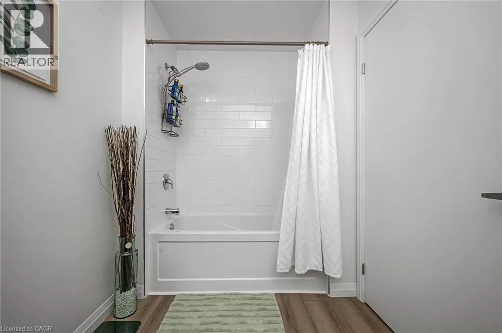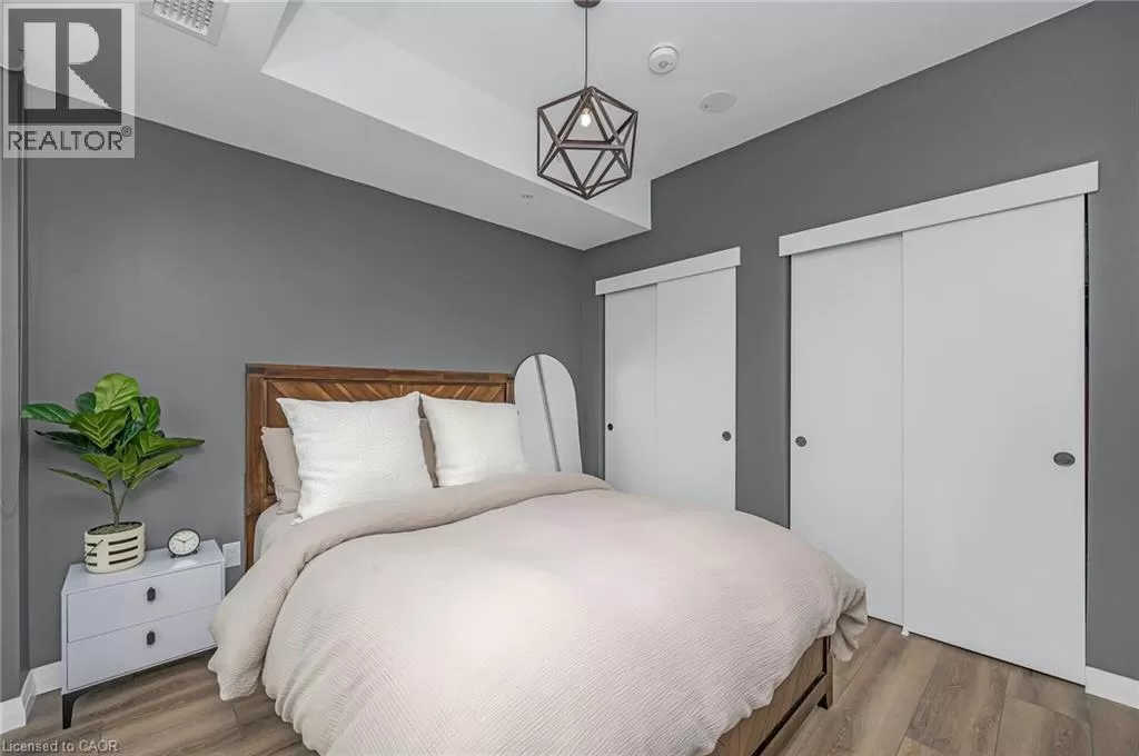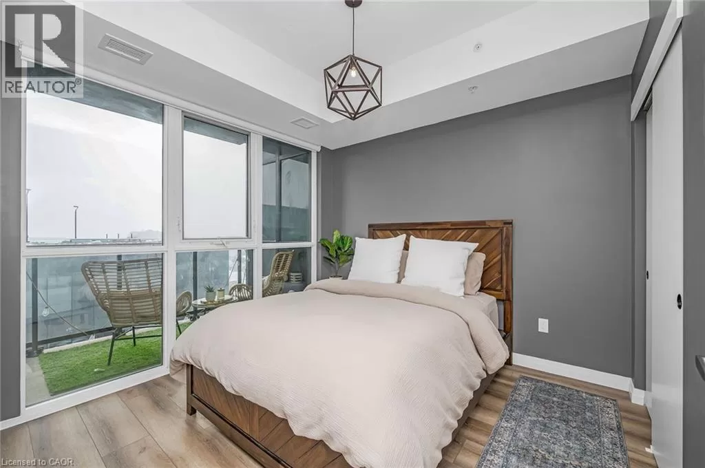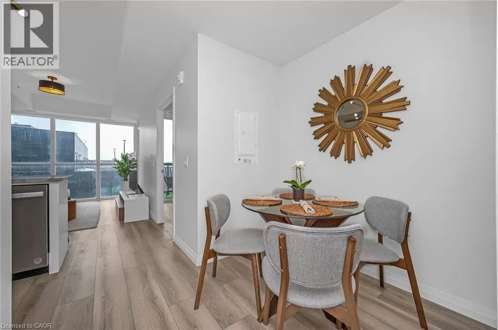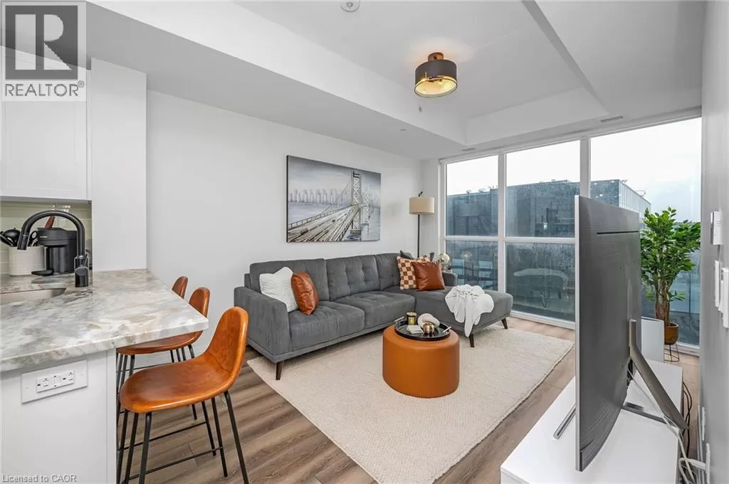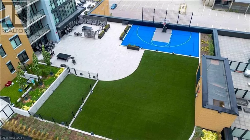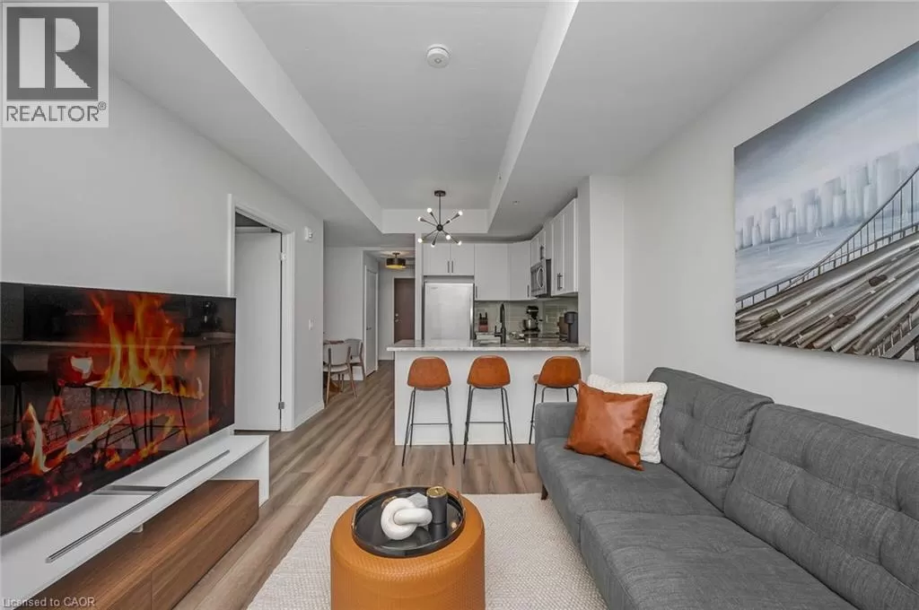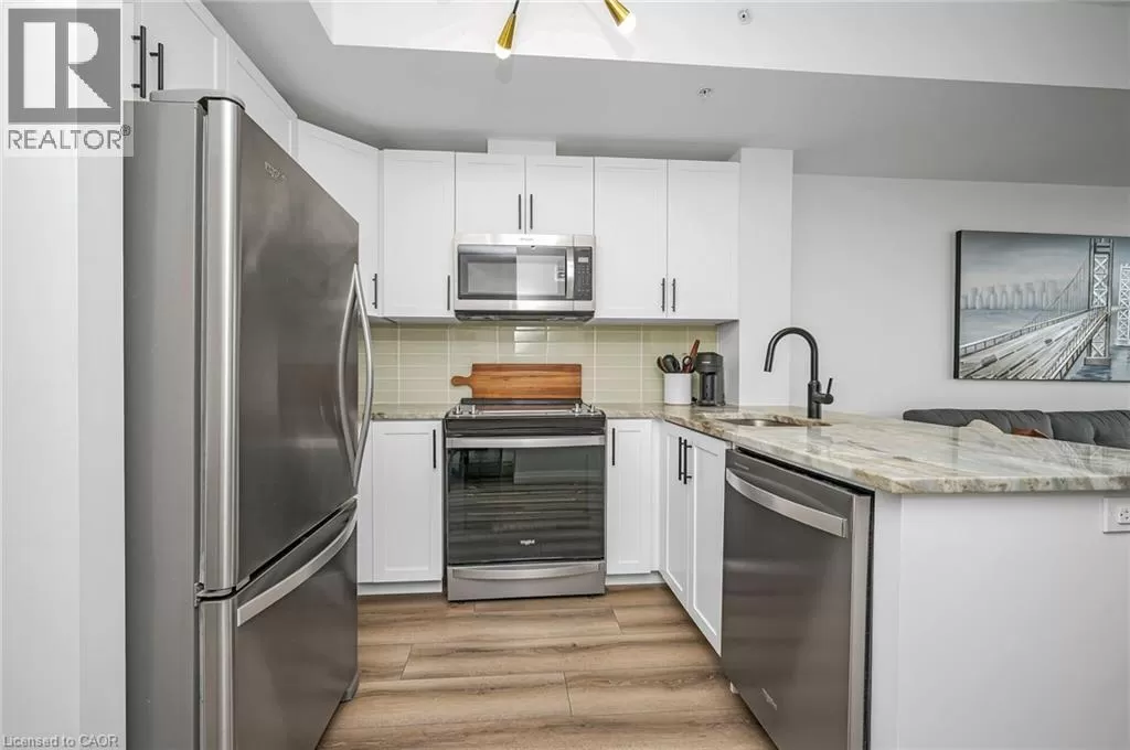 Victoria St S to Garment St Upgraded 1 Bed+ Den, 1 Bath condo with 48 sqâ balcony. This modern open concept unit features a spacious living room with motorized privacy blinds and a bedroom with blackout blinds for extra comfort. The kitchen has 36â upgraded cabinets, premium vinyl flooring, sleek granite countertops, and a stylish glass backsplash. Whirlpool stainless steel appliances, including a mounted freezer, complete the space. The extra large bathroom has a high-pressure chrome shower head for a spa-like experience. Amenities include a pet run, landscaped BBQ terrace, outdoor pool with accessible elevator and shower, fitness room, yoga area, sports court with basketball net, and an entertainment room with a catering kitchen. The condo is within walking distance to Google, Deloitte, KPMG, D2L, Communitech, McMaster School of Medicine, the University of Waterloo School of Pharmacy, Victoria Park, and downtown with its cafes, restaurants, and shops. It also offers easy access to hospitals, ION LRT, bus stops, Go Train, the Expressway, and the future transit hub (id:27476)