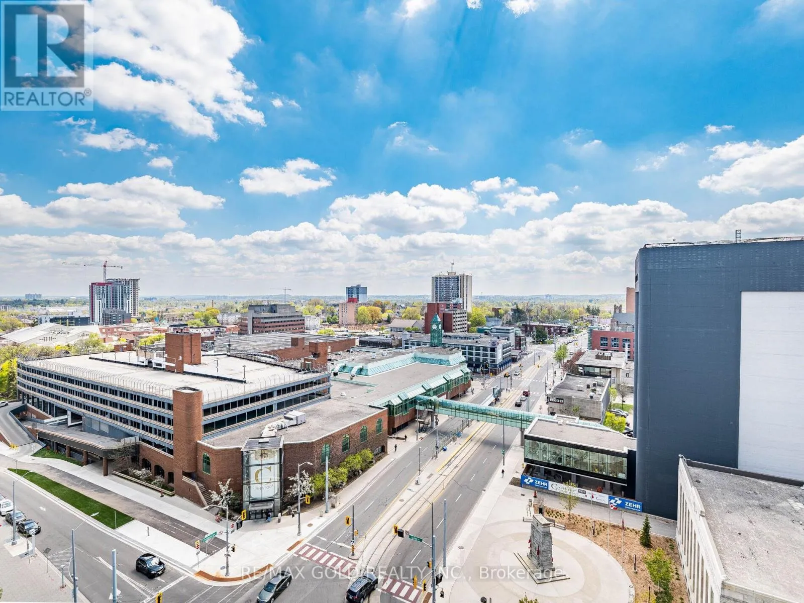 Frederick St / Duke St !! ~ Wow Is Da Only Word To Describe This One (1) Bedroom + Den Condo Apartment Near To Downtown Kitchener , This Condo Unit Is A True Showstopper ! Step Into A Beautifully Designed Unit That Exudes Elegance And Functionality. The Chef's Kitchen, Adorned With Designer Choices, Offers Ample Storage Space, Quartz Counter Tops And Features Stainless Steel Appliances, Making It A Culinary Haven. An Open Concept Living And Dining Area Creates A Modern And Welcoming Atmosphere, With 9-Foot Ceilings And Opens To Balcony . Additional Den Adds More Functionality As Work Home Office Or Additional Space .The Sense Of Space And Grandeur Is Undeniable. The Bedroom Is A Spacious Retreat With Closet And Full Glass Window View Of Downtown An Lots Of Light. A Luxurious 4-Piece Bathroom, Ensuring Comfort And Convenience ! The Unit Comes With One Underground Parking And Locker Room For Additional Storage , This Building Offers Ultimate Convenience !! (id:27476)