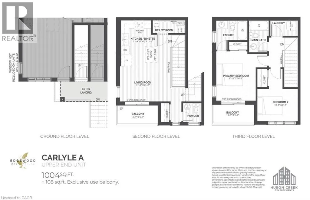 Huron Road to Strasburg Road Welcome to Carlyle A - a stunning multi-level 2-bedroom, 2.5-bathroom stacked townhome-style condo, perfectly blending urban convenience with natural tranquility. Tucked into the serene Brigadoon Woods, this thoughtfully designed home offers a spacious open-concept layout ideal for both relaxing and entertaining. Step inside to discover generous-sized bedrooms, including a primary suite with ample closet space and a private bath. The balconies extend your living space outdoors, offering a peaceful retreat surrounded by mature trees and greenery. Enjoy the best of both worlds â nature at your doorstep and all amenities within easy reach. Located close to top-rated schools, shopping, dining, and with quick access to major highways, this home offers exceptional lifestyle and value. Whether you're a first-time buyer, downsizer, or investor, this beautifully maintained condo is a rare opportunity in a sought-after community. Don't miss it! PLEASE VISIT - (((Sales Centre is located at 35 Trillium Drive, Unit 1 in Huron Creek Developments building - lower level ))) (id:27476)
