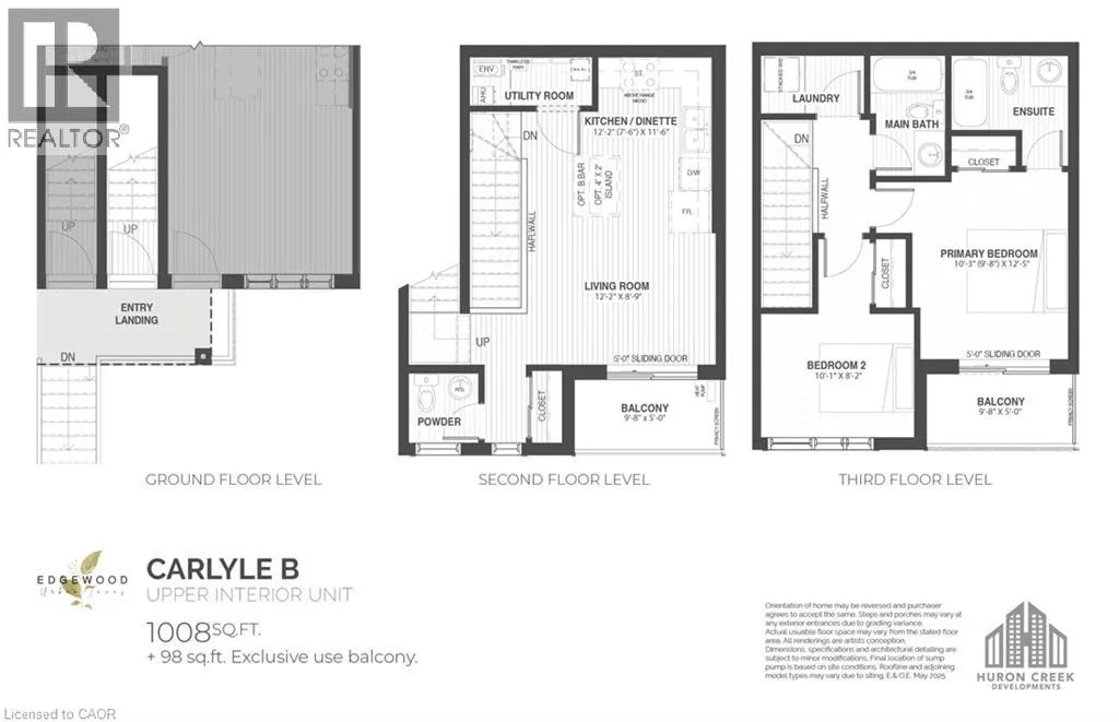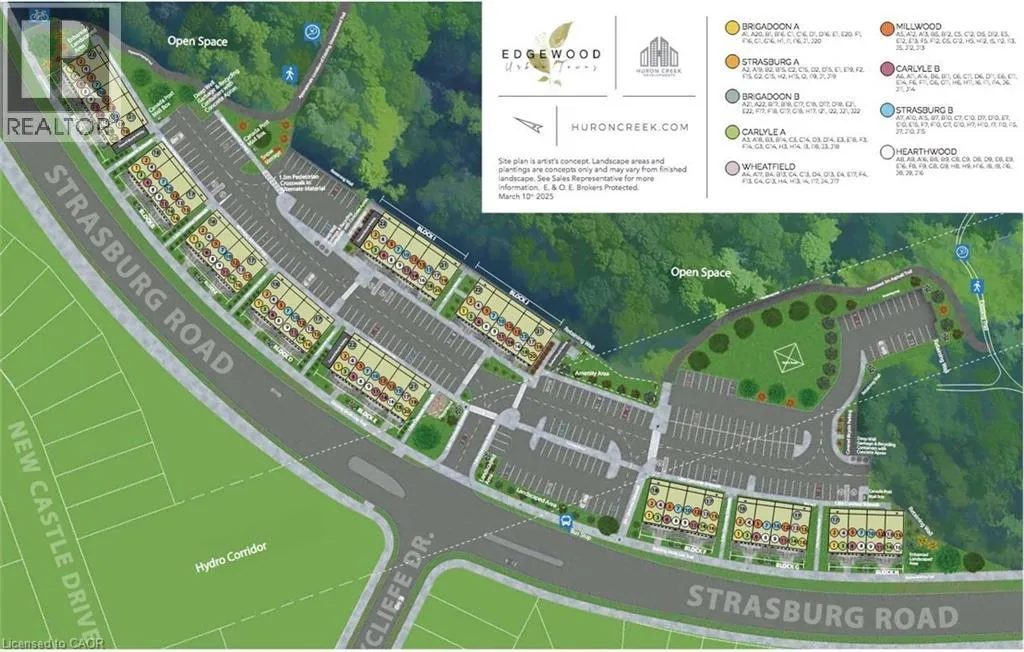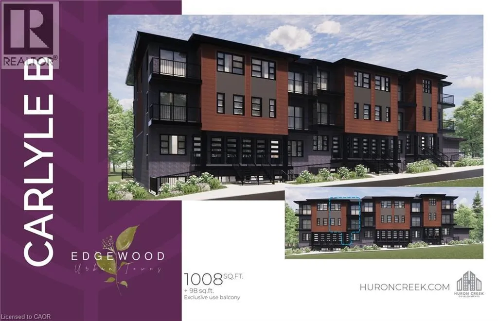 Huron Road to Strasburg Road Welcome to Carlyle B - a stunning 2-bedroom, 2.5-bathroom stacked townhome-style condo, perfectly blending urban convenience with natural tranquility. Tucked into the serene Brigadoon Woods, this thoughtfully designed home offers a spacious open-concept layout ideal for both relaxing and entertaining. Step inside to discover generous-sized bedrooms, including a primary suite with ample closet space and a private bath. The balconies extend your living space outdoors, offering a peaceful retreat surrounded by mature trees and greenery. Enjoy the best of both worlds â nature at your doorstep and all amenities within easy reach. Located close to top-rated schools, shopping, dining, and with quick access to major highways, this home offers exceptional lifestyle and value. Whether you're a first-time buyer, downsizer, or investor, this beautifully maintained condo is a rare opportunity in a sought-after community. Don't miss it! PLEASE VISIT - (((Sales Centre is located at 35 Trillium Drive, Unit 1 in Huron Creek Developments building - lower level ))) (id:27476)