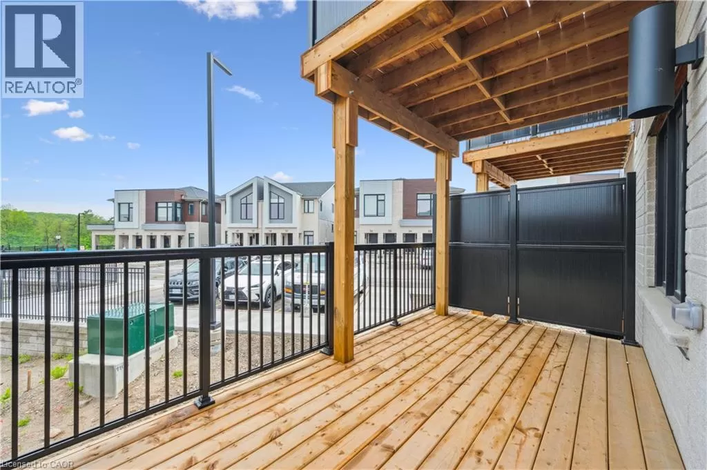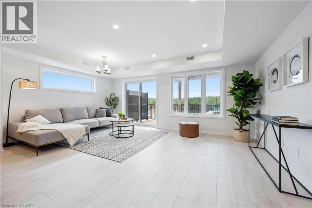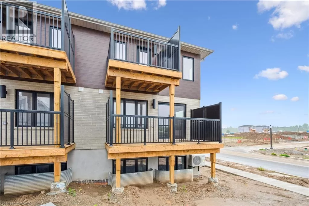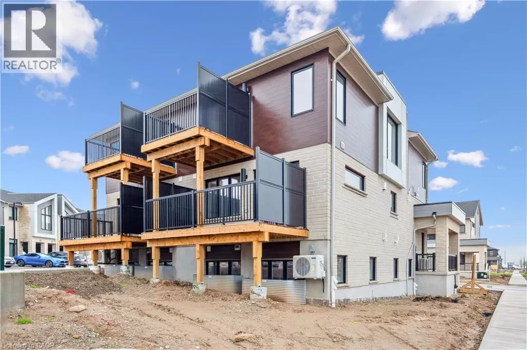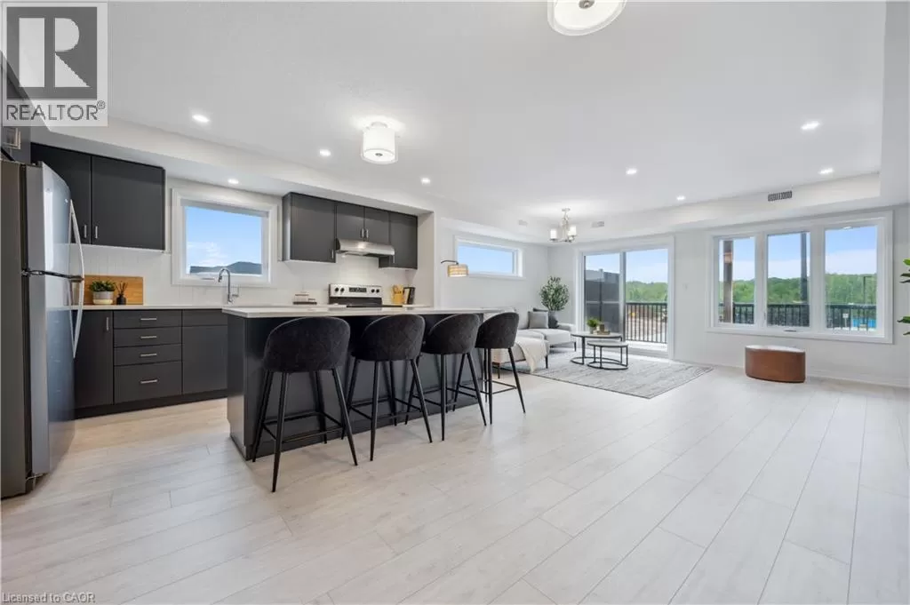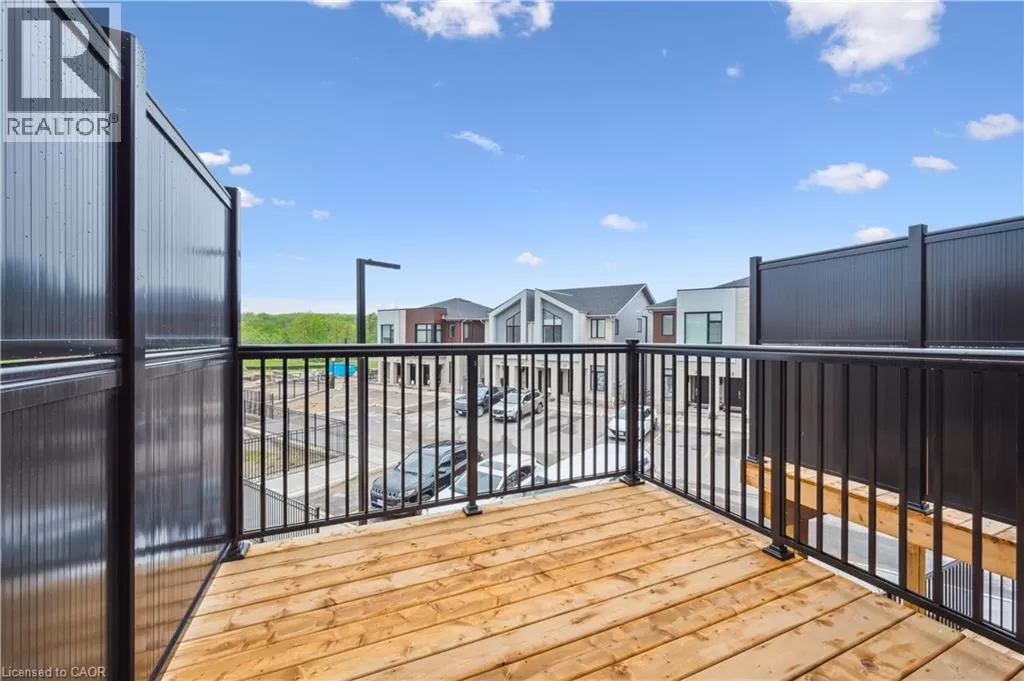 New Dundee Rd to Stauffer Woods Tr Brand new, ready now, and available for a quick closing, this gorgeous 3 bedroom, 2.5 bath condo townhouse is located in sought-after Harvest Park in Doon South. The kitchen is sure to impress with plenty of cabinetry, a large island, quartz countertops, and stainless appliances. The great room is of very generous proportions and sliders from the dining area lead to a spacious deck. On the way to the upper level, you'll love the bonus lounge that is the perfect spot for a family room or home office. Upstairs are 3 bedrooms plus a laundry room. The primary suite features a second, private balcony , a 3 piece bath and lots of closet space. A main 4 piece bath completes this level. One surface parking space. Condo fees include building and grounds maintenance as well as High Speed Internet. This is an excellent location - near Hwy 401 access, Conestoga College and beautiful walking trails. SALES CENTRE LOCATED at 158 Shaded Cr Dr in Kitchener - open Monday to Wednesday, 4-7 pm and Saturday, Sunday 1-5 pm. (id:27476)