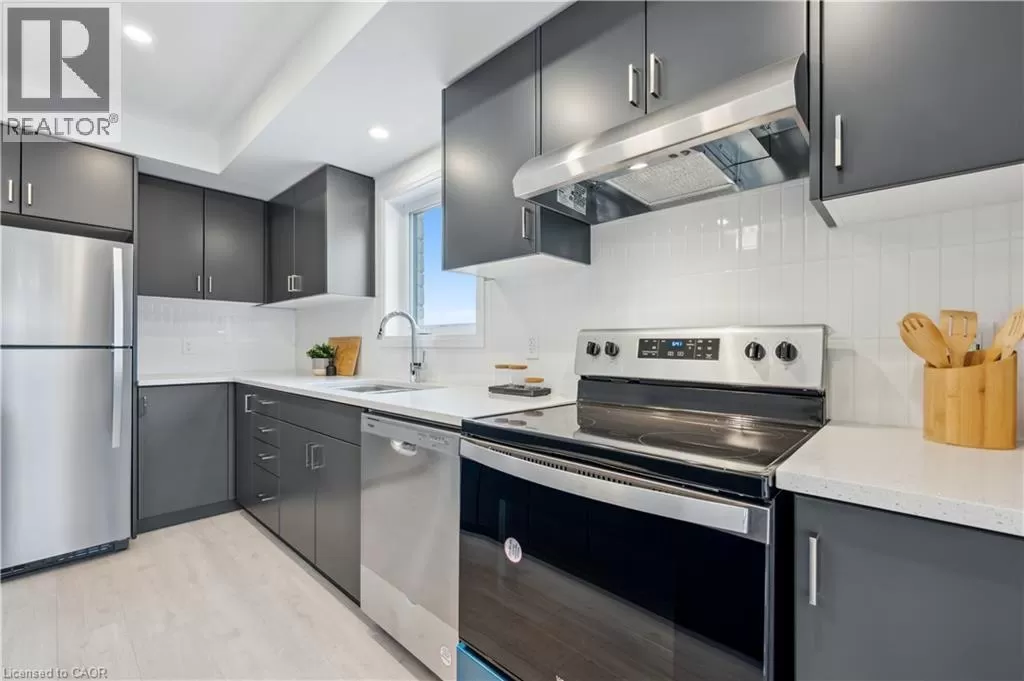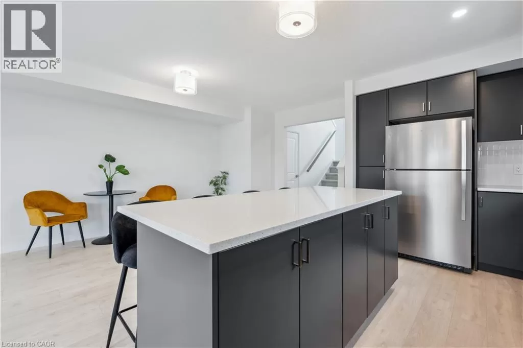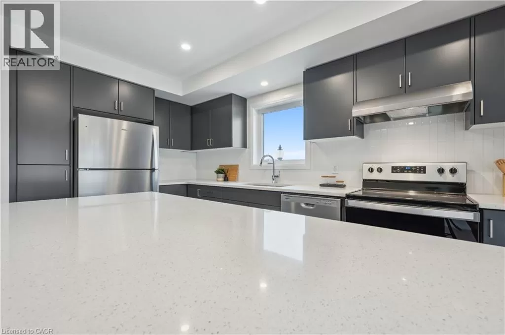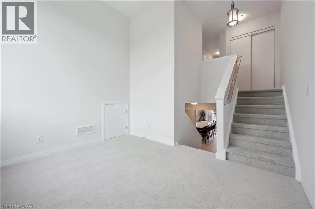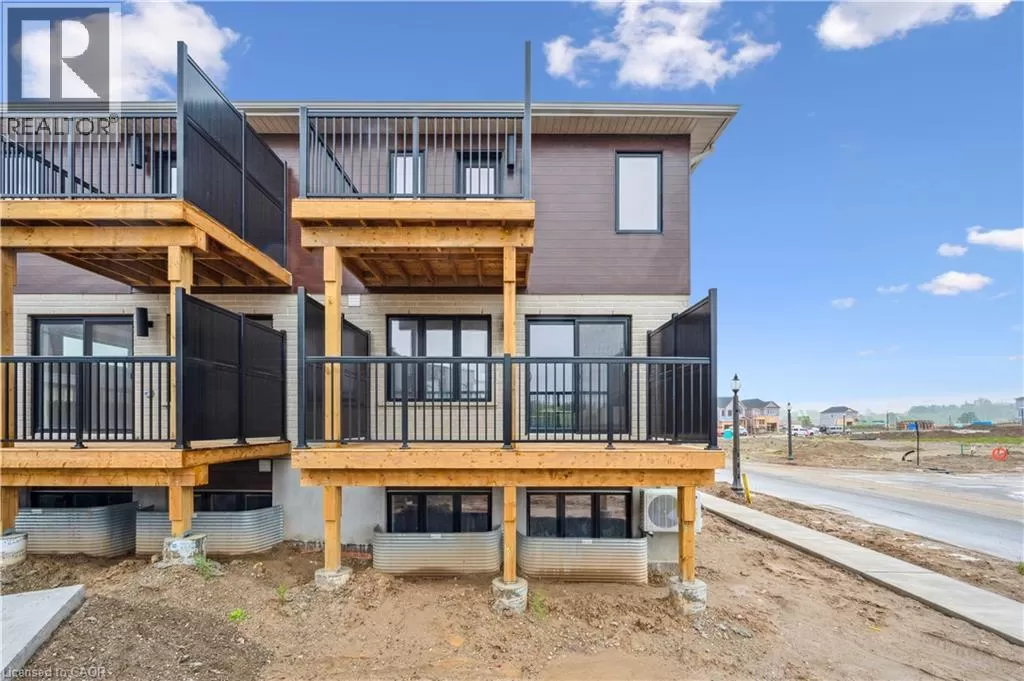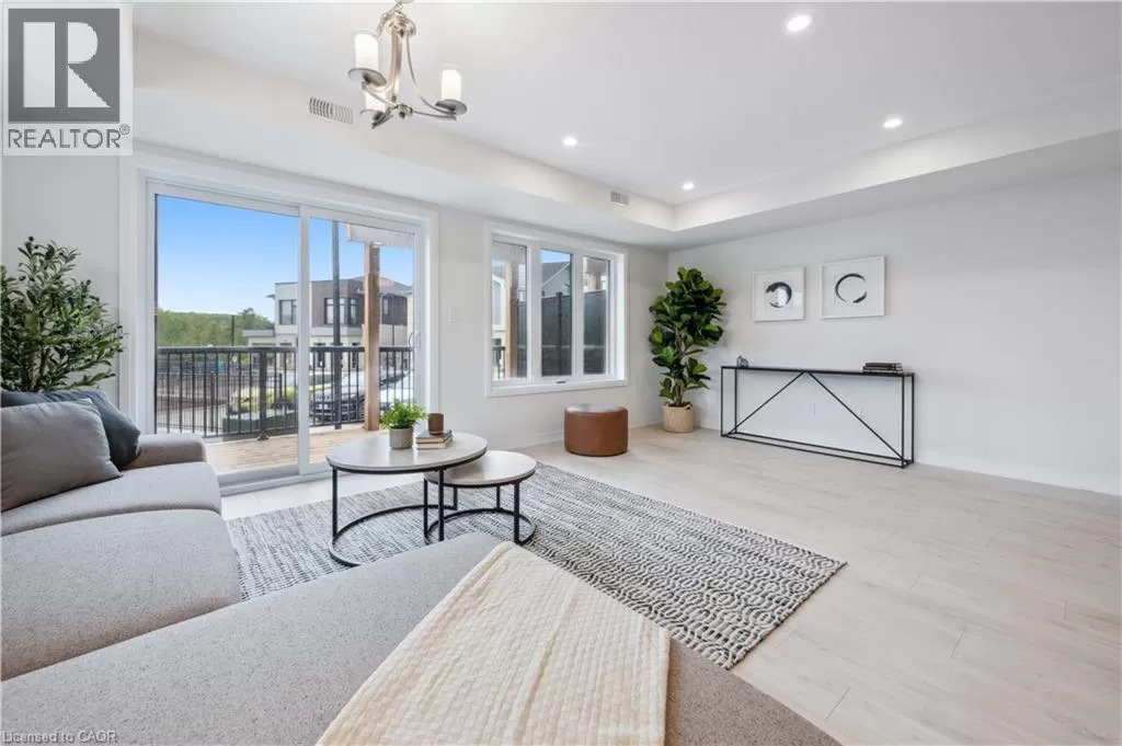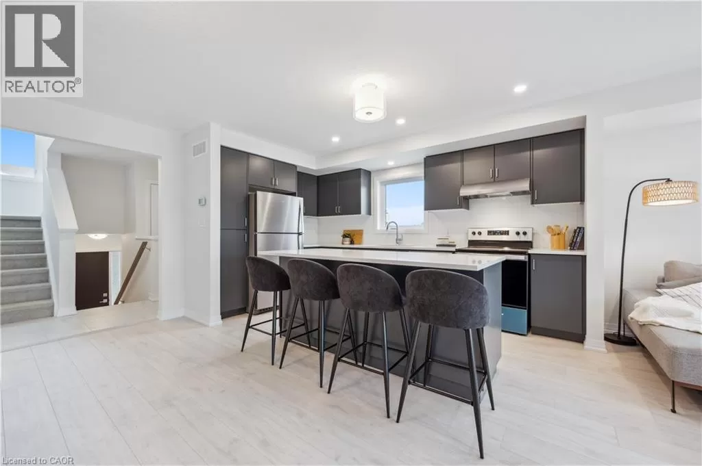 New Dundee Rd to Stauffer Woods Tr Brand new, ready now, and available for a quick closing, this gorgeous 3 bedroom, 2.5 bath condo townhouse is located in sought-after Harvest Park in Doon South. The kitchen is sure to impress with plenty of cabinetry, a large island, quartz countertops, and stainless appliances. The great room is of very generous proportions and sliders from the dining area lead to a spacious deck. On the way to the upper level, you'll love the bonus lounge that is the perfect spot for a family room or home office. Upstairs are 3 bedrooms plus a laundry room. The primary suite features a second, private balcony , a 3 piece bath and lots of closet space. A main 4 piece bath completes this level. One surface parking space. Condo fees include building and grounds maintenance as well as High Speed Internet. This is an excellent location - near Hwy 401 access, Conestoga College and beautiful walking trails. SALES CENTRE LOCATED at 158 Shaded Cr Dr in Kitchener - open Monday to Wednesday, 4-7 pm and Saturday, Sunday 1-5 pm. (id:27476)