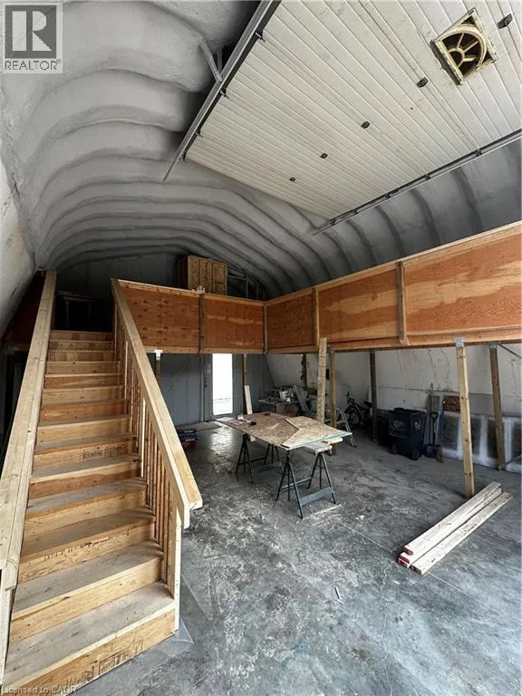 Bridgeport Rd E to Lancaster St W Discover this well-maintained Quonset-style building offering 1,200 sq ft of flexible space in Kitchener - ideal for trades, workshop use, or general business storage. The layout includes 900 sq ft on the main level, plus a 300 sq ft mezzanine, providing ample room for various operational needs. 1 Bay door - 14 ft high (13.5 ft clearance) 10 ft width. The landlord is open to customizing the space for the right tenant. Planned upgrades include a 2-piece bathroom on the mezzanine level, a gas heater, and a bay door chain mechanism. Features include: Spray foam insulation, Concrete flooring, hydro service. Parking for up to 3 vehicles (2 in driveway, 1 inside) with possible additional space available. This is a great opportunity for a small business owner, contractor, or anyone in need of a functional and efficient workspace. (id:27476)