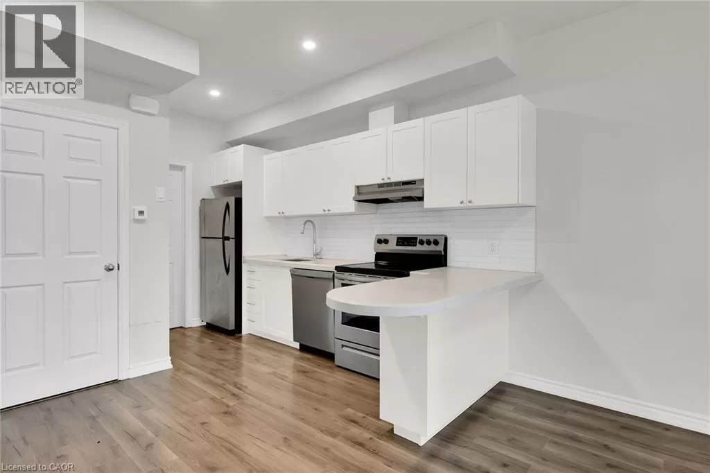 Highland Rd East to Heiman Modern Comfort Meets Style in This 3-Bedroom Townhouse Condo in Kitchener. Step into contemporary living with this beautifully designed 3-bedroom townhouse condo, built less than 5 years ago. The open-concept layout is perfect for both everyday living and entertaining, featuring sleek laminate flooring, quartz countertops, stainless steel appliances, and a convenient breakfast peninsula. Located in a desirable Kitchener neighbourhood, youâll enjoy close proximity to shopping, parks, schools, and major highwaysâideal for commuters and families alike. This home also offers designated parking, in-unit laundry, and low-maintenance living with landscaping, snow removal, and garbage services all included. With access to community amenities and everything you need just minutes away, this move-in-ready condo is the perfect blend of comfort, style, and convenience. Donât miss your chance to make it yours! (id:27476)