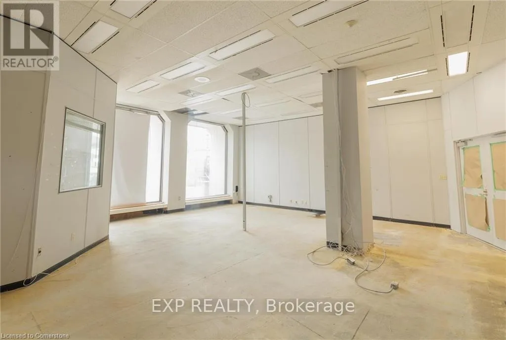 Cross Streets: Ontario, Queen St N. ** Directions: On Duke St between Queen and Ontario St N. Small space. Big potential. This 900 sq. ft. commercial unit is perfectly placed in the lobby of a newly converted residential tower in the heart of Downtown Kitchener steps from the LRT and surrounded by energy. With 162 residential units onsite and 26,000 sq. ft. of nearby retail including a movie theatre, restaurant, and salon, this space offers constant foot traffic and exposure. Zoned SGA-4 (19H), its ideal for a cozy cocktail bar, curated boutique, yoga or Pilates studio, or any concept craving character and connection. With a clean shell ready for your design, all that's missing is your vision. This is your opportunity to create something special in one of the city's most dynamic neighbourhood's. (id:27476)