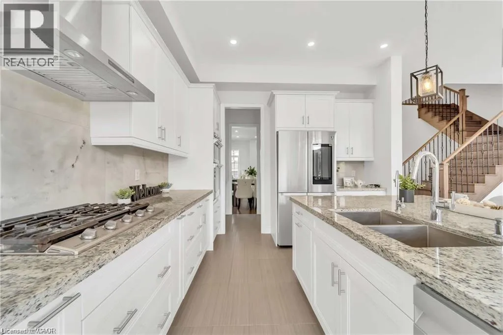 Appleridge To Forest Creek dr Built in November 2021 by renowned Fernbrook Homes, this exceptional property blends luxury, function, and modern elegance. Situated on a premium 50-foot lot and still under Tarion warranty, it offers long-term value and peace of mind. Step inside to 10-ft ceilings on the main floor and 9-ft ceilings throughout the upper levels, all finished with sleek, contemporary touches that elevate the entire space. The layout is designed for both family living and entertaining, with separate living and family rooms, plus dedicated dining and breakfast areas. The gourmet kitchen is a chefâs dream, equipped with top-tier appliances, including a built-in cooktop, wall oven/microwave, custom hood fan, and upgraded countertops. The oversized islandâcomplete with storage on all sidesâserves as the heart of the home, while custom features like deep upper cabinets, an extended pantry, spice pull-outs, and a pull-out recycling center add both style and function. Upstairs, four spacious bedrooms, each large enough to accommodate a king-sized bed, provide plenty of room for relaxation. Three luxurious bathrooms, including a spa-like primary ensuite with glass shower and soaking tub, offer a serene retreat. The convenient upstairs laundry room makes everyday tasks easier. The expansive, look-out unfinished basement with larger windows and 9-ft ceilings is ready for your personal touch, with a 3-piece rough-in for a future bath. Whether you envision a media room, gym, or additional living space, the possibilities are endless. Located just minutes from JW Gerth Elementary School and scenic walking trails, this exceptional home offers the perfect combination of luxury, convenience, and modern design. Don't miss the opportunity to make this extraordinary property your own! (id:27476)