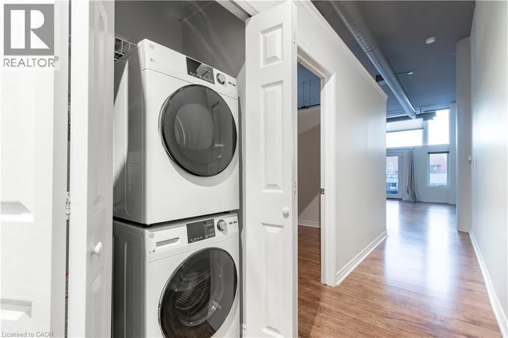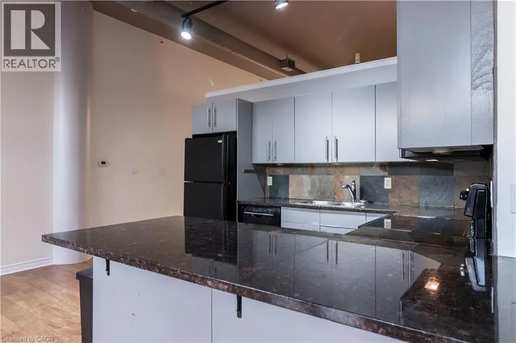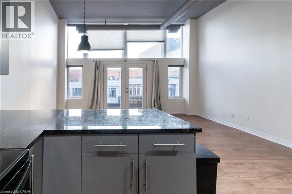 Corner of King and Water Streets AVAILABLE IMMEDIATELY! FRESHLY PAINTED! INCLUDES TWO PARKING SPACES! Welcome to this modern and trendy end unit loft, prominently facing King Street West and within walking distance to all the vibrant downtown amenities and the LRT! This exquisite loft is designed to impress with its soaring 12-foot ceilings, exuding character through its classic hardwood flooring, contemporary light fixtures, and exposed pipes. The open-concept living space is an inviting haven, filled with abundant natural light streaming in from the expansive windows and Juliette balcony. The spacious and functional kitchen is a chefâs delight, featuring sleek granite counters, built-in appliances, and a convenient breakfast bar. This exceptional unit offers two generously-sized bedrooms, including a master suite that boasts a luxurious 4-piece ensuite complete with a Jacuzzi tub. Additionally, there is a modern 4-piece bathroom and stackable laundry for your convenience. Ample storage solutions are seamlessly integrated throughout the loft, ensuring a clutter-free living environment. Located just a few minutes from the scenic Victoria Park and a short walk east to the GO Station, this unit provides the perfect balance of urban convenience and serene park-side living. Available for move-in on and after September 5th this DTK Loft promises a lifestyle of comfort, style, and unparalleled convenience. Embrace the opportunity to make this exceptional loft your new home! (id:27476)