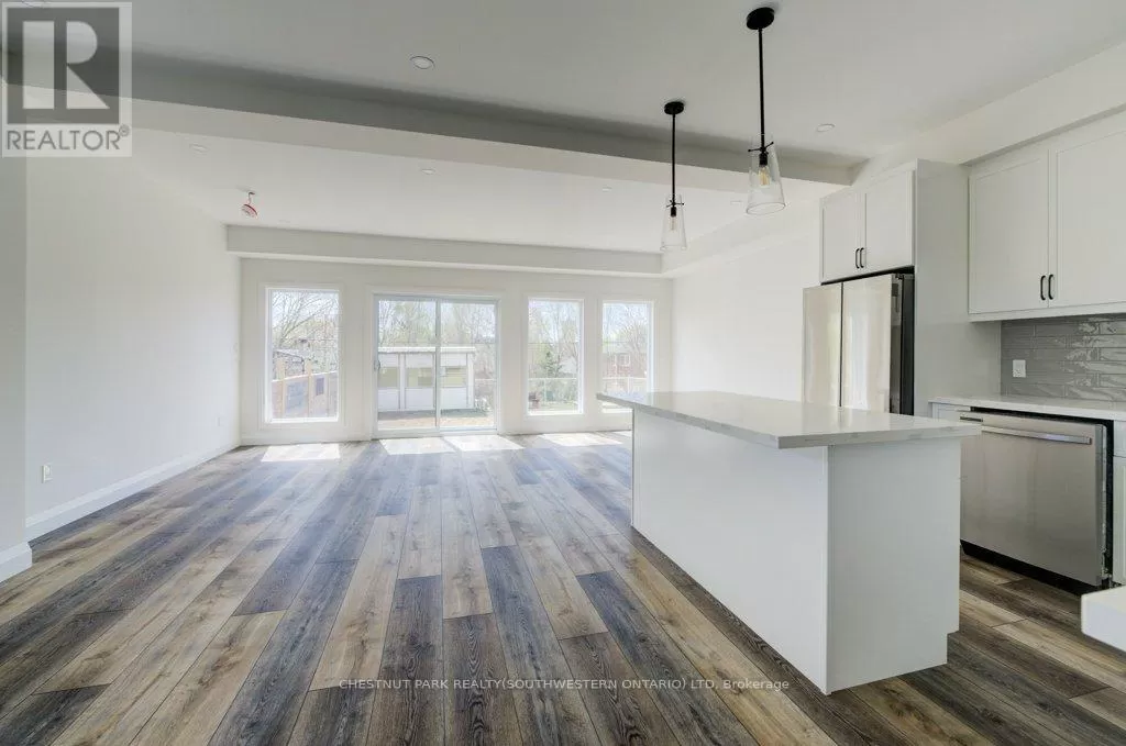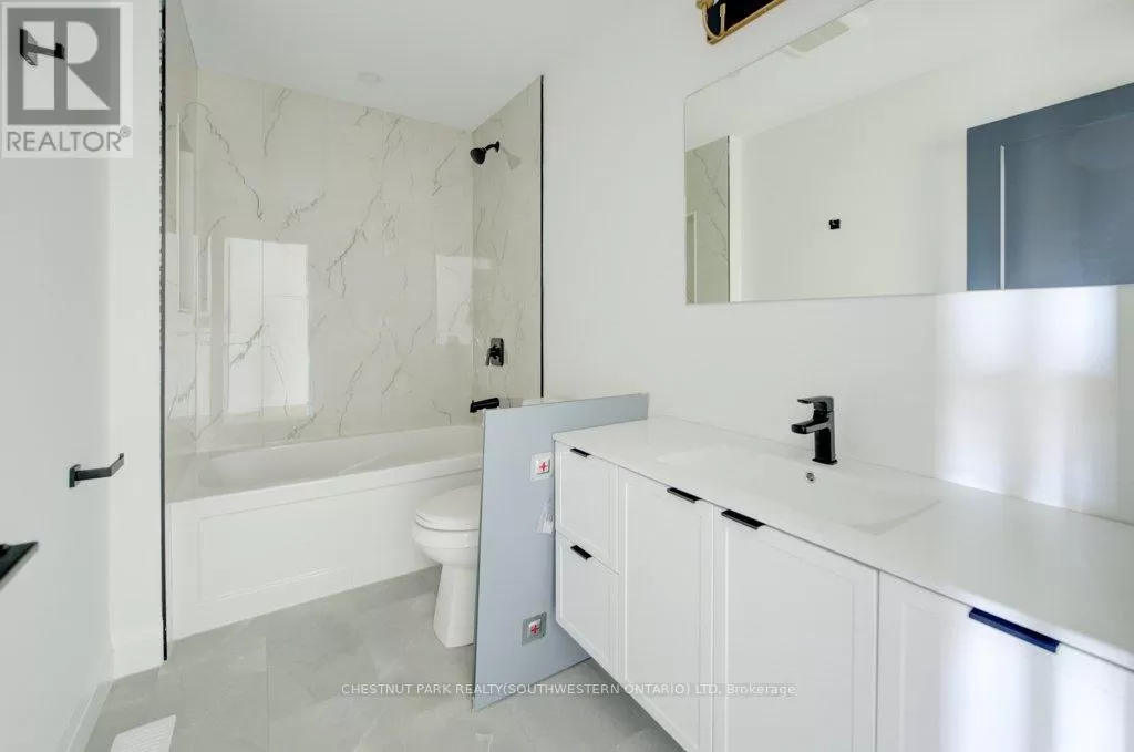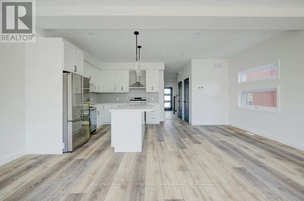Cross Streets: Margaret Ave & Guelph. ** Directions: Margaret to Guelph or Lancaster to Guelph. Experience elevated living in this newly built semi-detached home, ideally located in one of Kitcheners most walkable and vibrant neighborhoods. Designed with modern lifestyles in mind, this beautifully appointed residence features three generous bedrooms and three elegant bathrooms, blending style and functionality throughout. The bright and open main floor is perfect for entertaining, highlighted by a striking wall of floor-to-ceiling windows and sliding doors that fill the space with natural light and provide seamless access to the backyard. The sleek, contemporary kitchen boasts high-quality finishes, premium appliances, and a smart layout that flows effortlessly into the living and dining areas. A chic two-piece powder room adds convenience on the main level. Upstairs, the serene primary suite offers a private retreat with its own balcony, a spa-inspired ensuite with double sinks and a walk-in shower, and generous closet space. Two additional bedrooms, a second full bathroom, and a full laundry room complete the upper level, offering comfort and practicality for everyday living. The unfinished basement, with impressive 9-foot ceilings, presents exciting potentialwhether as a home gym, office, media room, or future in-law suite. Just minutes from downtown Kitchener and steps to the LRT, expressway, transit, parks, and everyday amenities, this home delivers the perfect balance of luxury and location. This is your opportunity to own a truly exceptional home in the heart of Kitchener. (id:27476)