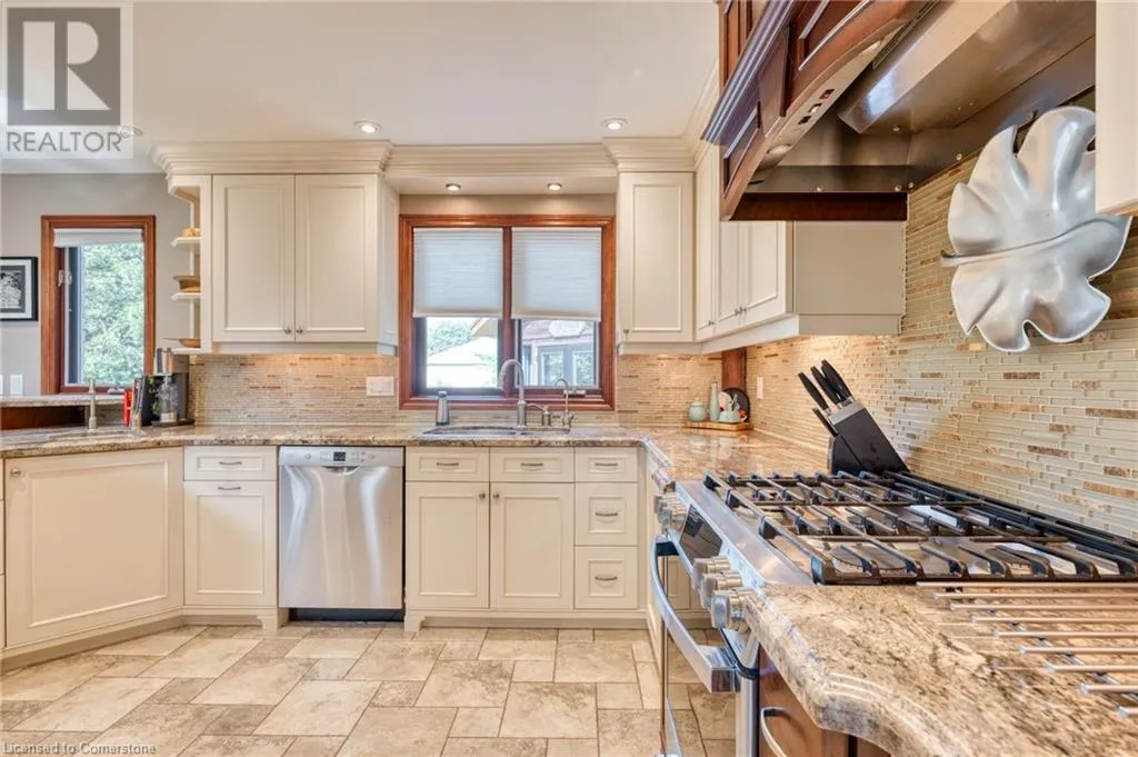 SPORTSWORLD DRIVE OR KING ST TO BAXTER TO PIONEER TOWER RD TO MARQUETTE DR. Welcome to 15 Marquette Drive, in Kitchener, ON. Looking to own a large 0.70 Acres in one of Kitchener's most sought-after neighbourhoods? Are you looking for a massive 1789 sqft detached shop with 10ft x 12ft tall bay doors, a 100amp service (120v and 220v), and a separate gas furnace? Maybe you are looking for a backyard with room to grow, invest, and enjoy privacy with a 12 x 12 fully insulated sunroom. 15 Marquette is the perfect home for you if you're looking for over 6 garage spaces, ample storage, and a well-maintained home that you can move right into. Enjoy over 4,500sqft of total living space, a custom-built kitchen, large dining room and 4 large bedrooms. Upstairs, take advantage of recently renovated bathrooms with glass showers, new hardwood floors, and access to a second-storey balcony to enjoy your morning coffee or evening beverages. 15 Marquette Drive is perfect for entertaining with a variety of porches, a four-season sunroom, and a basement to host with a secret bar cabinet. Enjoy a sauna, separate entrance and the list can continue on.... The following upgrades have been completed. Roof (2015), New PVC Flat Roof (2025), Furnace and AC (2015), Driveway (2021), Garage Doors (2017), New Well (2010), Septic was pumped in 2023. RSA. (id:27476)