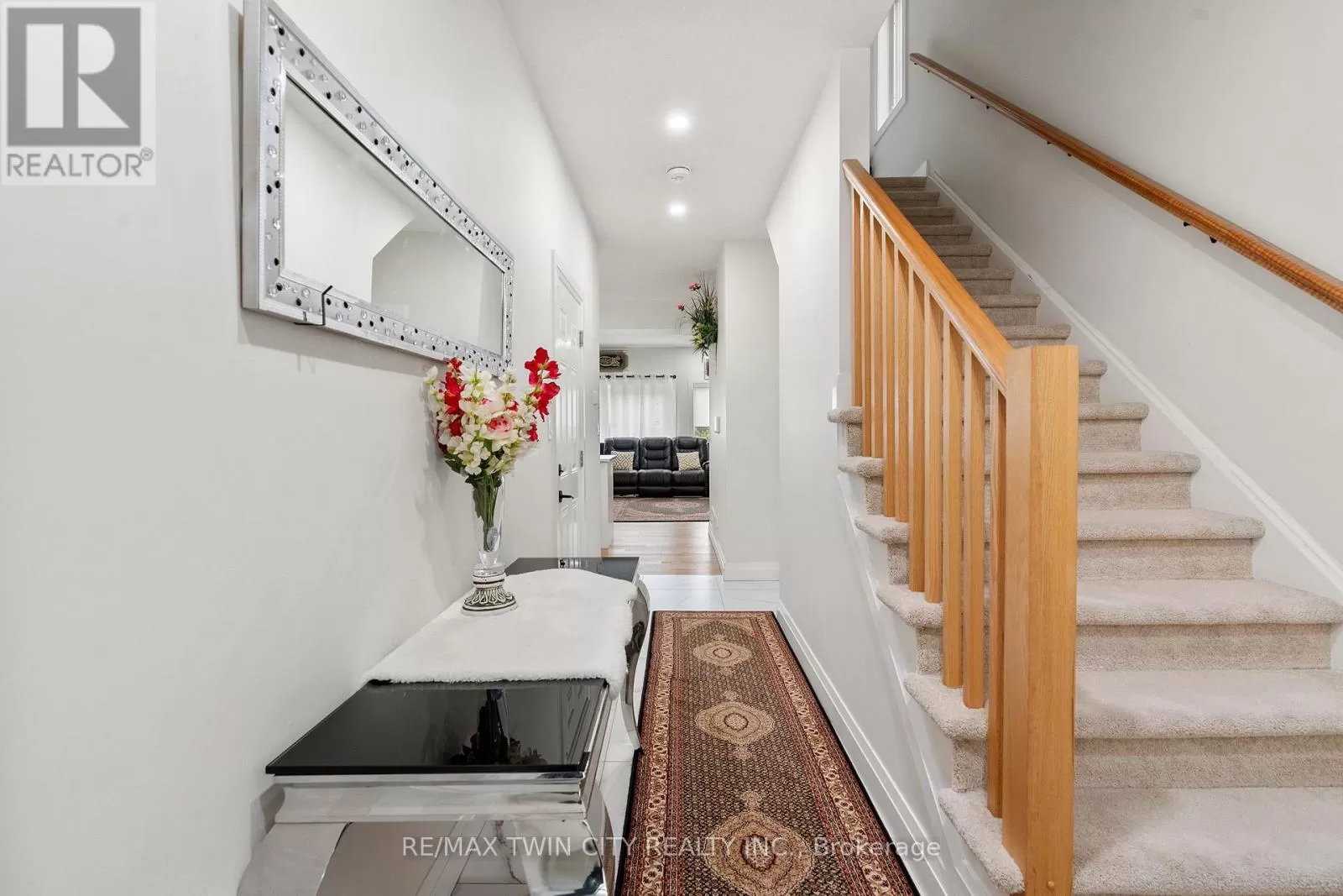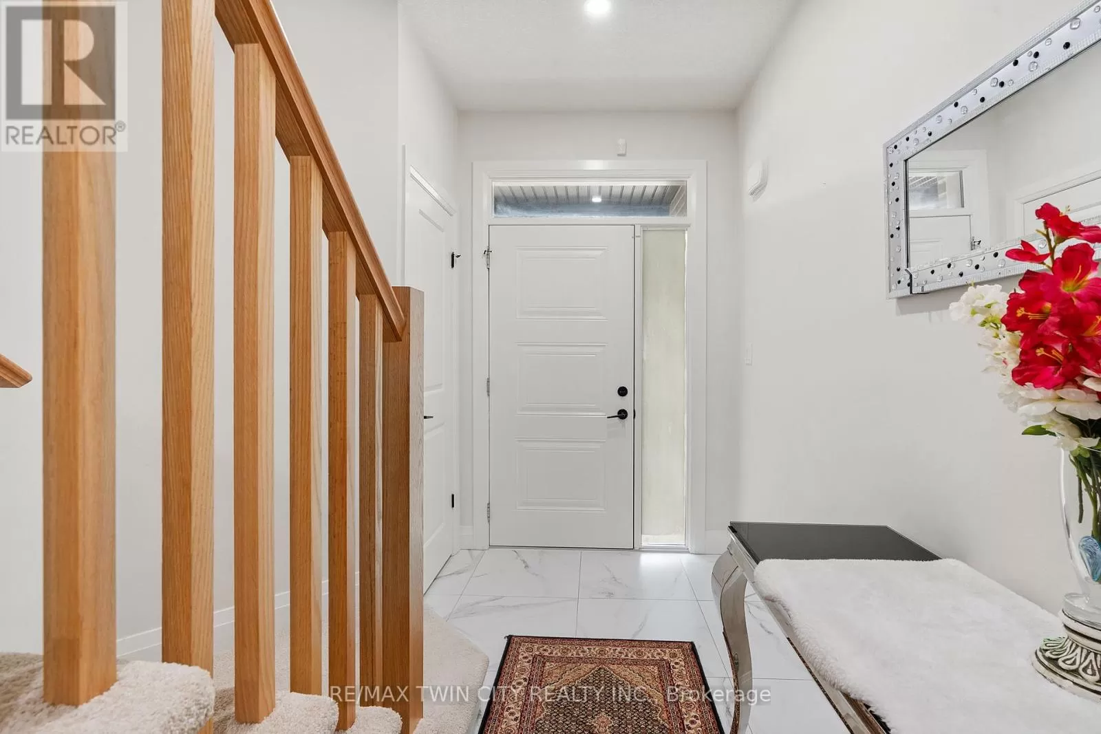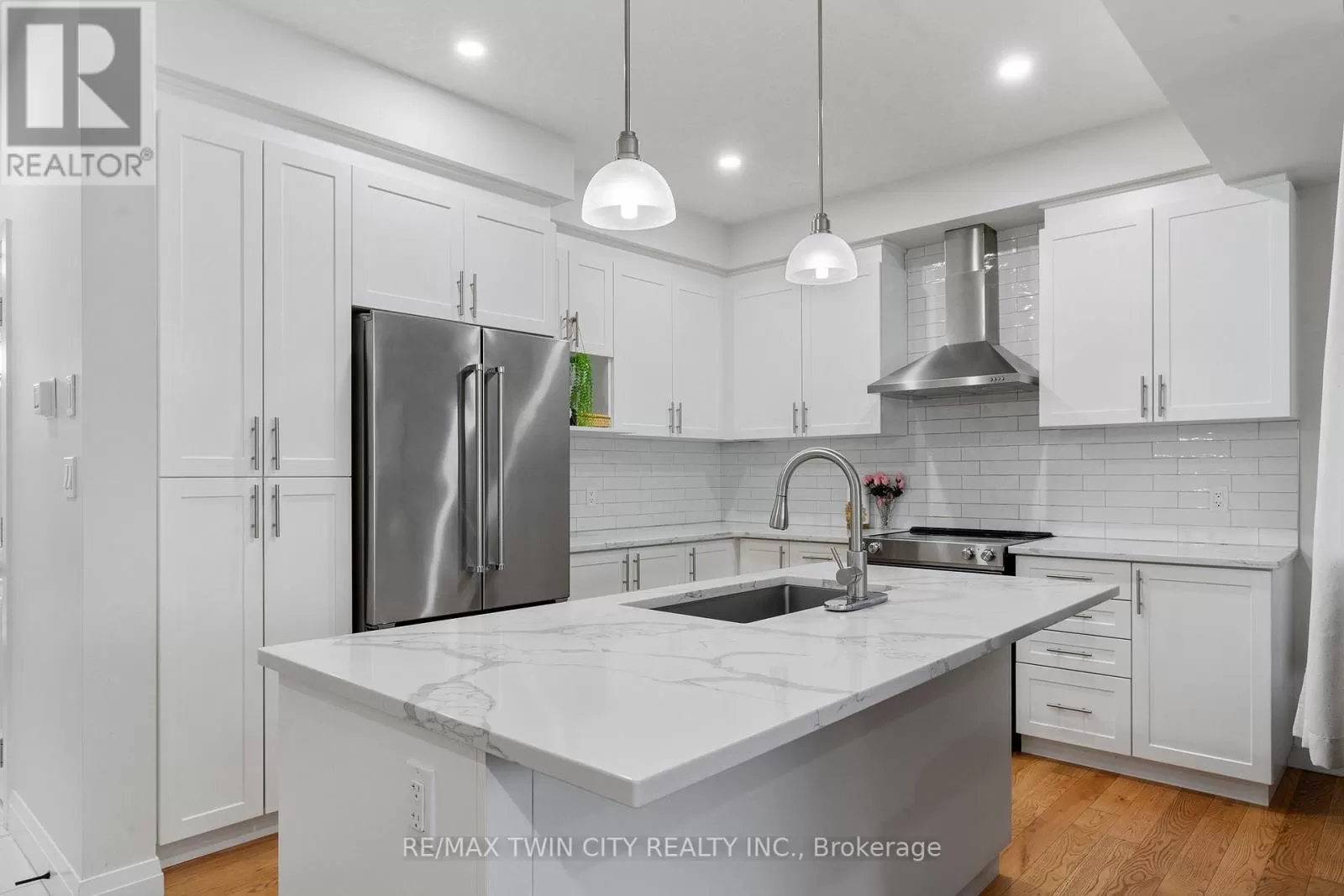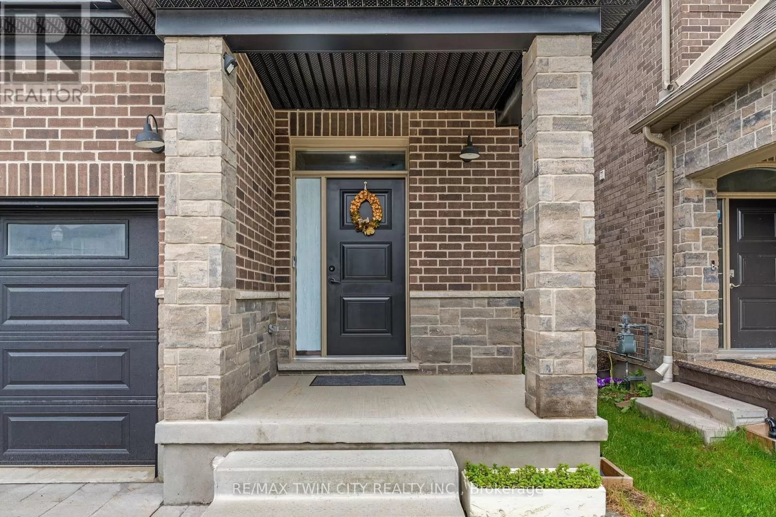 Cross Streets: Forest Creek Drive. ** Directions: From Homer Watson Blvd turn at the light onto Doon South Dr. Take first right at the roundabout onto Doon Mills Dr. Turn left onto Appleridge Dr. Left onto Forest Creek Dr. Take first right onto Pondcliffe Dr. House on left halfway down the street. Welcome to this stunning 2-storey home in the prestigious Doon South neighbourhood, offering over 2,300 sq. ft. of beautifully finished living space that blends custom craftsmanship with modern elegance. From the moment you enter, you're greeted by oversized marble-look tiles and a bright, spacious layout featuring engineered hardwood floors, soaring 9 ceilings, and an open-concept design perfect for family living and entertaining. The chefs kitchen boasts full-height custom cabinetry, quartz countertops, a walk-in pantry, timeless subway tile backsplash, and a full 2020 stainless steel KitchenAid appliance package. Oversized 8 patio doors lead to a fully sodded and fenced backyard with space for a future deck, garden, or play area. Upstairs, enjoy the convenience of second-floor laundry and three sun-filled bedrooms with blackout window coverings, including a luxurious primary suite with a spa-inspired ensuite featuring a glass walk-in shower and rainfall head. The unfinished basement with a 2-piece washroom rough-in offers excellent potential for future development. Additional features include central A/C, water softener, humidifier, and a stamped concrete/paver stone 3-car driveway. Ideally located just minutes from Hwy 401, this quality Ridgeview home is a rare opportunity where luxury, comfort, and location come together seamlessly. (id:27476)