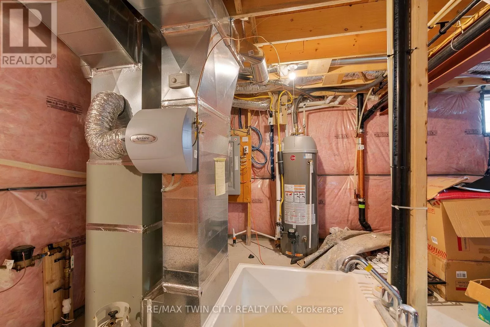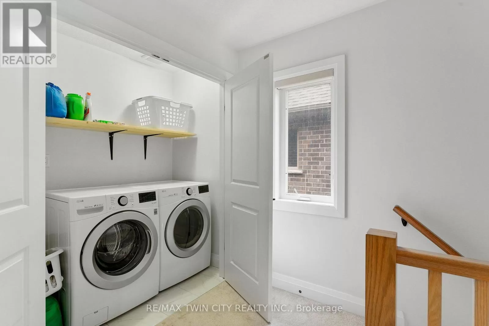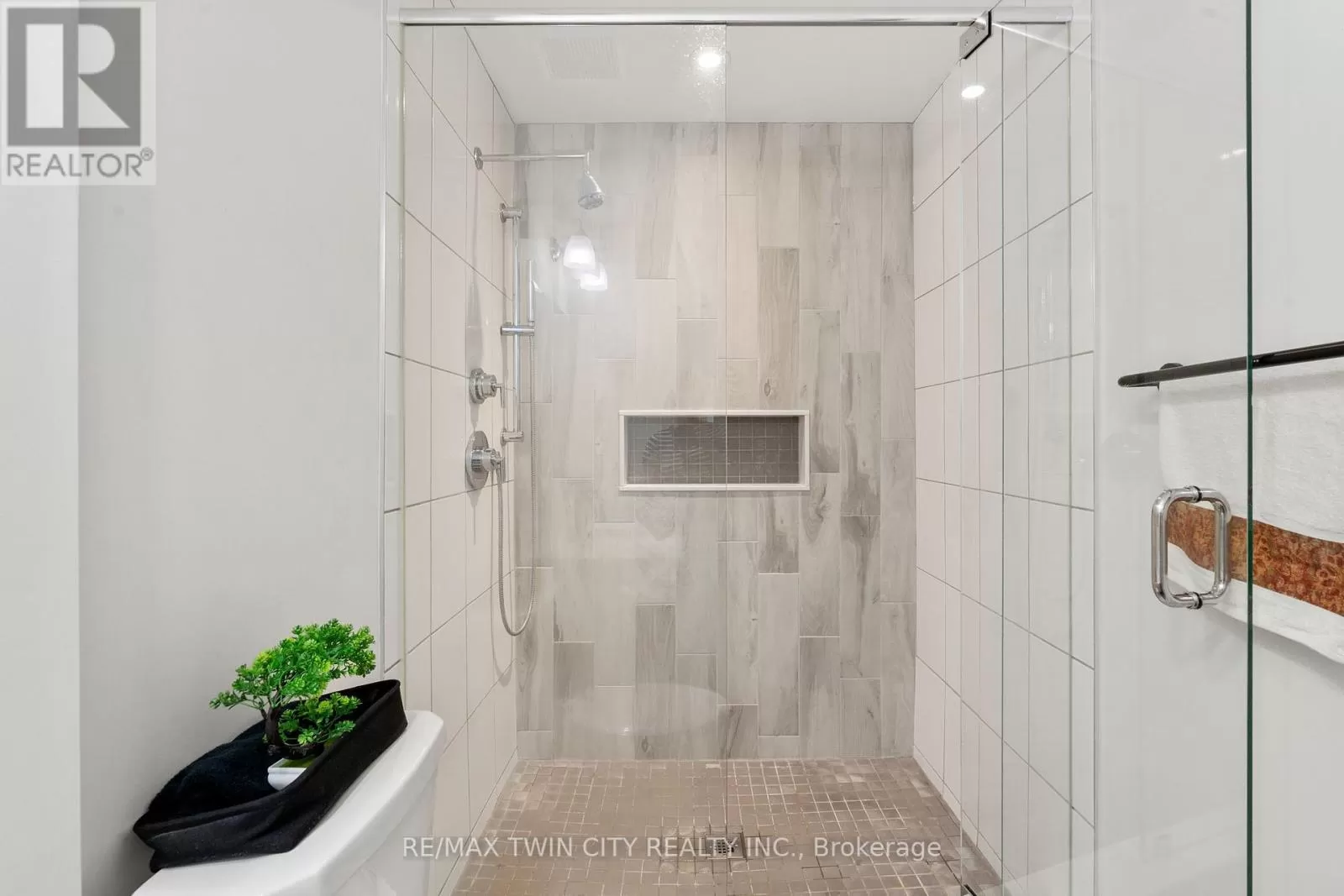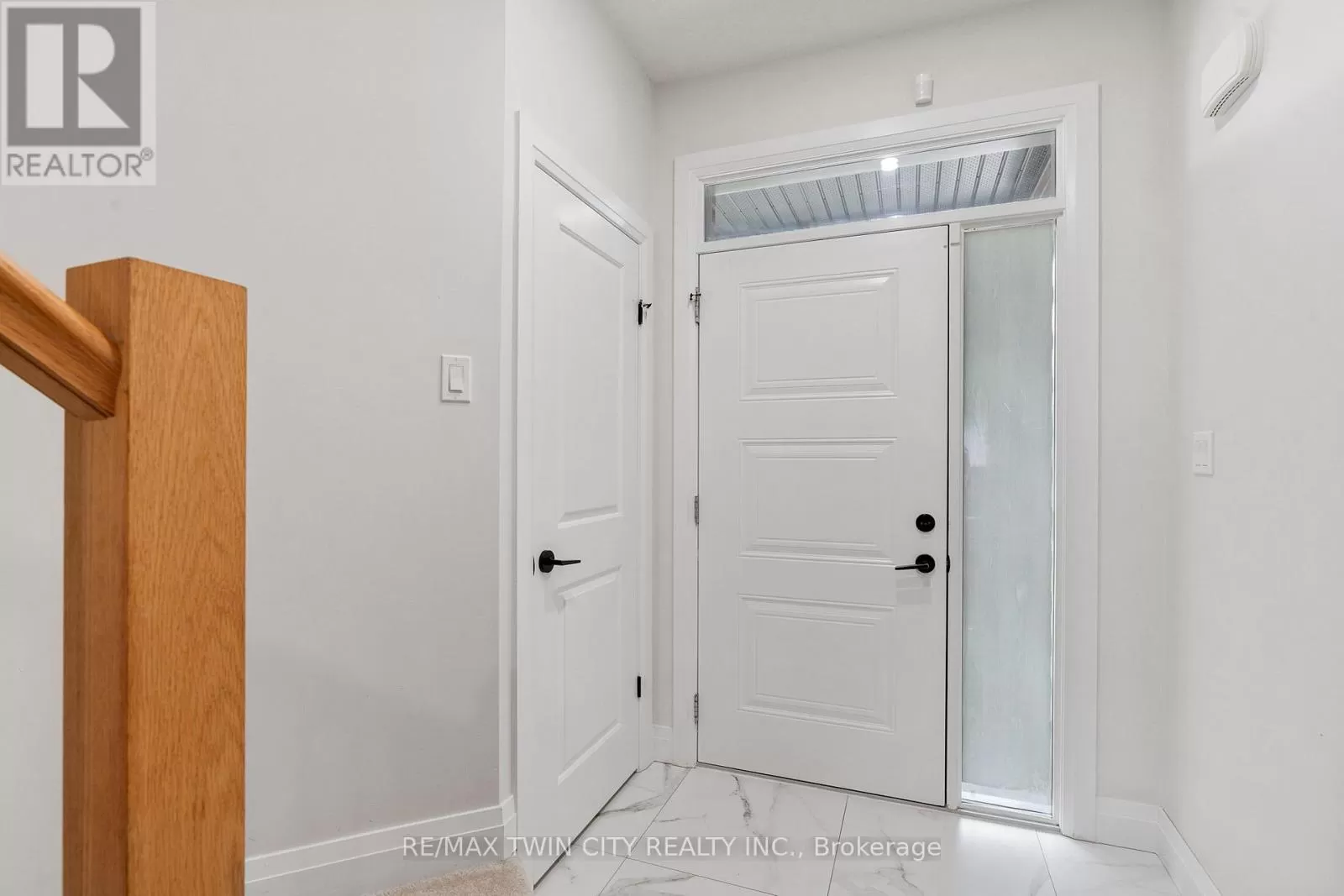 Cross Streets: Forest Creek Drive. ** Directions: From Homer Watson Blvd turn at the light onto Doon South Dr. Take first right at the roundabout onto Doon Mills Dr. Turn left onto Appleridge Dr. Left onto Forest Creek Dr. Take first right onto Pondcliffe Dr. House on left halfway down the street. Welcome to this stunning 2-storey home in the prestigious Doon South neighbourhood, offering over 2,300 sq. ft. of beautifully finished living space that blends custom craftsmanship with modern elegance. From the moment you enter, you're greeted by oversized marble-look tiles and a bright, spacious layout featuring engineered hardwood floors, soaring 9 ceilings, and an open-concept design perfect for family living and entertaining. The chefs kitchen boasts full-height custom cabinetry, quartz countertops, a walk-in pantry, timeless subway tile backsplash, and a full 2020 stainless steel KitchenAid appliance package. Oversized 8 patio doors lead to a fully sodded and fenced backyard with space for a future deck, garden, or play area. Upstairs, enjoy the convenience of second-floor laundry and three sun-filled bedrooms with blackout window coverings, including a luxurious primary suite with a spa-inspired ensuite featuring a glass walk-in shower and rainfall head. The unfinished basement with a 2-piece washroom rough-in offers excellent potential for future development. Additional features include central A/C, water softener, humidifier, and a stamped concrete/paver stone 3-car driveway. Ideally located just minutes from Hwy 401, this quality Ridgeview home is a rare opportunity where luxury, comfort, and location come together seamlessly. (id:27476)