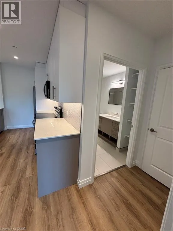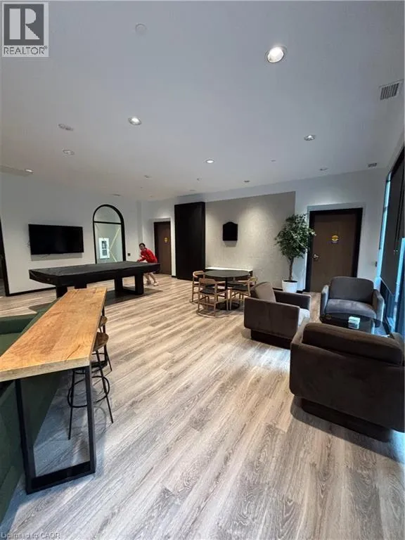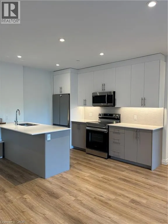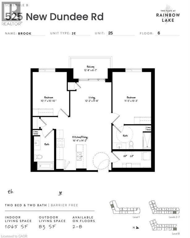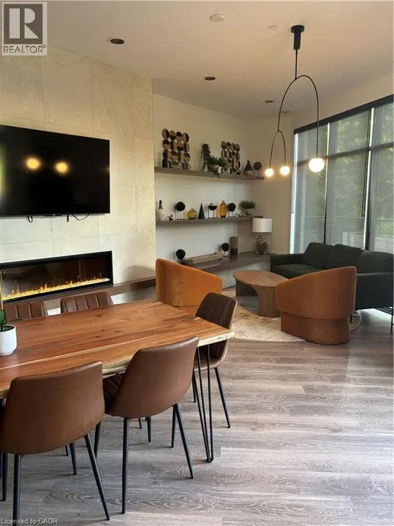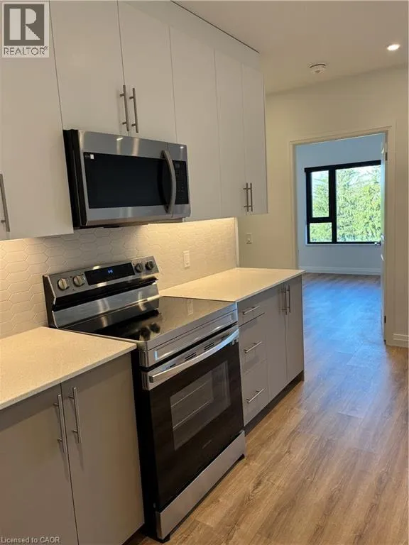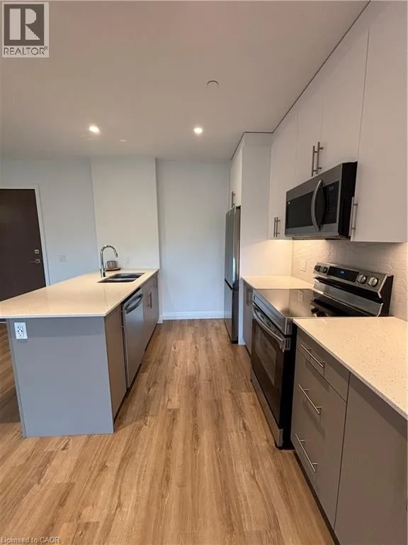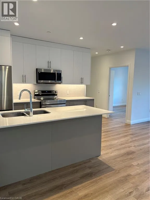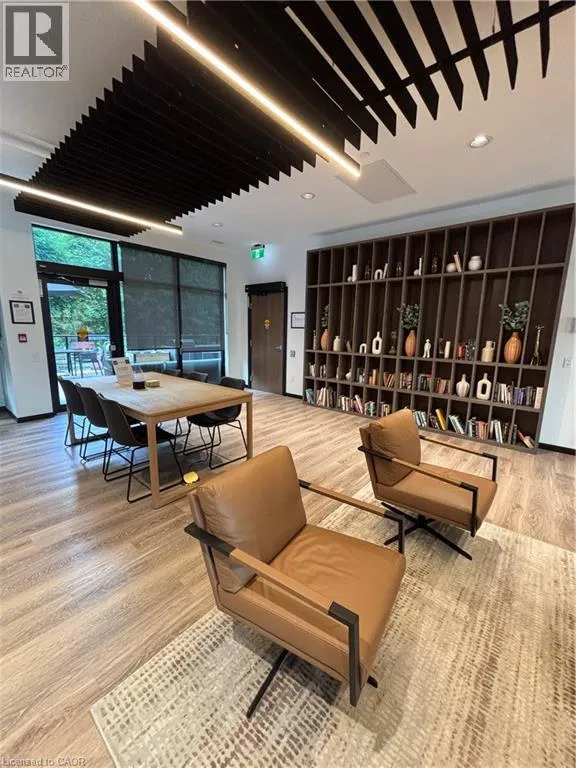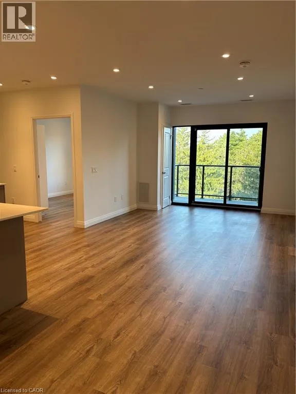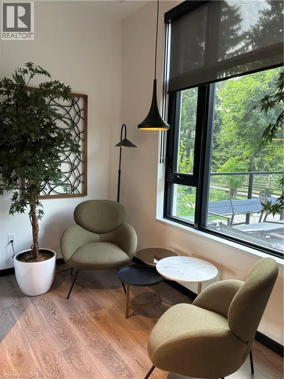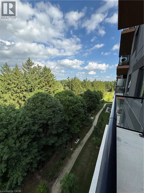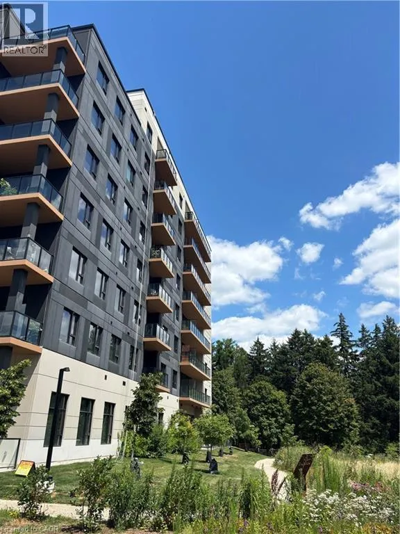 Hwy 401 to Homer Watson Exit to New Dundee Road. Welcome to The Flats at Rainbow Lake â a modern condo community nestled in the serene and family friendly Doon South neighbourhood of Kitchener. This spacious 2-bedroom, 2-bathroom suite offers over 1,065 sq ft of well-designed living space, plus a private balcony with tranquil treetop views, and ONE PARKING SPOT. Enjoy the comfort of modern living with in-suite laundry, an oversized in-unit storage room, generous closet space, and large windows that bring in natural light and leafy views. EV parking is available in the lot, adding convenience for eco-conscious residents. The building is rich with hotel-inspired amenities: entertain in the stylish party room, unwind in the sauna or yoga studio, work from the bright co-working spaces, or relax on the patio with BBQs and lounge seating. Thereâs even a fitness room, library, and an outdoor playground â all designed with quality, comfort and functionality in mind. Located steps from the scenic Rainbow Lake, residents can enjoy peaceful walks and nature just outside the door. With quick access to Hwy 401, Conestoga College, and local schools, this home is ideal for a small family, professional couple, or mature students seeking quiet, upscale living in a calm setting. (id:27476)
