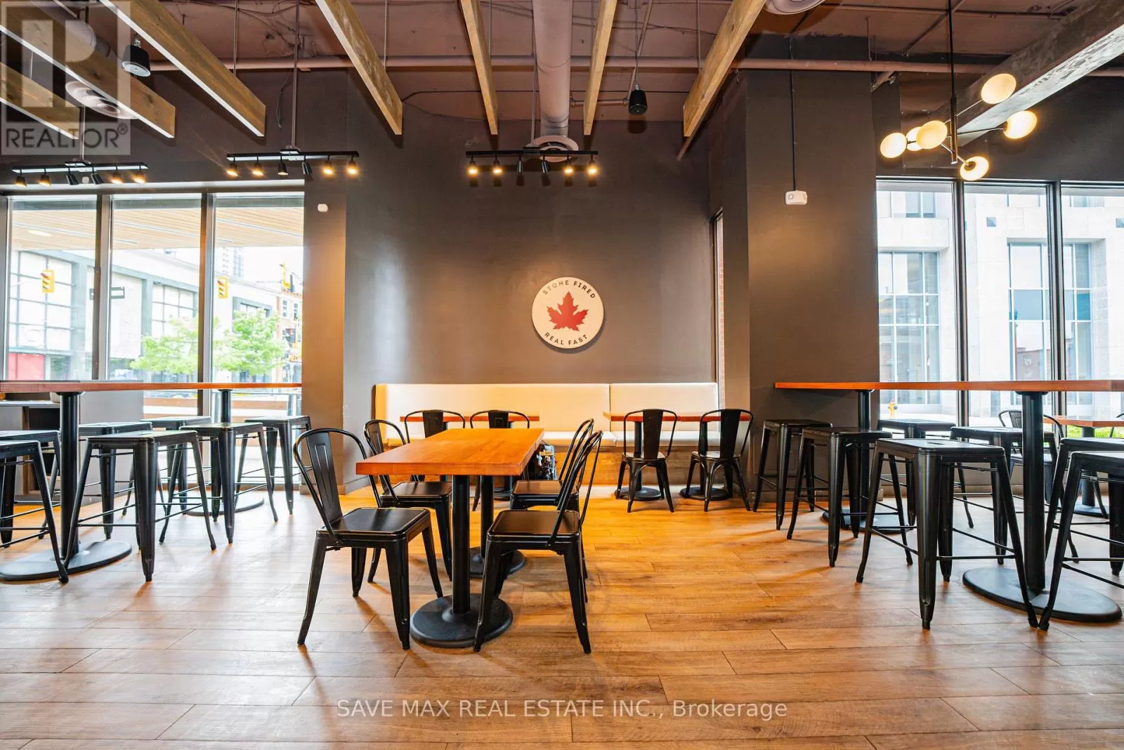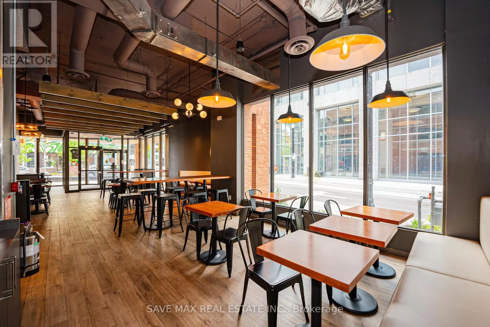 KING & ONTARIO Incredible Opportunity to Own a Branded, Stone-Fired Pizza Store-sale of business in the Heart of Downtown Kitchener! Located on a premium corner with full street exposure and non-stop foot traffic, this beautifully designed approx. 2,000 sq. ft. restaurant offers a warm dine-in experience with seating for 40+ inside and 10+ on a charming potential patio. The space boasts 4 washrooms (including 1 accessible), LLBO licensed, and a vibrant interior that matches the energy of its prime location. Situated in a high-traffic zone surrounded by offices, condos, events, and year-round festivals from June to Christmas this spot draws consistent crowds and strong sales. A long-term lease is available. Fully equipped kitchen with stone-fired oven, walk-in cooler and other equipment. (id:27476)