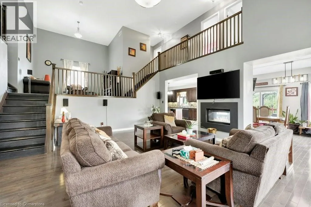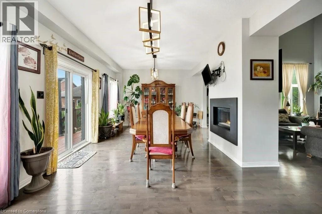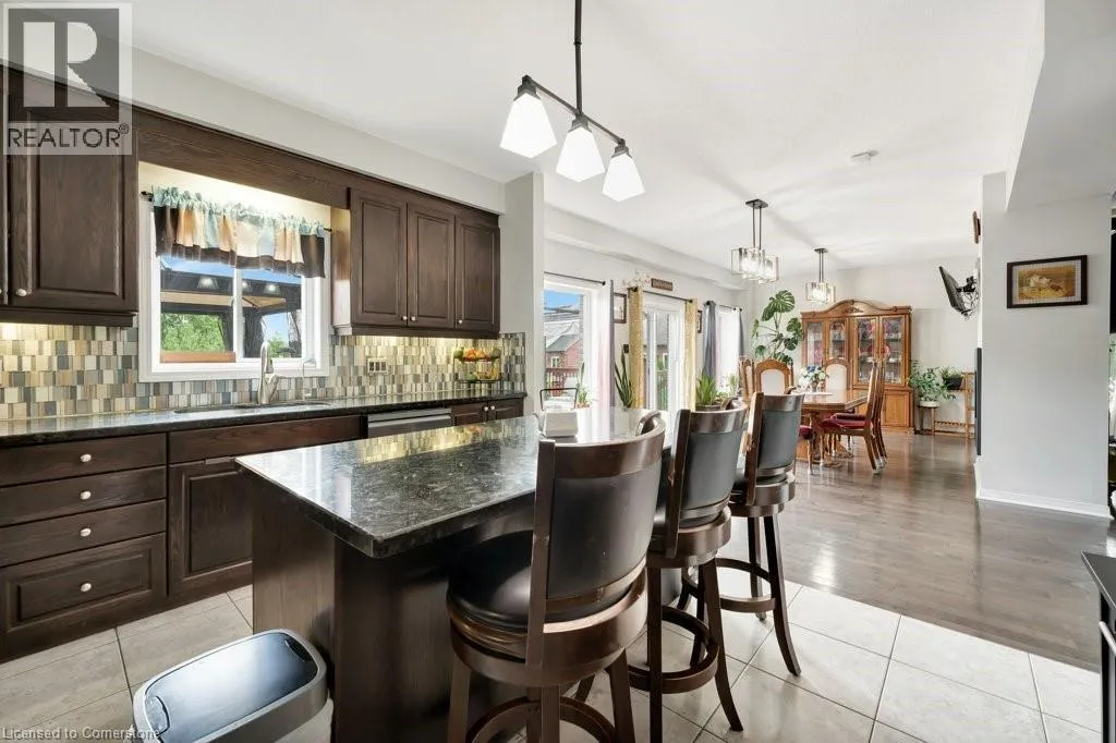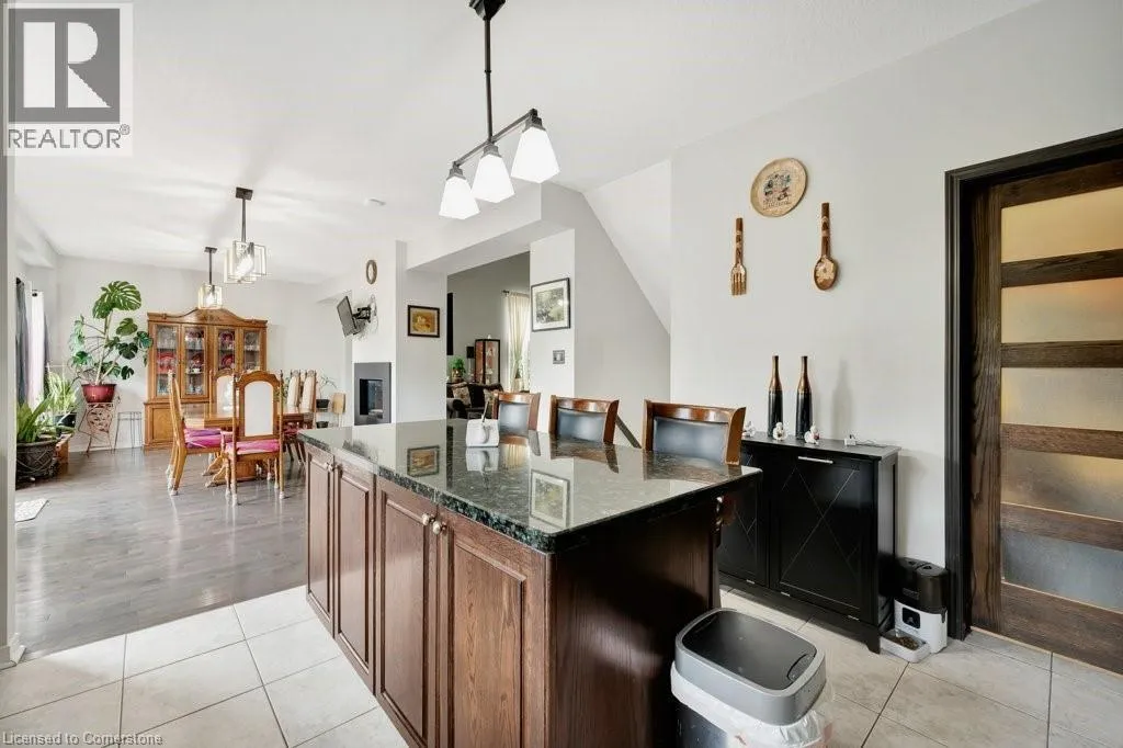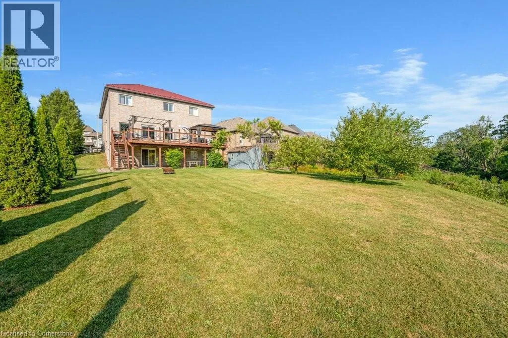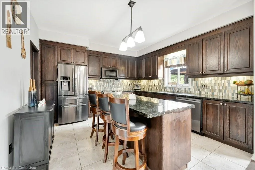 From Huron Rd, head north on Woodbine Ave. Property is on the right, just past Britannia Crescent. Welcome to 477 Woodbine Ave - a custom-designed executive home where everyday living meets the beauty of the Huron Natural Area. Set on a pie-shaped ravine lot with no rear neighbours, this 5-bedroom, 3.5-bath retreat offers over 3,070 sq.ft. of finished living space, thoughtfully designed for modem families who crave space, flexibility, and connection to nature. Soaring 18' ceilings in the great room create an airy, open feel, with a stunning double-sided gas fireplace that adds warmth and style. The kitchen is a dream-granite counters, walk-in pantry, oversized island, and newer stainless steel appliances-all flowing into the dining area with direct access to a raised deck overlooking the treetops and trails. Need main-floor flexibility? You've got it-with a private bedroom perfect for guests, in-laws, or a home office. Upstairs, a lofted family room adds even more space to unwind, leading to a primary suite that feels like an escape, complete with a walk-in closet, private balcony, and spa-inspired ensuite with a jetted tub and double vanity. Three additional bedrooms offer space to grow, work, or host. The walk-out basement is a game changer, two finished bonus rooms for a gym, office, or playroom, a 3-piece bath, and access to the deep backyard framed by mature fruit trees and forest views. Bonus features include a 50-year metal roof (2024), new front windows (2024), Google Nest thermostat and smoke detectors. This is a rare blend of thoughtful design, natural beauty, and everyday functionality-all in one of Kitchener's most scenic communities. (id:27476)