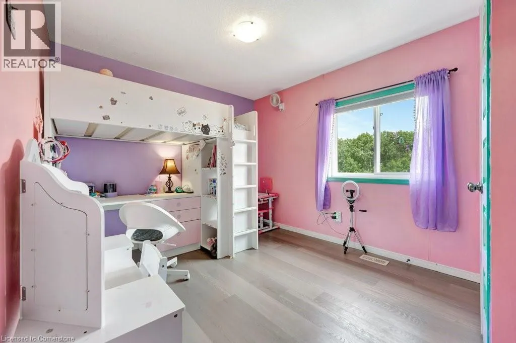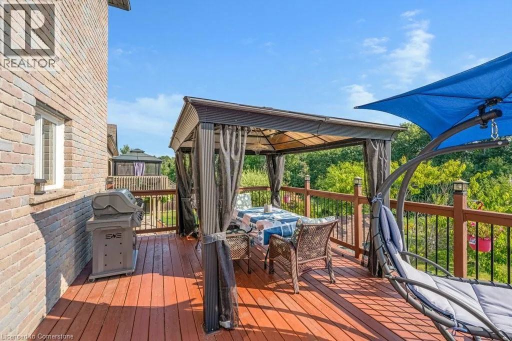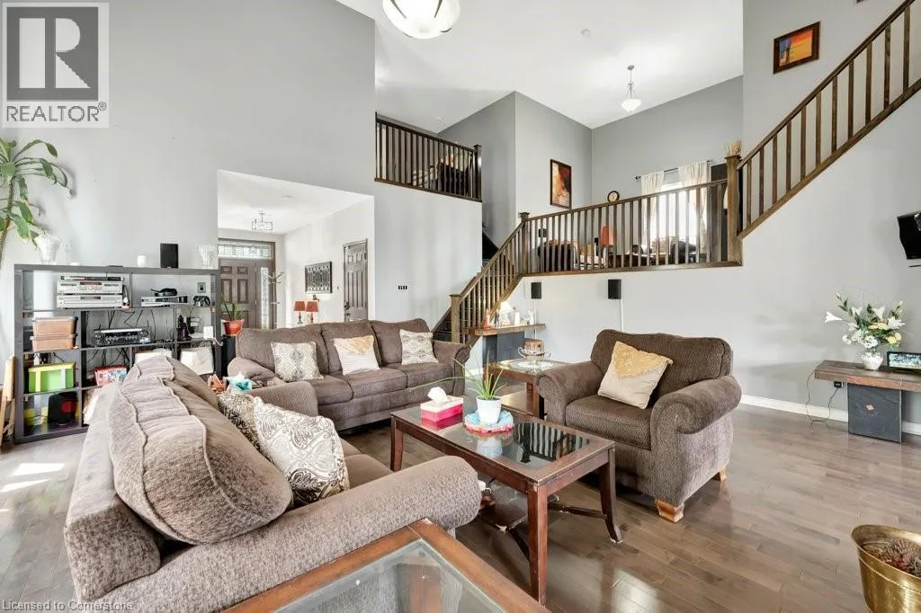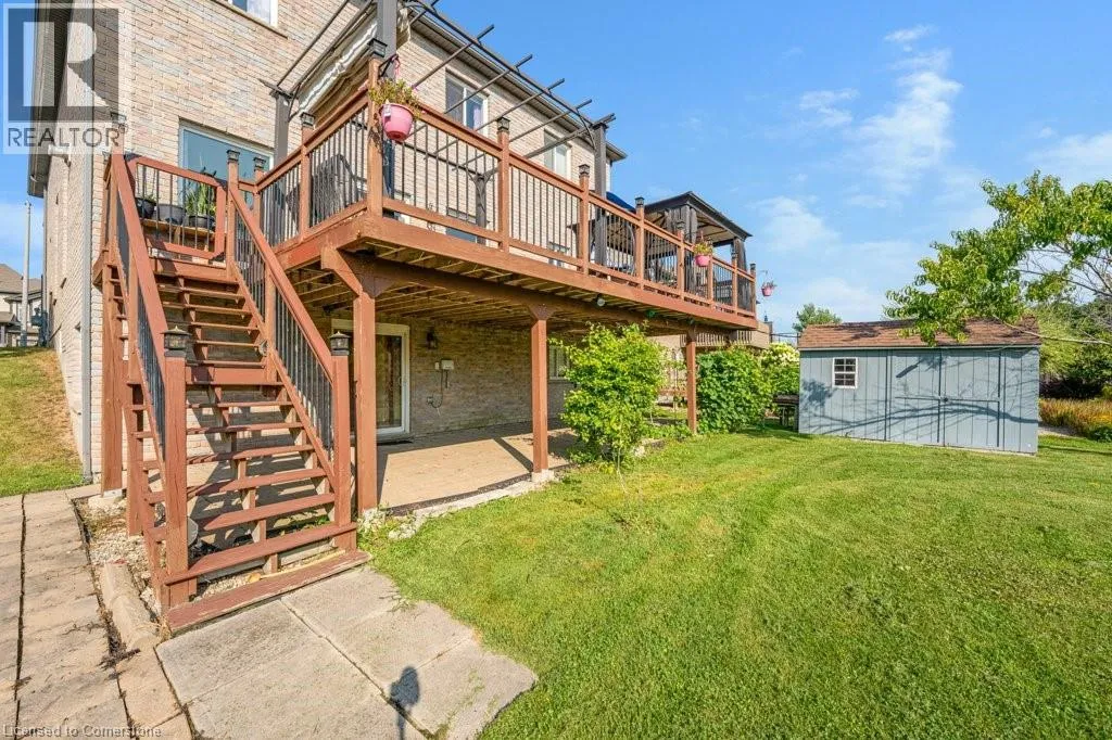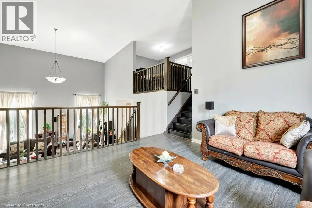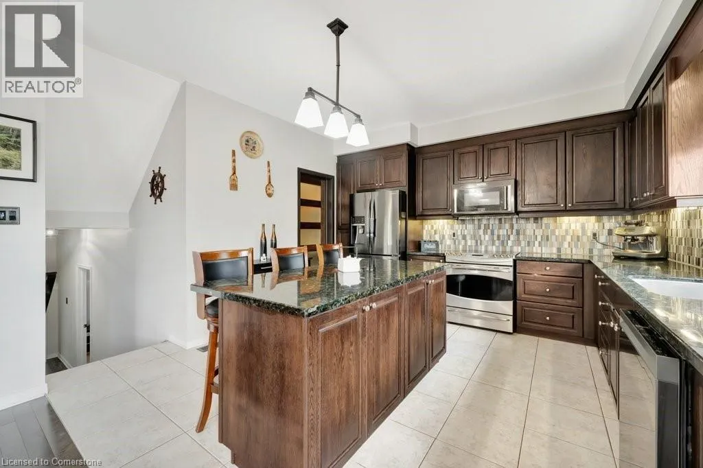 From Huron Rd, head north on Woodbine Ave. Property is on the right, just past Britannia Crescent. Welcome to 477 Woodbine Ave - a custom-designed executive home where everyday living meets the beauty of the Huron Natural Area. Set on a pie-shaped ravine lot with no rear neighbours, this 5-bedroom, 3.5-bath retreat offers over 3,070 sq.ft. of finished living space, thoughtfully designed for modem families who crave space, flexibility, and connection to nature. Soaring 18' ceilings in the great room create an airy, open feel, with a stunning double-sided gas fireplace that adds warmth and style. The kitchen is a dream-granite counters, walk-in pantry, oversized island, and newer stainless steel appliances-all flowing into the dining area with direct access to a raised deck overlooking the treetops and trails. Need main-floor flexibility? You've got it-with a private bedroom perfect for guests, in-laws, or a home office. Upstairs, a lofted family room adds even more space to unwind, leading to a primary suite that feels like an escape, complete with a walk-in closet, private balcony, and spa-inspired ensuite with a jetted tub and double vanity. Three additional bedrooms offer space to grow, work, or host. The walk-out basement is a game changer, two finished bonus rooms for a gym, office, or playroom, a 3-piece bath, and access to the deep backyard framed by mature fruit trees and forest views. Bonus features include a 50-year metal roof (2024), new front windows (2024), Google Nest thermostat and smoke detectors. This is a rare blend of thoughtful design, natural beauty, and everyday functionality-all in one of Kitchener's most scenic communities. (id:27476)