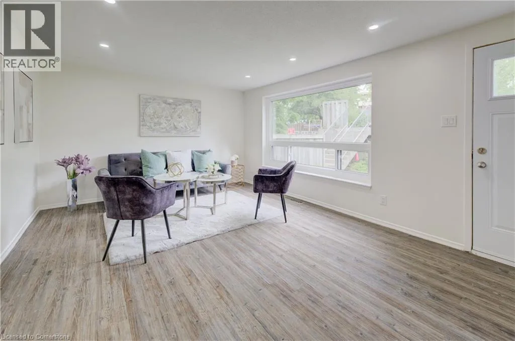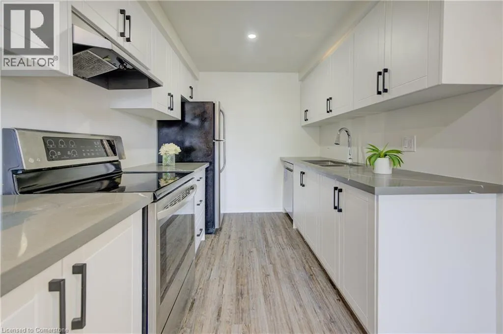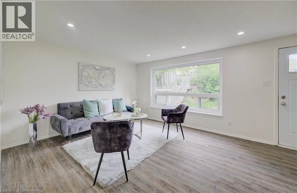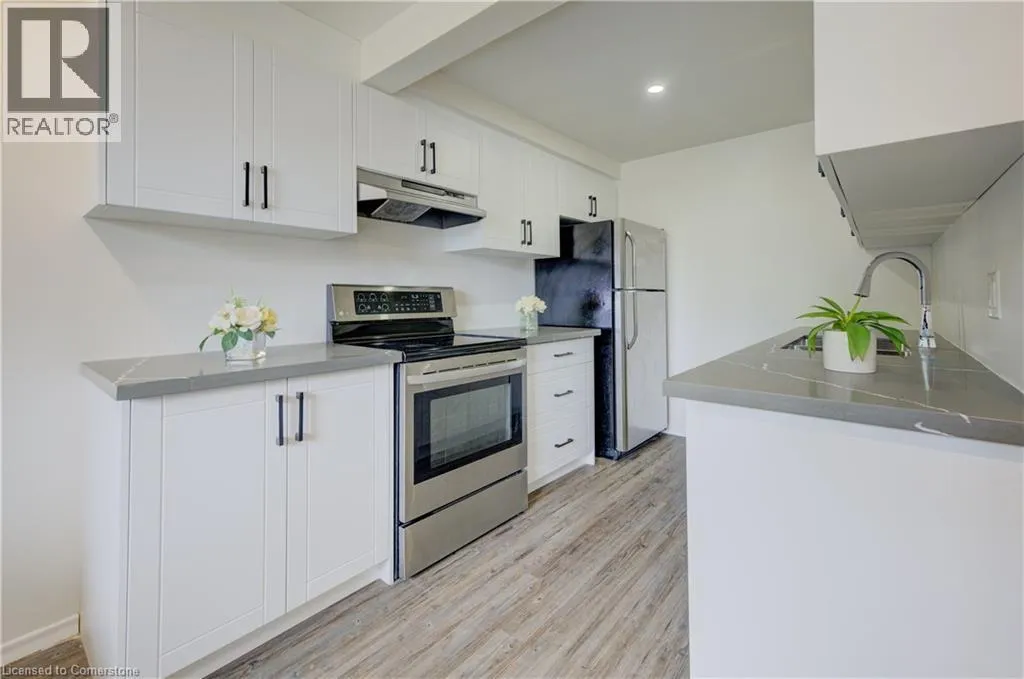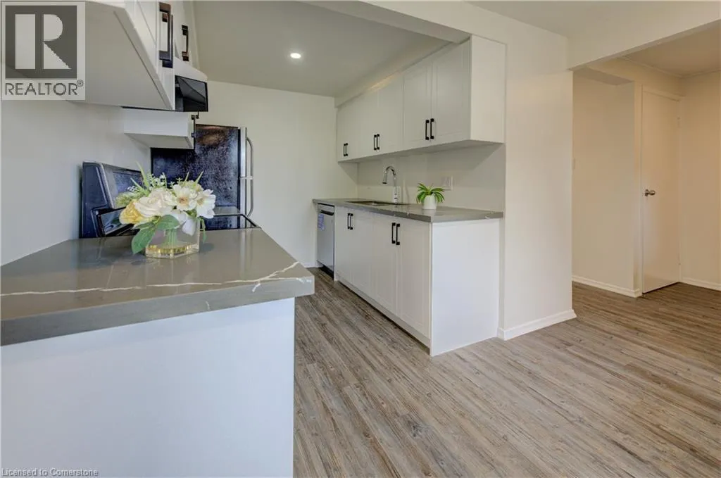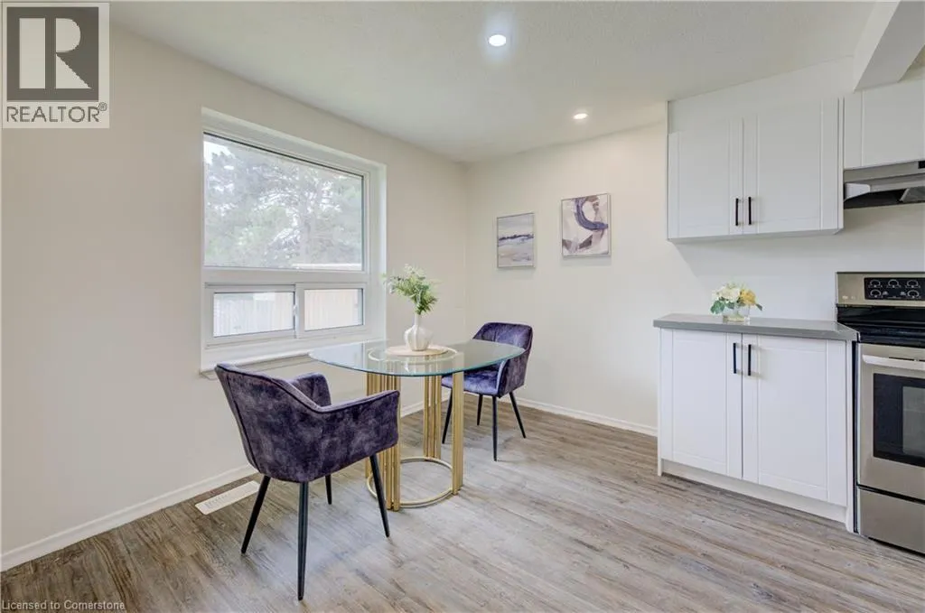 FAIRWAY ROAD N / RIVER ROAD E Welcome to 280 Thaler Avenue, Unit 9, a beautifully renovated 3-bedroom, 2-bathroom townhome in a prime Kitchener location! Step inside to discover a bright and modern interior featuring new floors, fresh paint, and upgraded windows that fill the space with natural light. The main level boasts of a spacious living room with a large new window and pot lights, offering a warm and inviting atmosphere. The eat-in kitchen with new stainless steel appliances, updated white cabinetry, quartz countertops, and sleek pot light is sure to impress and is perfect for both everyday living and entertaining. Upstairs, you'll find three generous-sized bedrooms, all finished with new flooring, pot lights, along with a stylish 4-piece bathroom. The finished basement offers added versatility with a cozy recreation room, an additional bathroom and new laundry appliances , ideal for a home office, playroom, or guest suite. Other major amenities include a furnace and A/C unit, ensuring year-round comfort. Located in a family-friendly neighbourhood close to schools (especially an upcoming Catholic school) shopping, public transit, and highway access, this move-in-ready home is perfect for first-time buyers, downsizers, or investors alike. (id:27476)