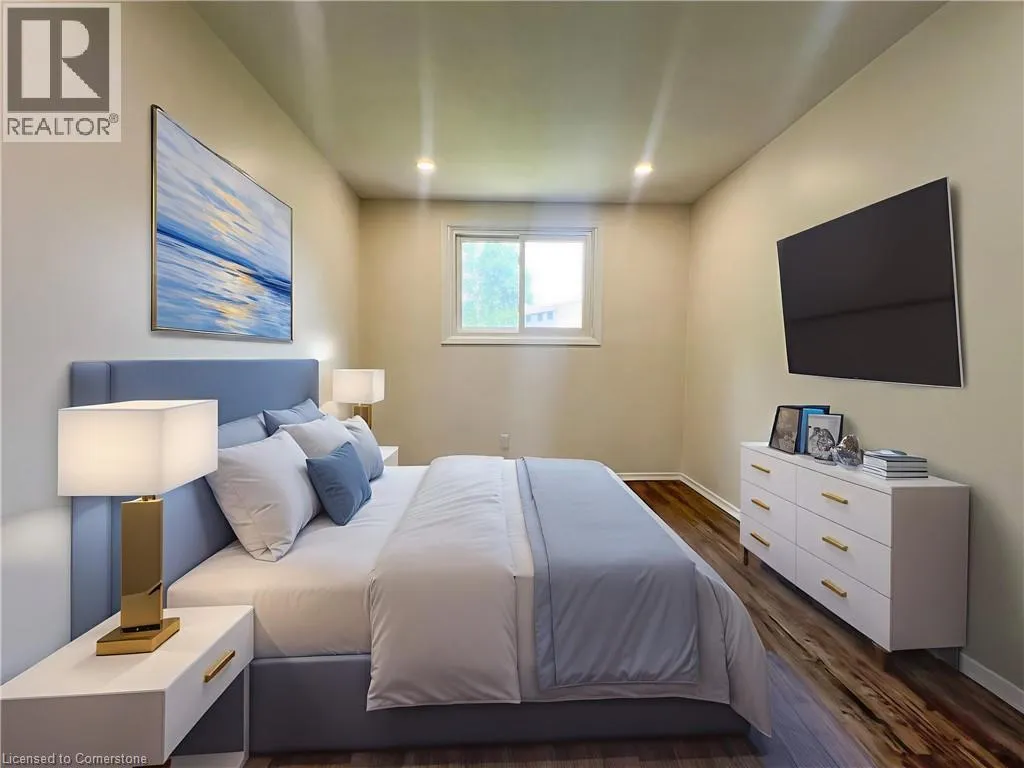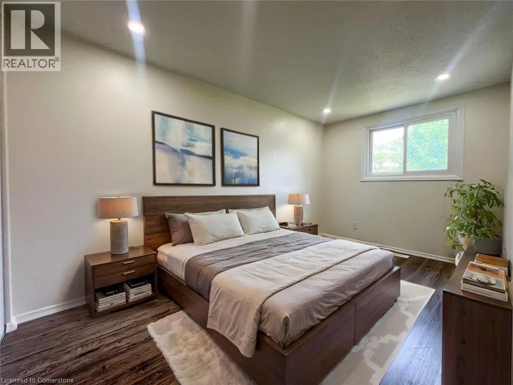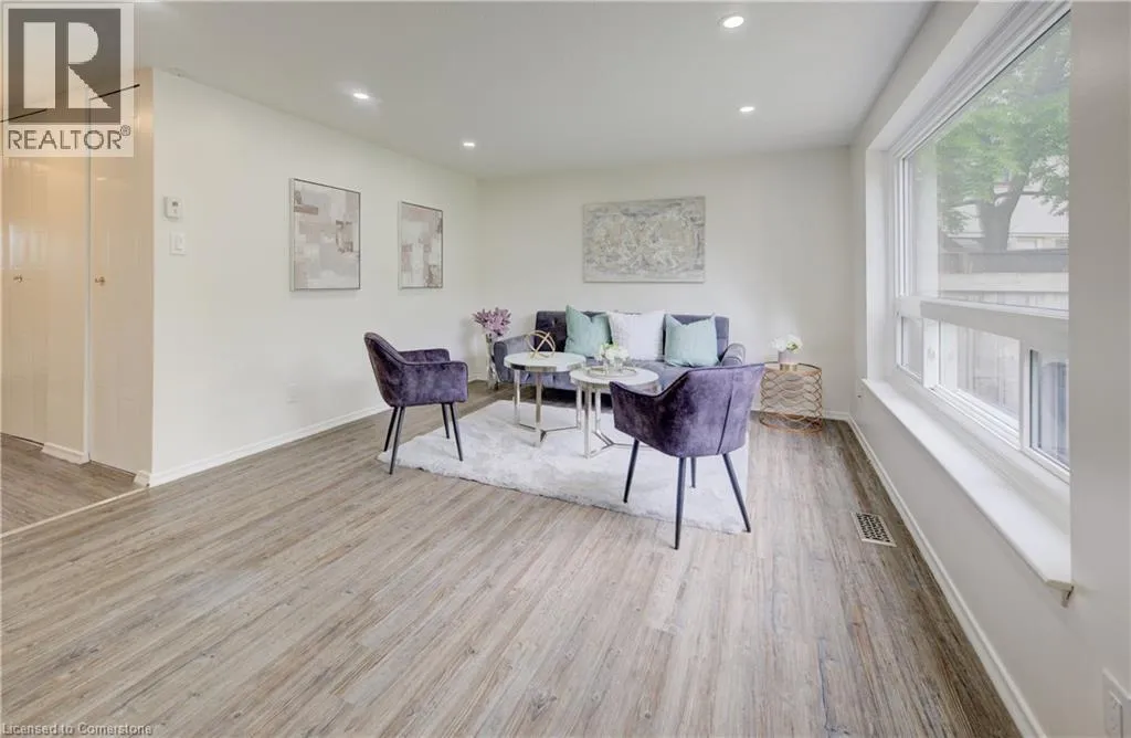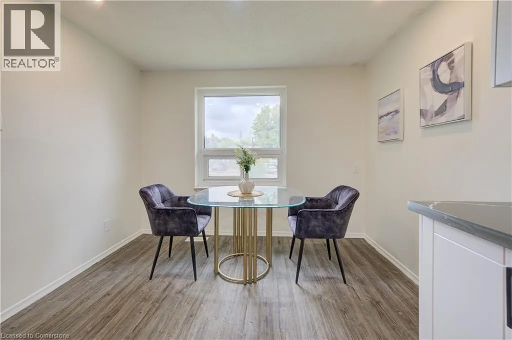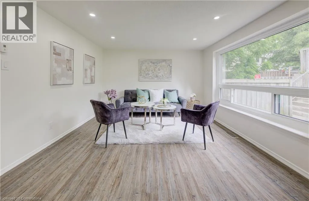 FAIRWAY ROAD N / RIVER ROAD E Welcome to 280 Thaler Avenue, Unit 9, a beautifully renovated 3-bedroom, 2-bathroom townhome in a prime Kitchener location! Step inside to discover a bright and modern interior featuring new floors, fresh paint, and upgraded windows that fill the space with natural light. The main level boasts of a spacious living room with a large new window and pot lights, offering a warm and inviting atmosphere. The eat-in kitchen with new stainless steel appliances, updated white cabinetry, quartz countertops, and sleek pot light is sure to impress and is perfect for both everyday living and entertaining. Upstairs, you'll find three generous-sized bedrooms, all finished with new flooring, pot lights, along with a stylish 4-piece bathroom. The finished basement offers added versatility with a cozy recreation room, an additional bathroom and new laundry appliances , ideal for a home office, playroom, or guest suite. Other major amenities include a furnace and A/C unit, ensuring year-round comfort. Located in a family-friendly neighbourhood close to schools (especially an upcoming Catholic school) shopping, public transit, and highway access, this move-in-ready home is perfect for first-time buyers, downsizers, or investors alike. (id:27476)