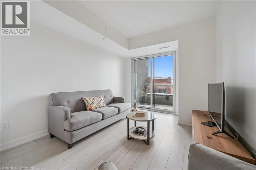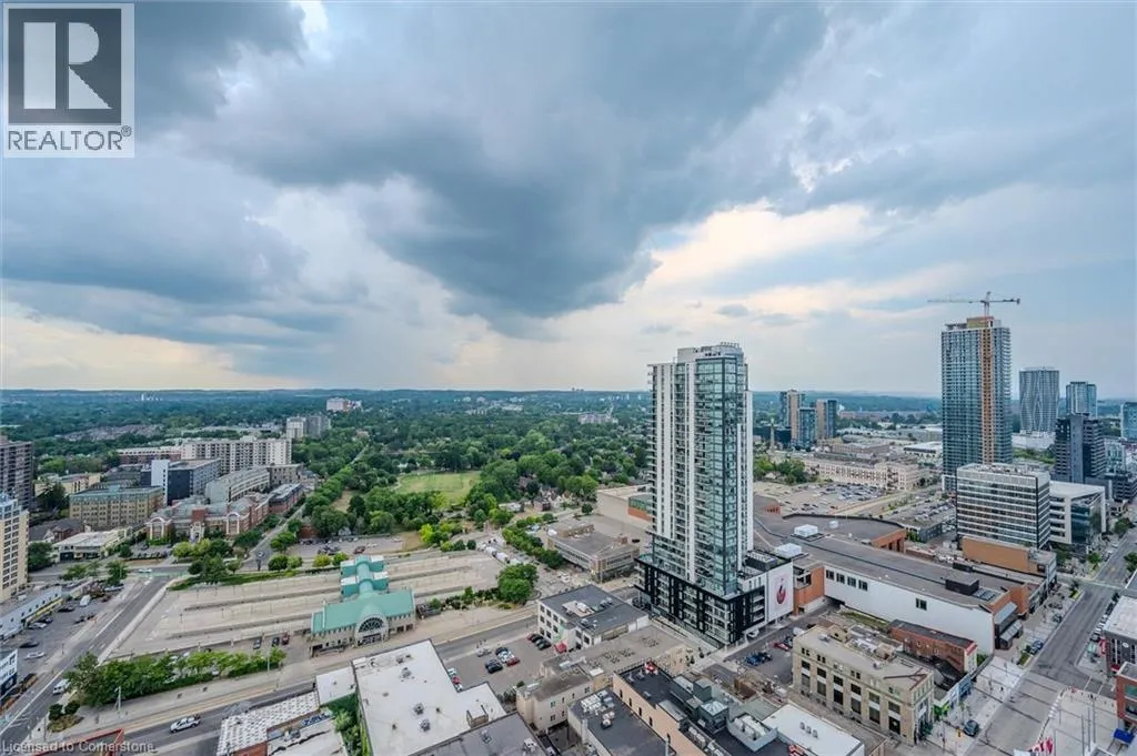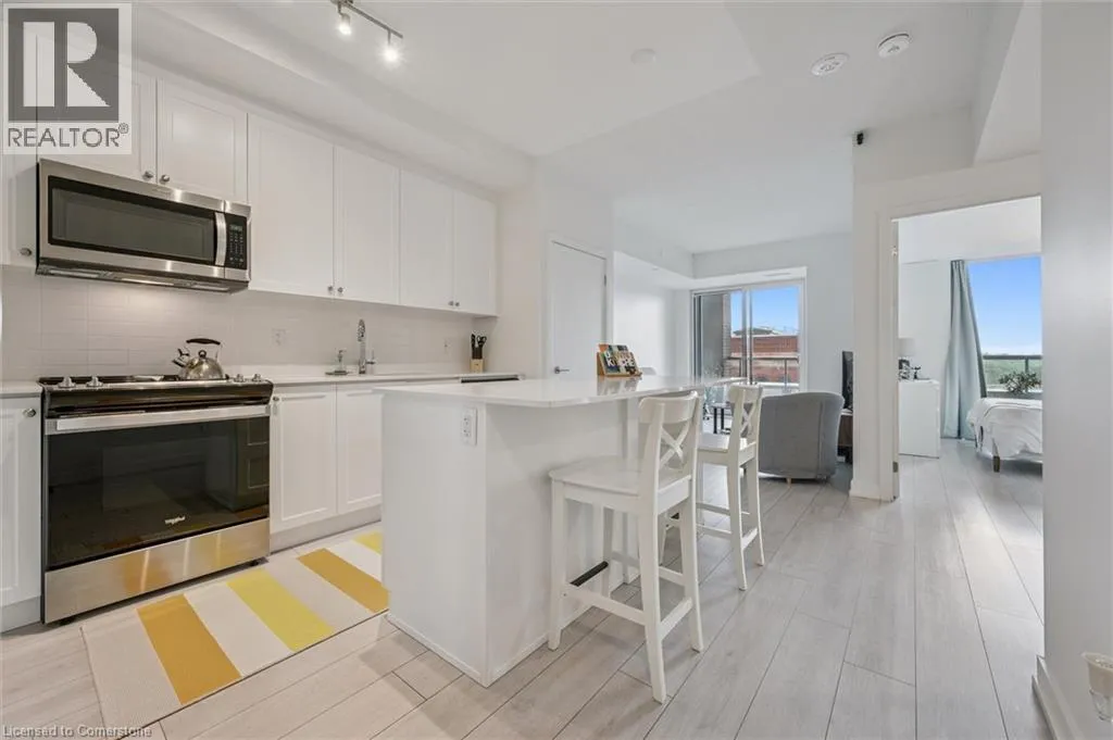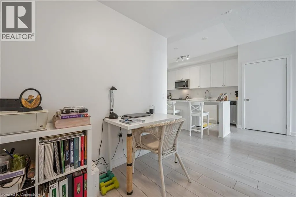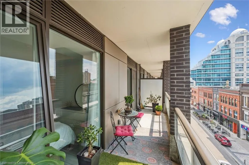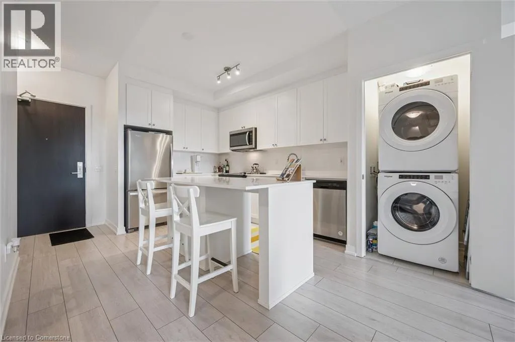 Young St/Duke St/King St. Located in the heart of Kitchener Downtown right beside the Kitchener City Hall, live close to all the festivals, restaurants, cafes and all the Kitchener Downtown has to offer. Balcony has a nice view of the patio from the across the street restaurants. Public transit is only steps away from front door way. This 1 bedroom plus den unit offers a nice clean place to live with upgraded kitchen island and other extras including in unit laundry, The 110 sqft balcony offer a nice outdoor space and exemption amenities that make this a great condo building. With dining terrace, roof top track for runs, fitness zone with spin room, outdoor yoga, dog wash station, BBQ space and many more. Make this your next home. (id:27476)
