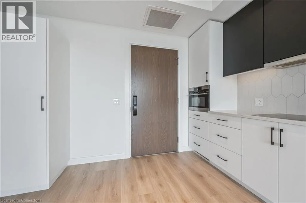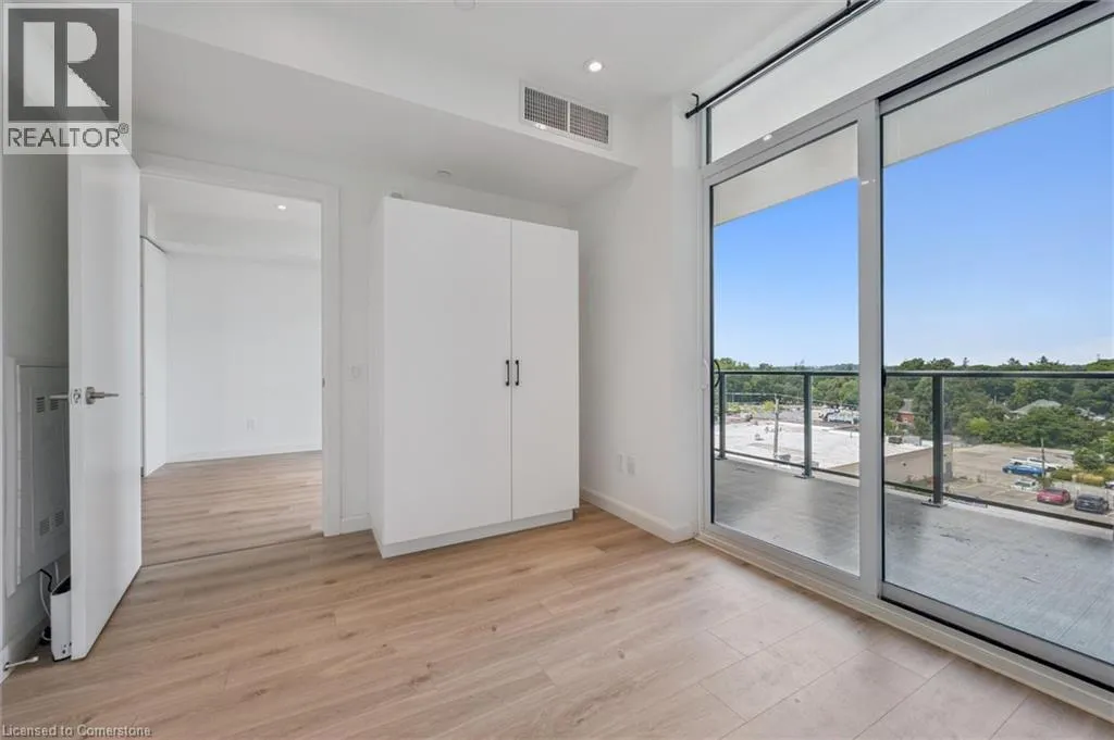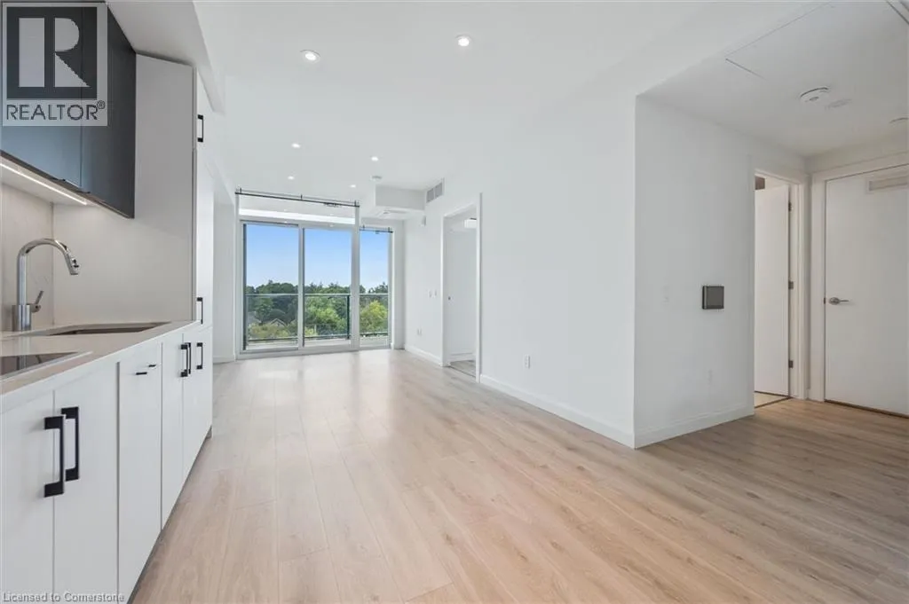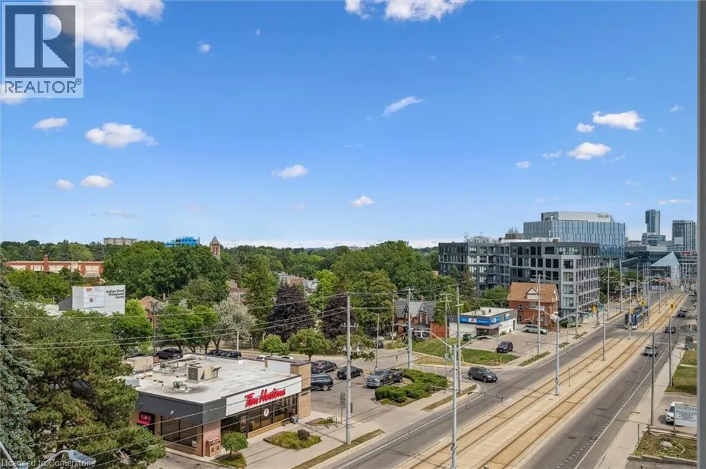 on King St in between Green and Agnes ***Reduced Price $529,900***Welcome to 501-741 King St. W., Kitchener â where modern luxury meets Scandinavian-inspired design in this newer condominium development. Just a short walk from the LRT ION Grand River Hospital stop, this location offers exceptional convenience along the LRT line. With a local supermarket right across the street, grocery shopping is a breeze. Plus, being within walking distance to Uptown Waterloo, you're close to all the amenities you need. Step into this beautifully designed 2-bedroom, 1-bathroom unit featuring heated bathroom floors, a spacious terrace, and an open-concept layout that defines contemporary living. Enjoy the added convenience of one parking spot (EV-ready via ChargePoint) and a dedicated storage locker. This smart condo is equipped with the innovative InCHARGE system platform offering cutting-edge technology for modern urban living. Custom closets, sleek finishes, and expansive balconies/terraces provide both style and functionality. The buildingâs amenities are second to none: ⢠A cozy Hygge lounge with a café, library, fireplaces, and intimate seating areas ⢠A vibrant outdoor terrace featuring two saunas, an outdoor kitchen/bar, lounge space, a grand communal table, and shaded trellis areas ⢠An elegant party room and additional sauna for relaxing or entertaining ⢠Ground-level amenities including public and private patios ⢠A linear parkette and art walk that enhance the community charm With easy access to parks, public transit, and highways, this location is as convenient as it is stylish. Every detail of this residence is designed to offer comfort, sophistication, and smart city living. (id:27476)