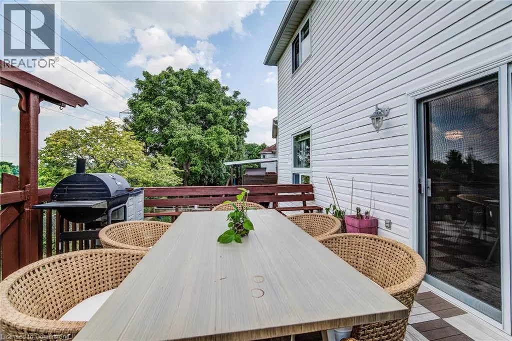 Fischer Hallman / Victoria St S / Westforest Trail Beautiful 4-Bedroom, 4-Bathroom Home Backing onto Green Space! Welcome to this stunning over 2000 square ft finished (Including basement), 2-storey open-concept home perfectly positioned with no rear neighboursâjust peaceful views of lush green space. The main floor offers a bright and spacious layout ideal for entertaining, with seamless flow from the modern kitchen to the dining area and living room, and direct access to a large deck for relaxing or hosting summer BBQs. Upstairs, youâll find three generous bedrooms, including a primary suite with a walk-in closet and private ensuite bath. The fully finished lookout basement adds even more living space, complete with its own bathroom, perfect for a rec room, home office, or guest area. Outside, the fresh concrete double driveway and double garage provide ample parking. Most of the stylish furniture can be included, making moving in a breeze. Located close to shopping, great schools, restaurants, and scenic trails, this home offers both convenience and tranquilityâa rare combination. (id:27476)