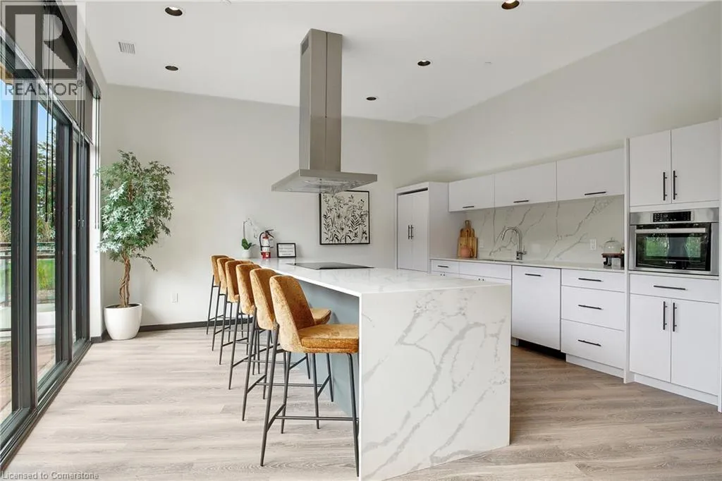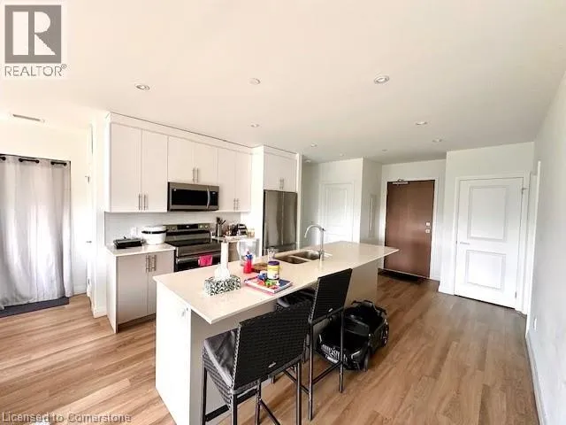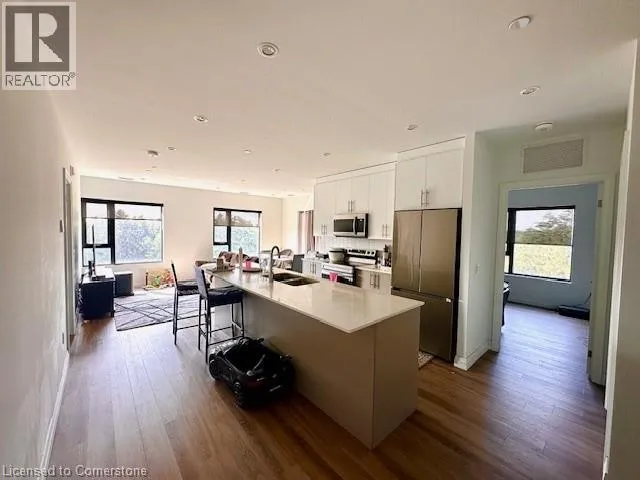 Homer Watson Blvd. to New Dundee Rd. Welcome to the tranquil haven of Rainbow Lake! This 2-bedroom, 2-bathroom condo beautifully combines comfort and style. Located at 601-525 New Dundee Rd., this unit features 1,055 square feet of thoughtfully designed living space, ideal for a luxurious and convenient lifestyle. The open concept living and dining area creates a spacious and welcoming ambiance, perfect for both relaxation and entertaining. The kitchen features stainless steel appliances, a kitchen island, and plenty of cabinet space for all your culinary essentials. Step out onto your expansive balcony and be mesmerized by the stunning views of Rainbow Lake and the lovely surrounding forest. Enjoy the convenience of an in-suite laundry. Both bedrooms come with walk-in closets, providing ample storage for your wardrobe, while two bathrooms complete the unit. This exceptional condominium offers a wide range of amenities, including a gym, yoga studio, sauna, library, social lounge, party room, pet wash station, and access to the Rainbow Lake conservation area perfect for kayaking, canoeing, swimming, and fishing! Don't miss the chance to live in this prime location that offers tranquility, modern living, and a host of exciting amenities. (id:27476)