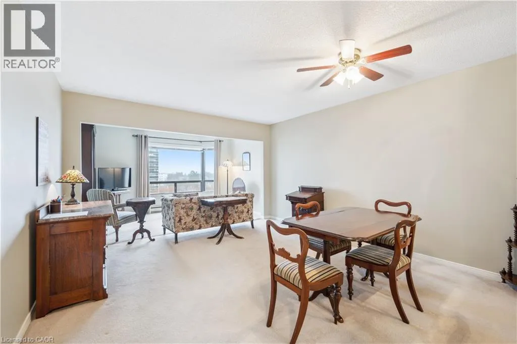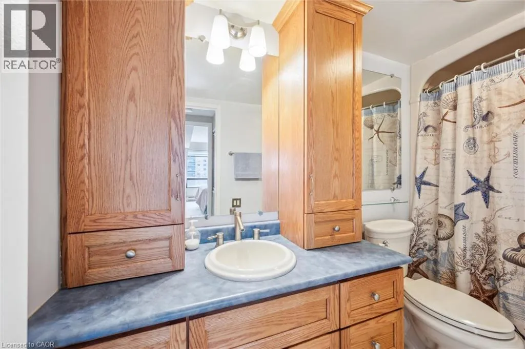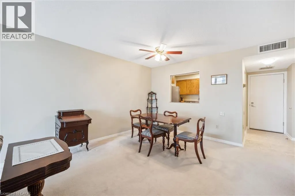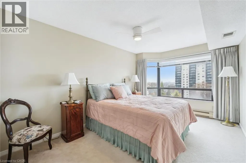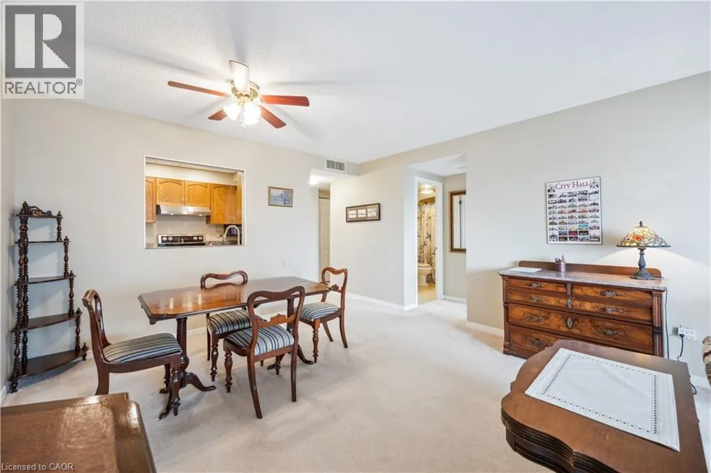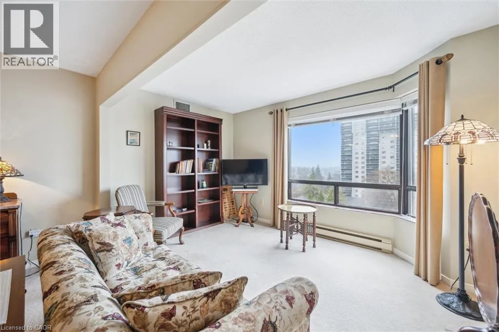 Queen Street/Ellen Street Bright and spacious 1- bedroom in a quiet well-maintained building. Open concept living and dining area, large bedroom, large walk-in closet, in-suite laundry room with full sized Whirlpool washer and dryer. Brightly lit remodeled kitchen with nearly new Whirlpool appliances: full size stove with convection oven, microwave, full size refrigerator, Maytag dishwasher and drinking water filtration system. Additional perks are owner water heater, water softener and one underground parking space. Located across the street from Center in The Square, public library, parks, shopping with quick access to transit, VIA Rail station and expressway. Pristine and clean as long time owner uses it only 6-8 weeks annually. Charming, move-in ready home in a prime location. (id:27476)
