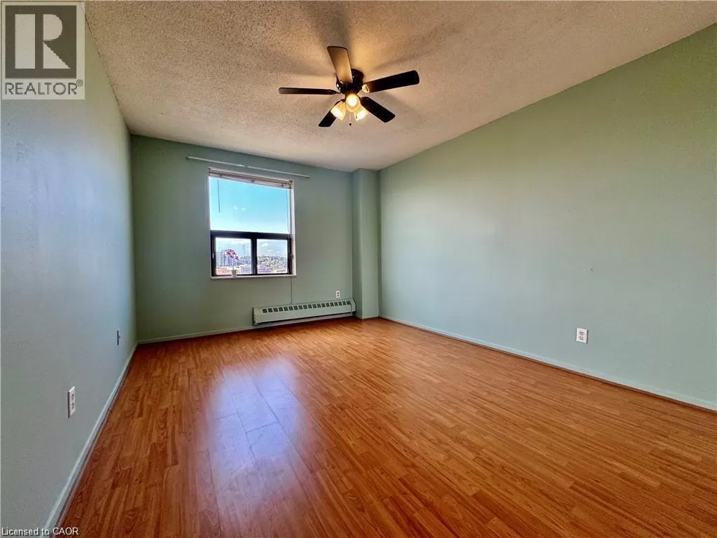 Block Line Rd to Courtland Ave UTILITIES INCLUDED! This bright, carpet-free 2-bedroom condo is move-in ready. Situated on the 8th floor of a recently renovated building, the unit enjoys abundant natural light thanks to its southwest exposure and features a spacious balcony, perfect for relaxing or entertaining. The main bathroom includes a custom safety tub. Both bedrooms offer generous floor-to-ceiling closets, while the Primary Bedroom also includes a newly added wardrobe with custom shelving and drawers for extra storage. Building amenities include an outdoor swimming pool, exercise room, party room, and sauna. The location is unbeatable, just steps from the LRT and close to Fairview Mall, grocery stores, shopping, schools, parks, banks, and with easy access to Highway 8 and the 401. Monthly rent includes heat, hydro, water, and one parking spot. (id:27476)