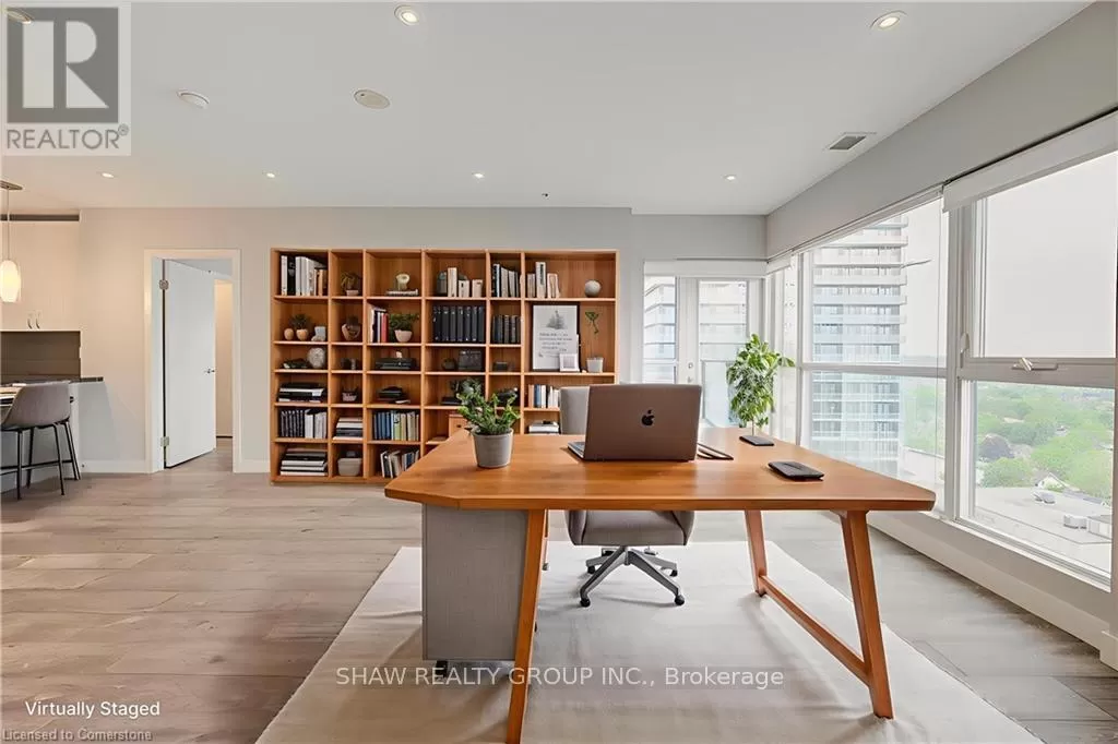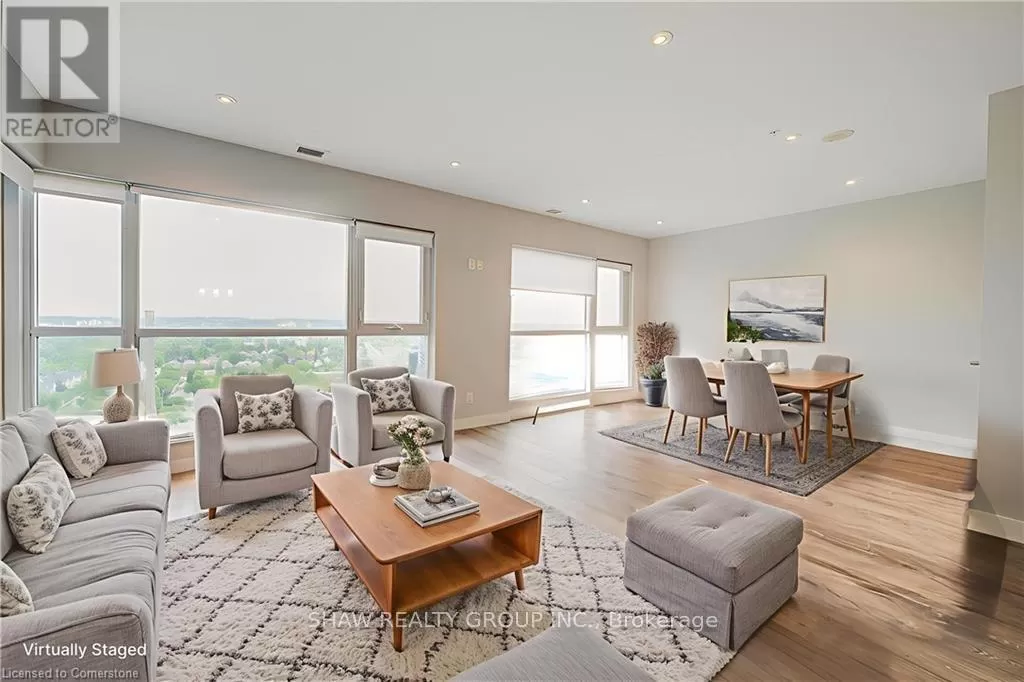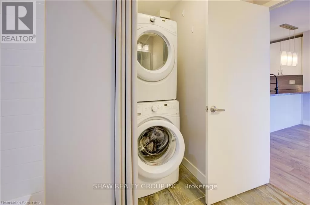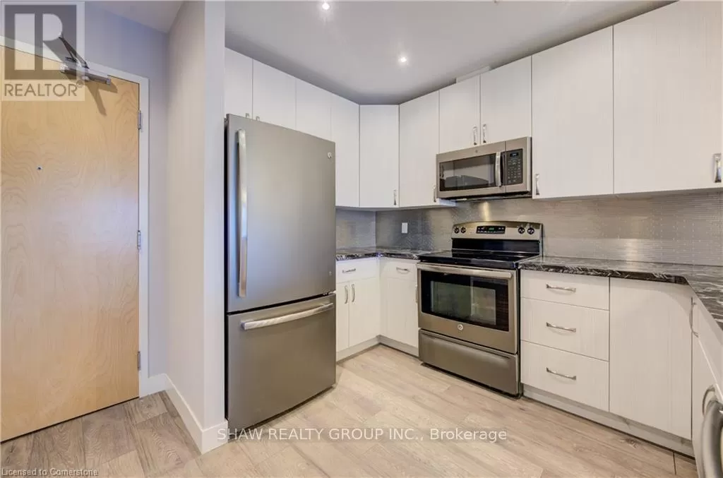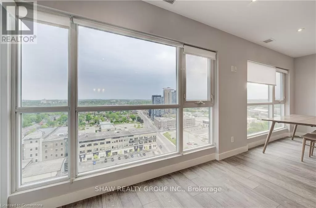 Cross Streets: King. ** Directions: King St W to Victoria St S. Welcome to Suite 1513 at One Victoria A Truly One-of-a-Kind Residence This custom-designed, 1156 sq ft corner suite is the only unit of its kind in the building, perched on the 15th floor with breathtaking panoramic views of the Tannery District and Victoria Park. Sunlight pours through expansive floor-to-ceiling south-facing windows, enhancing the oversized open-concept living and dining area. Step outside onto your private, finished balcony and soak in the energy of downtown Kitchener. The primary suite offers exceptional comfort with a walk-in closet with upgraded built-ins, blackout blinds, individual climate control, and a spa-inspired en-suite featuring a stone-tiled shower with glass doors and granite countertops. The versatile second bedroom is perfect for guests or use as a home office or den. With over $30,000 in premium recent upgrades including; floor to ceiling storage upgrades, this suite features engineered hardwood throughout, upgraded granite surfaces, and an enhanced electrical package offering 30 pot lights, designer pendants, and multiple multimedia hookups. The sleek kitchen showcases slate grey high-end appliances, a stainless steel backsplash, and soft-close cabinetry in both the kitchen and bathrooms. A full-sized high-efficiency washer and dryer are included, along with a large storage locker and one parking space. Residents of One Victoria enjoy access to first-class amenities: a private fitness centre, media theatre, party room, rooftop terrace with BBQs, and retail shops on the ground level. All located in the heart of Kitcheners Innovation District with restaurants, shopping, the LRT, and the Transit Hub right at your doorstep. (id:27476)